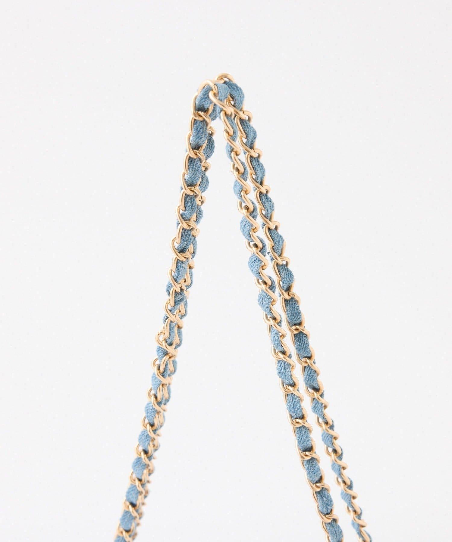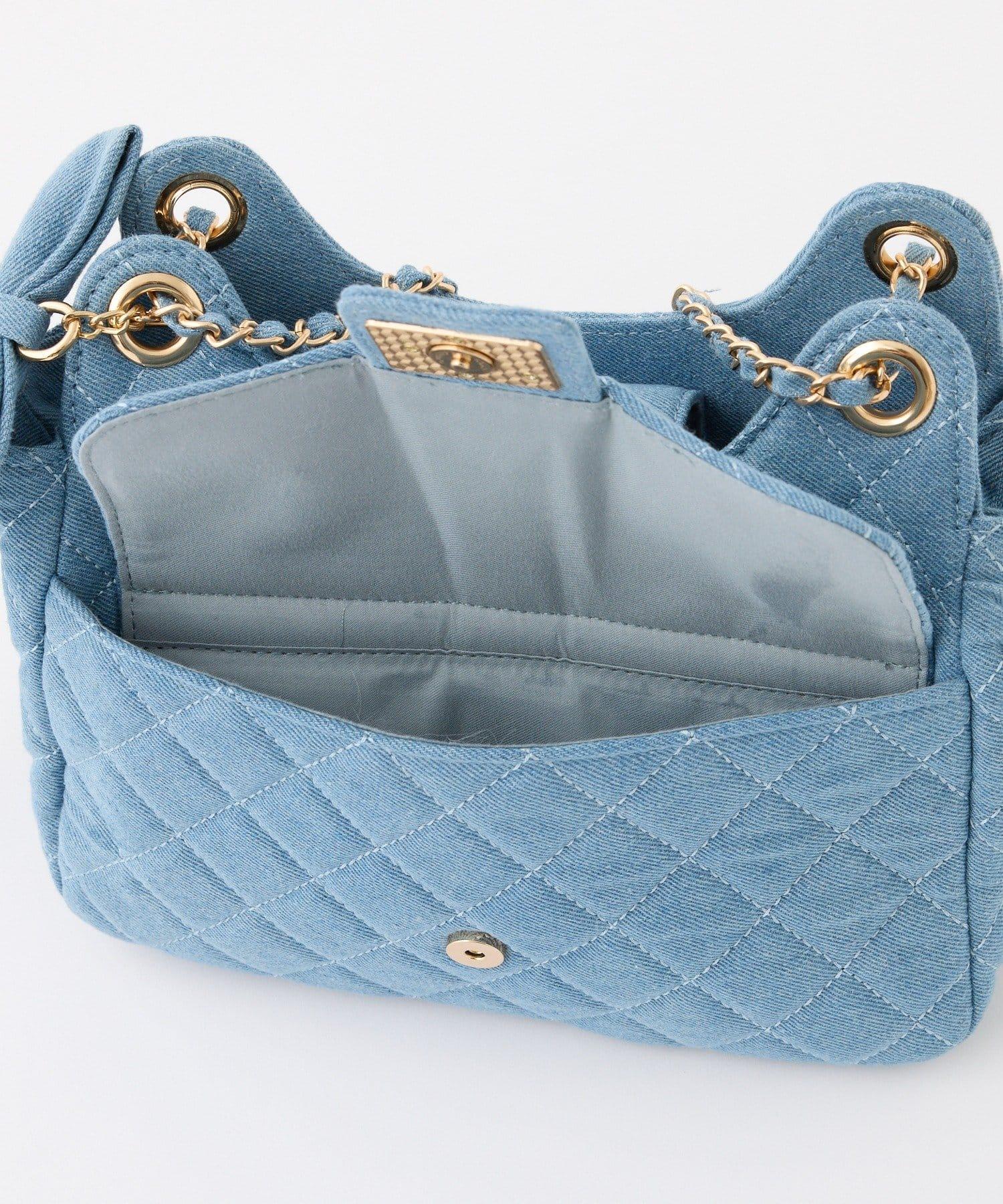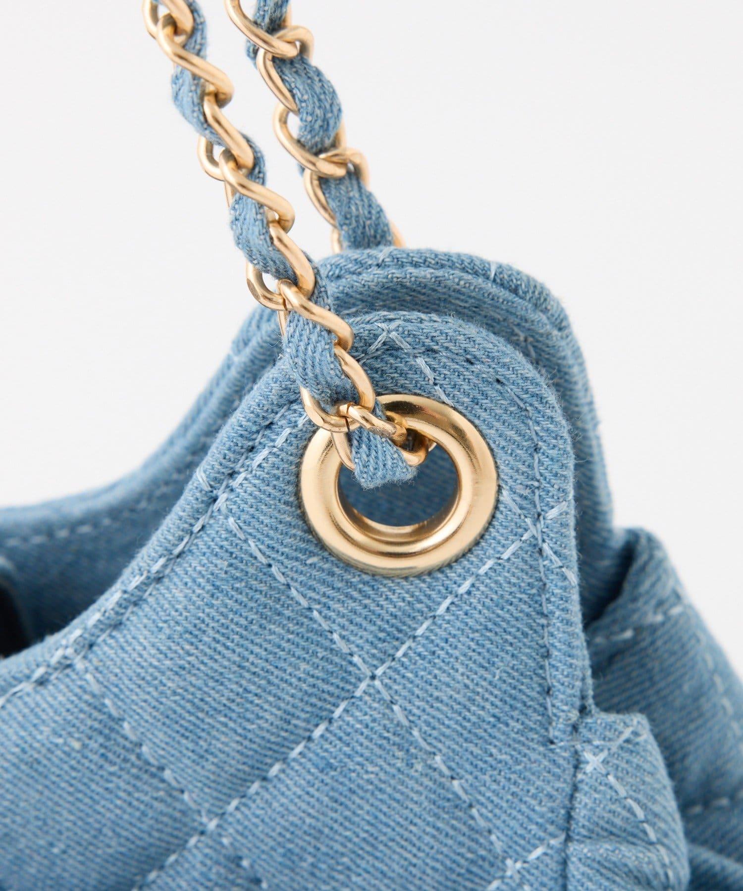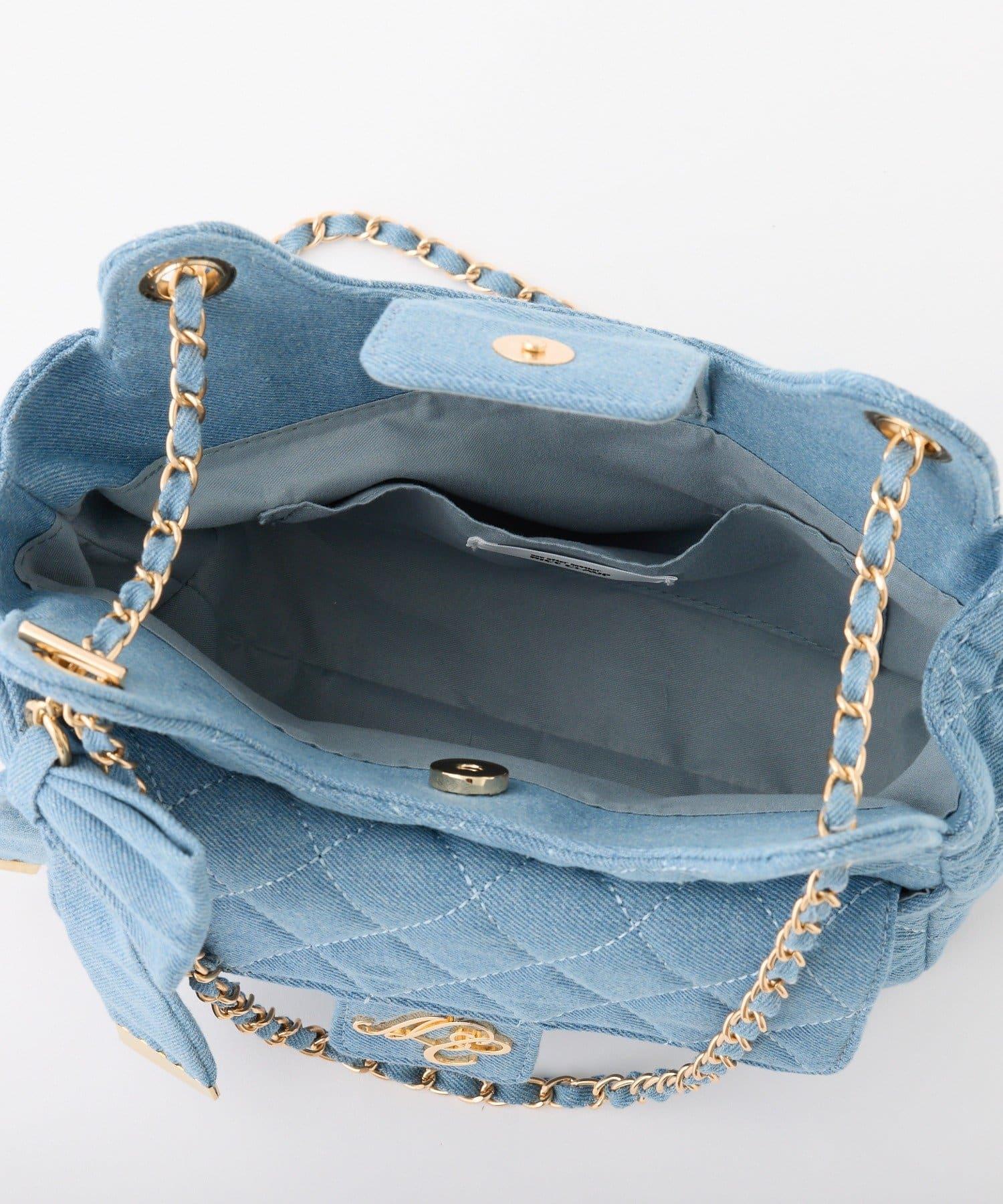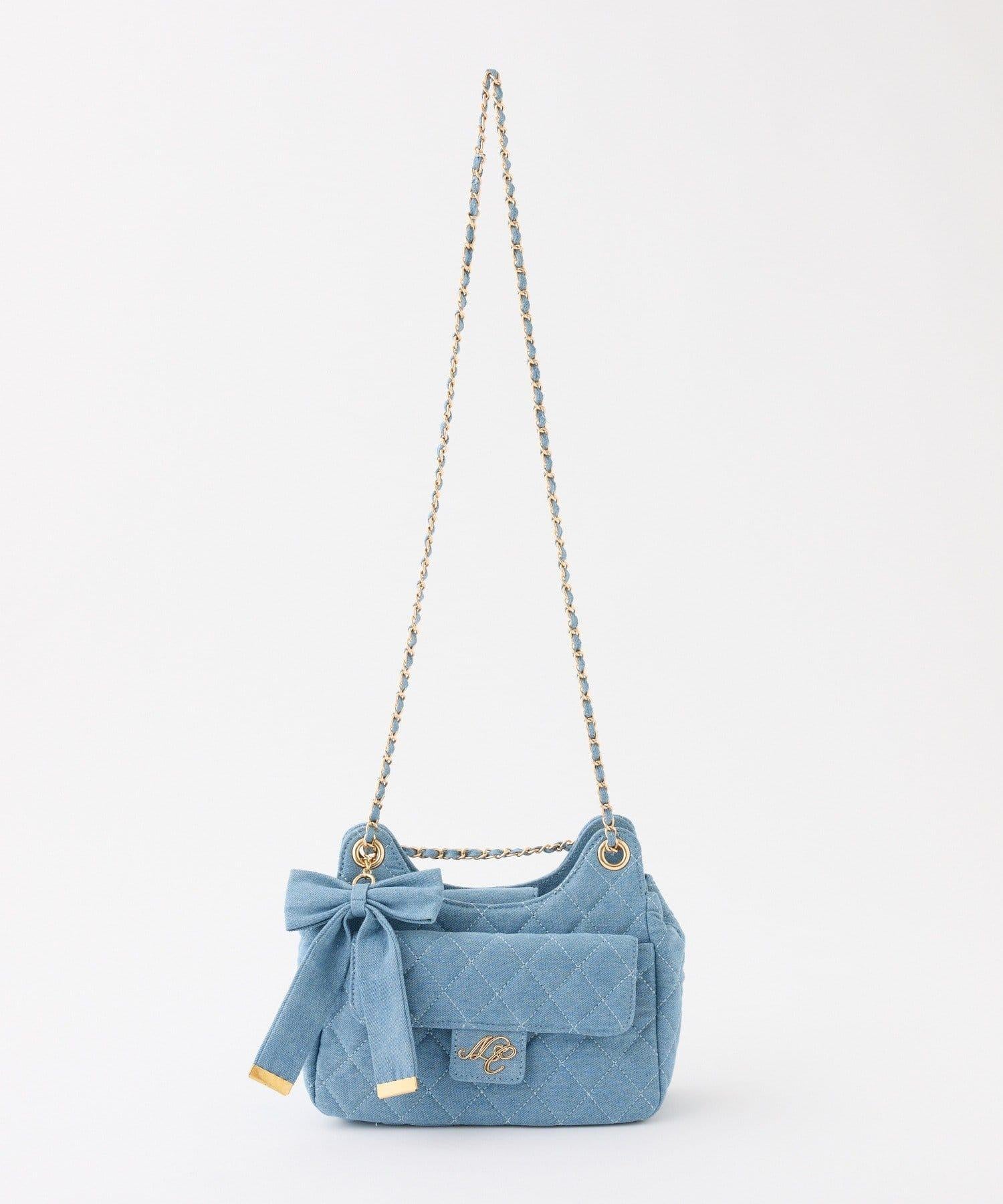 這款鏈條單肩迷你包採用醒目的絎縫設計和大號絲帶吊飾。