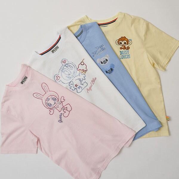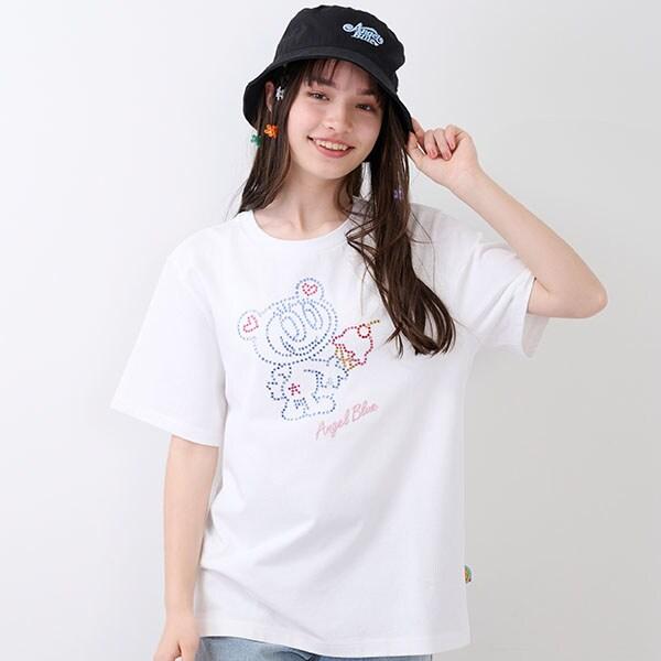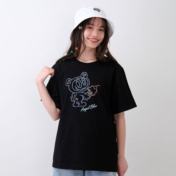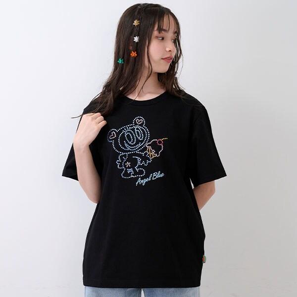 快樂流行短袖 T 恤,印有閃閃發光的水鑽中村君圖案。