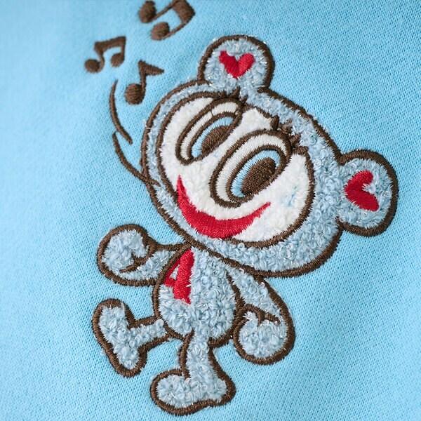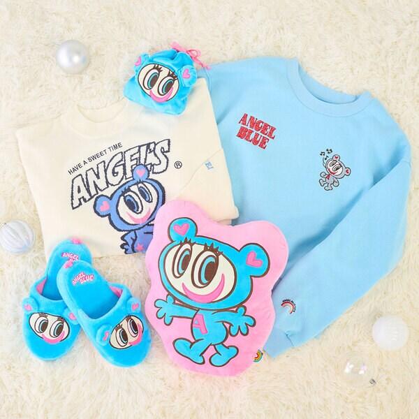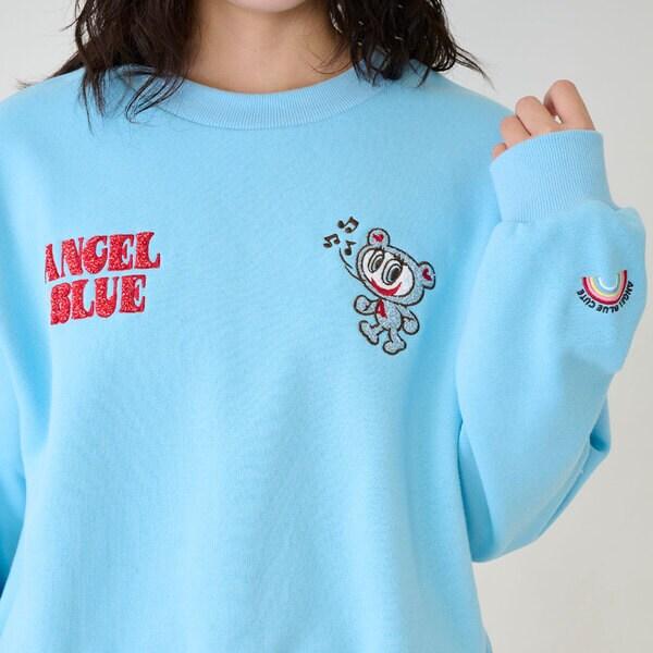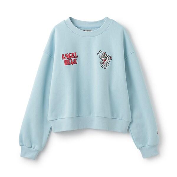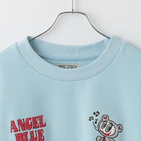 印有中村君和天使藍標誌的可愛揹帶運動衫。用閃閃發光的蹩腳絲線刺繡的紗嘎拉刺繡非常可愛。