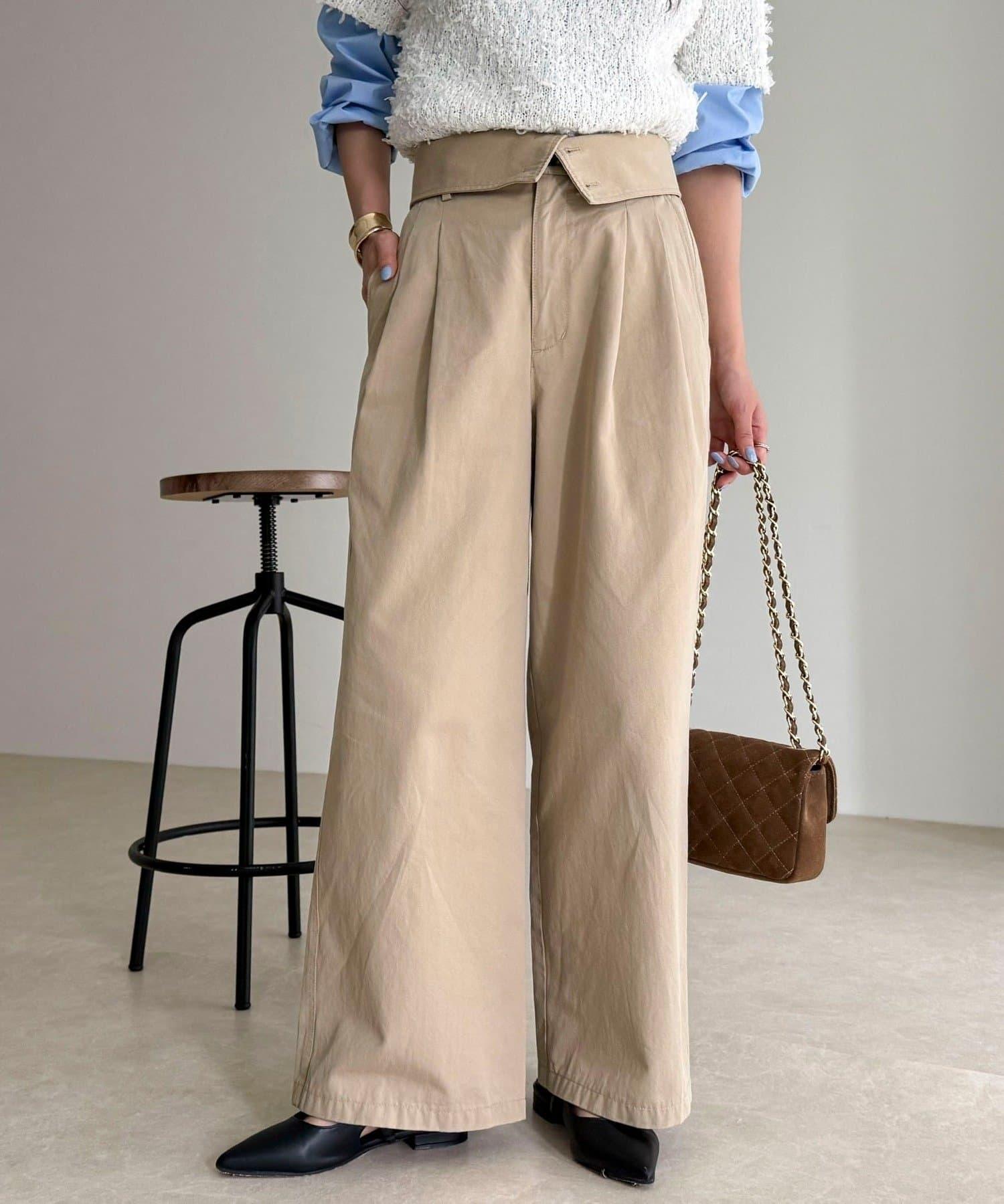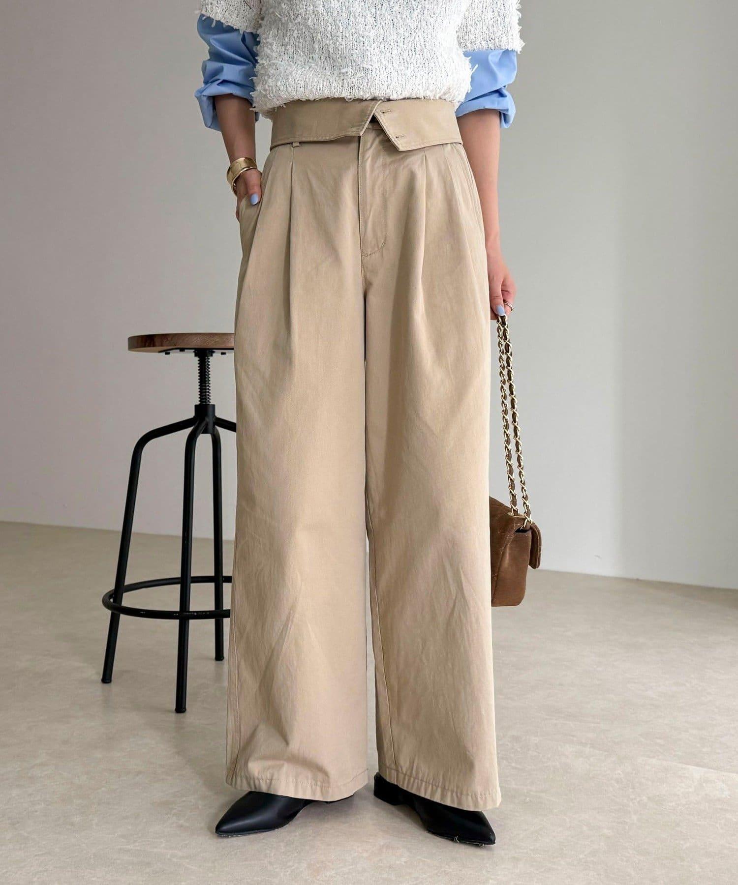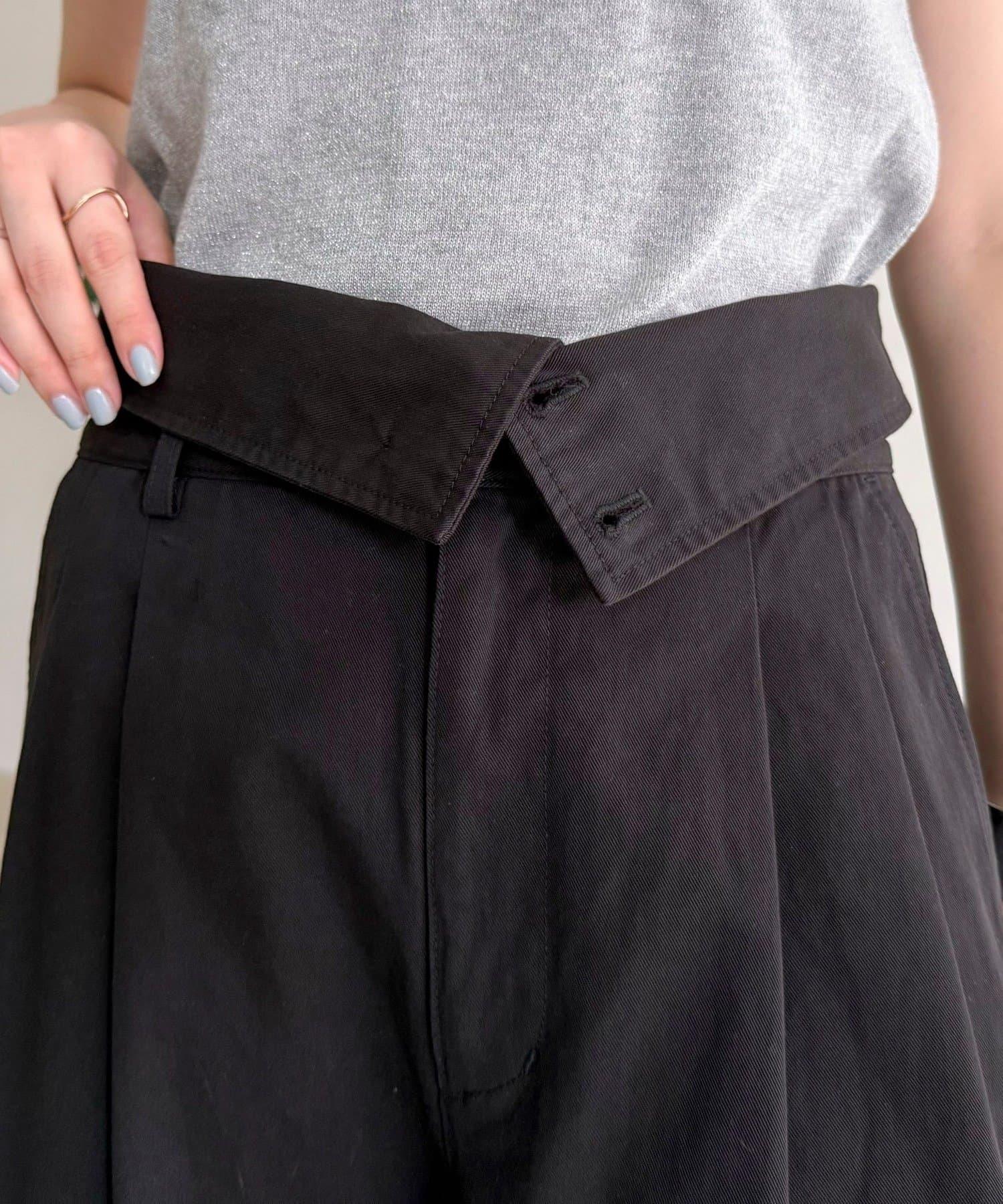 腰部可以向後摺疊,改變褲子的外觀和感覺!這款雙向收腰長褲既能讓你看起來更時尚,又能提升你的氣質。