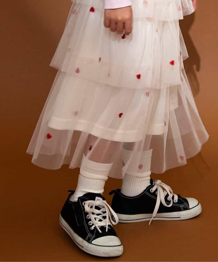 BREEZE 的 "心形刺繡薄紗裙 "因其既可外出又可日常穿著的設計而備受歡迎!顏色、圖案和輪廓都非常可愛。