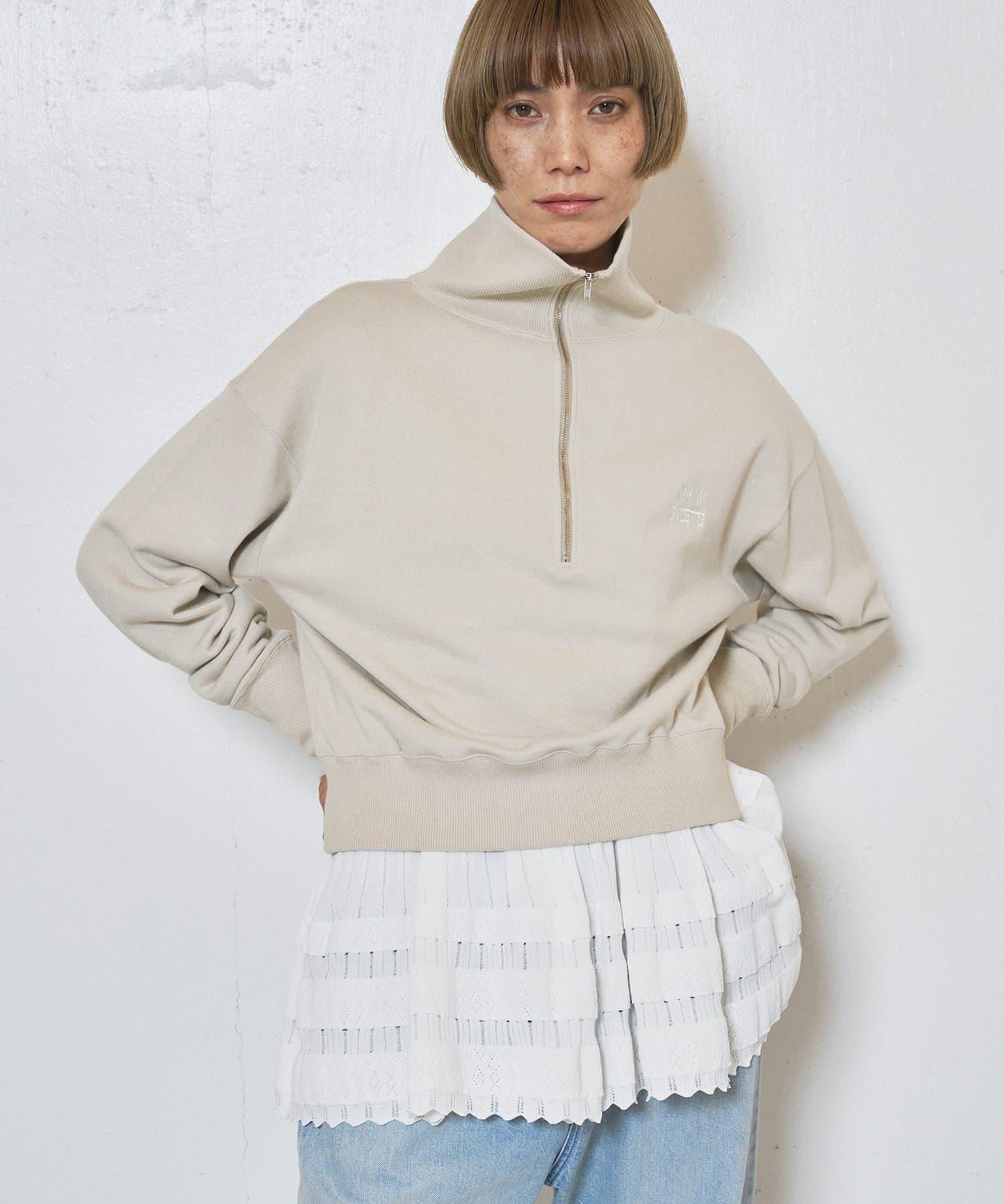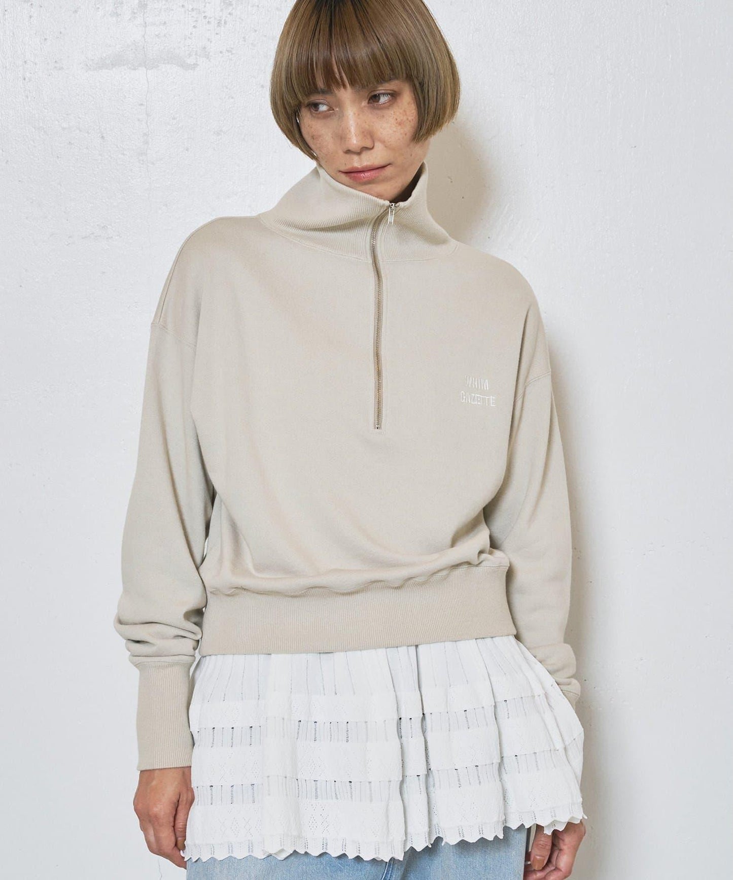 半拉鍊和短款設計使它看起來非常均衡,便於搭配各種下裝。