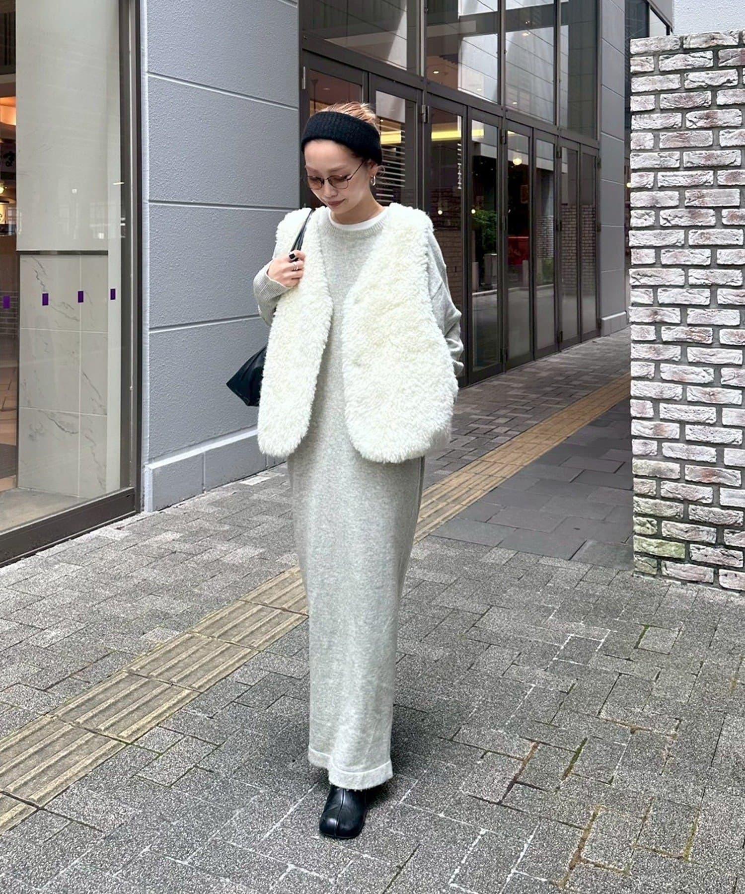 PON 項目] 羊毛混紡圓領針織連衣裙