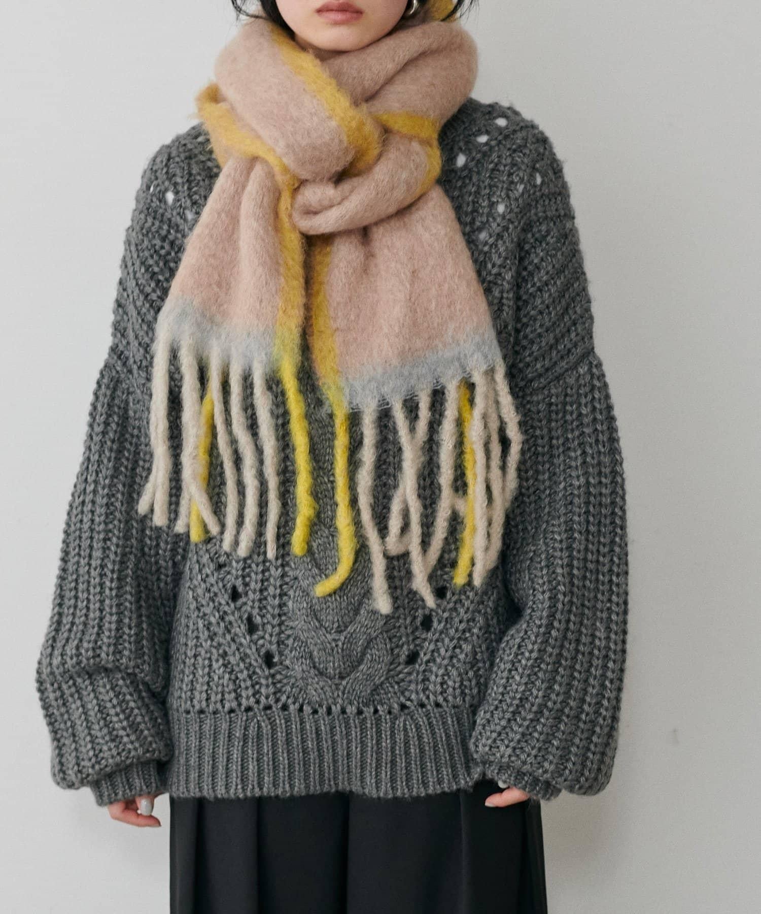 精緻的馬海毛圍巾,流蘇設計充滿活力。