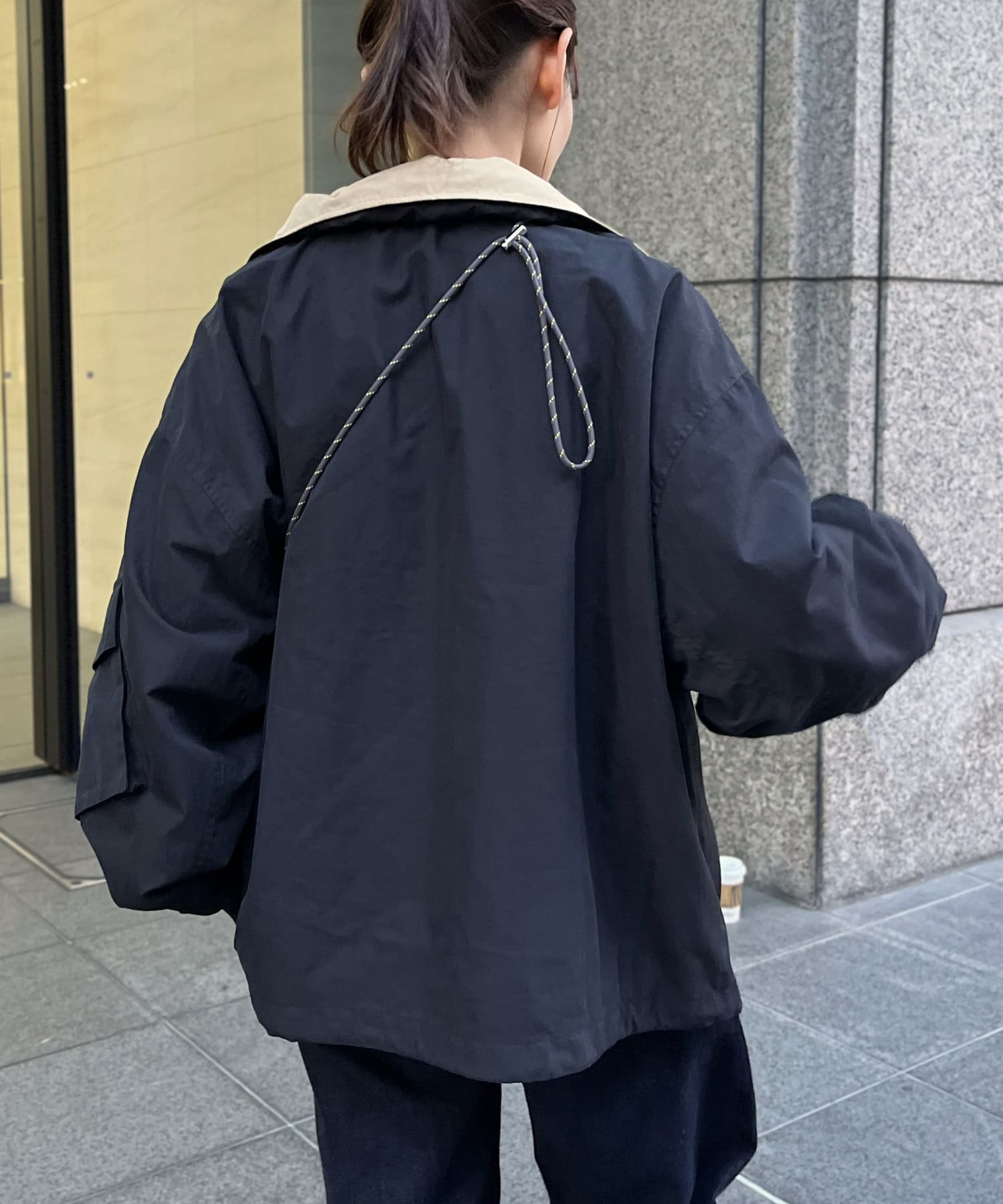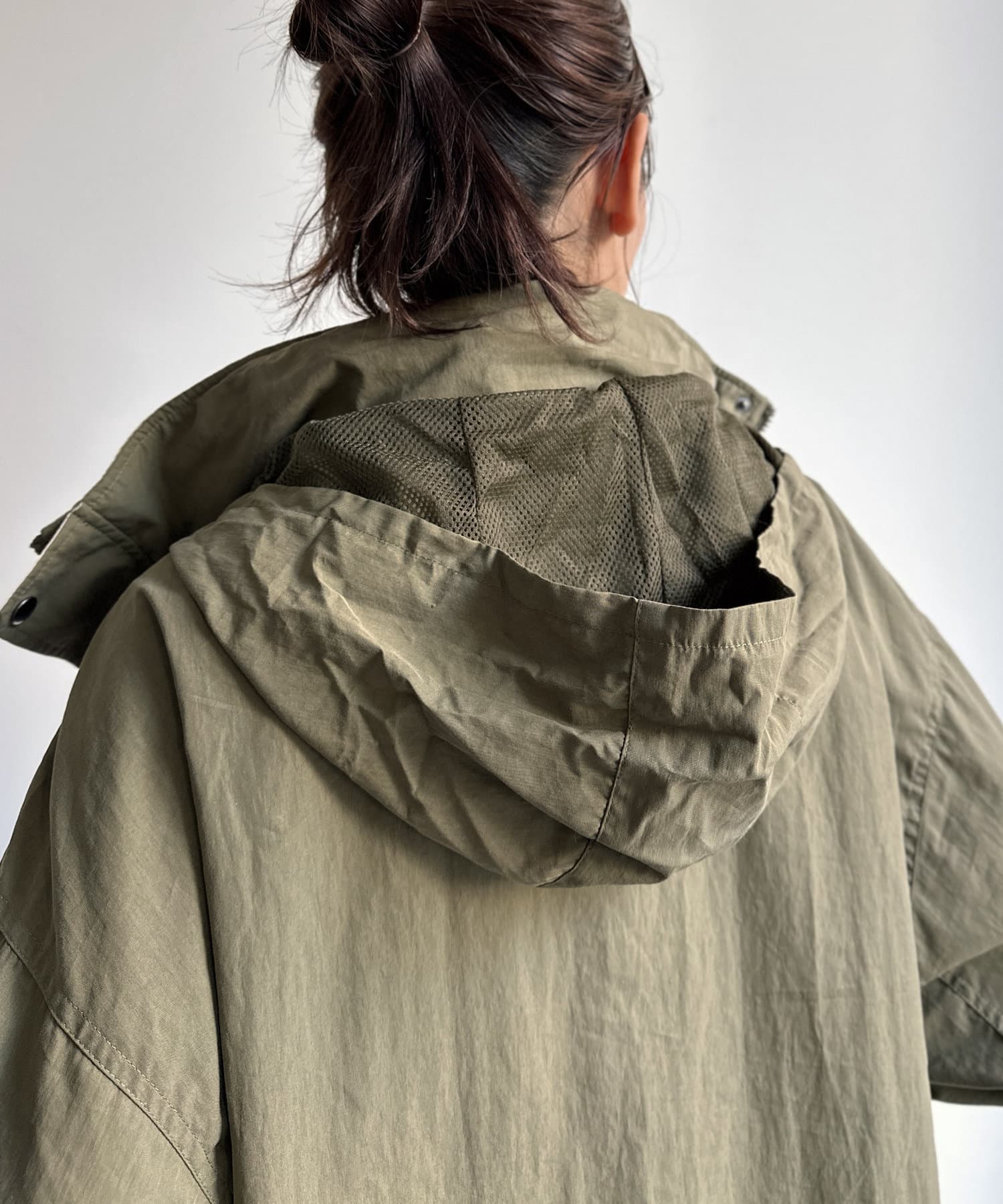 連帽可收納於衣領後部。