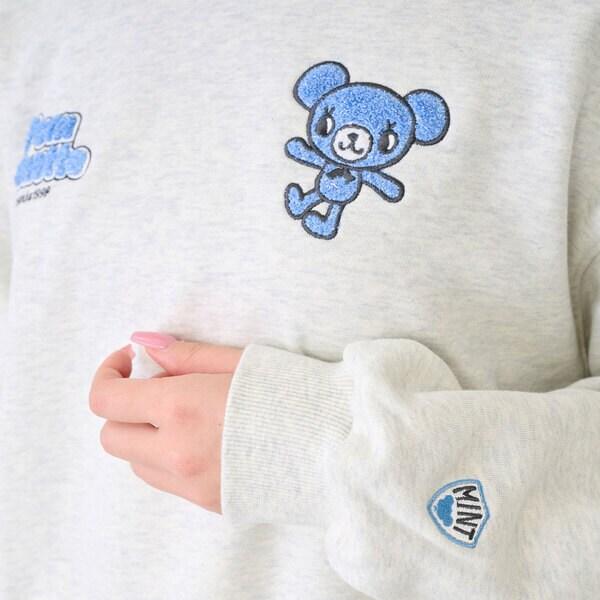 印有 Mint-kun 和 Pomponette 標誌的可愛內襯運動衫。用閃閃發光的蹩腳絲線刺繡的紗嘎拉刺繡非常卡哇伊。