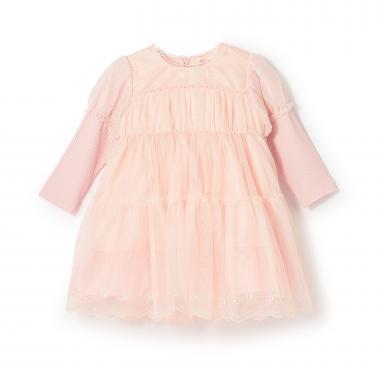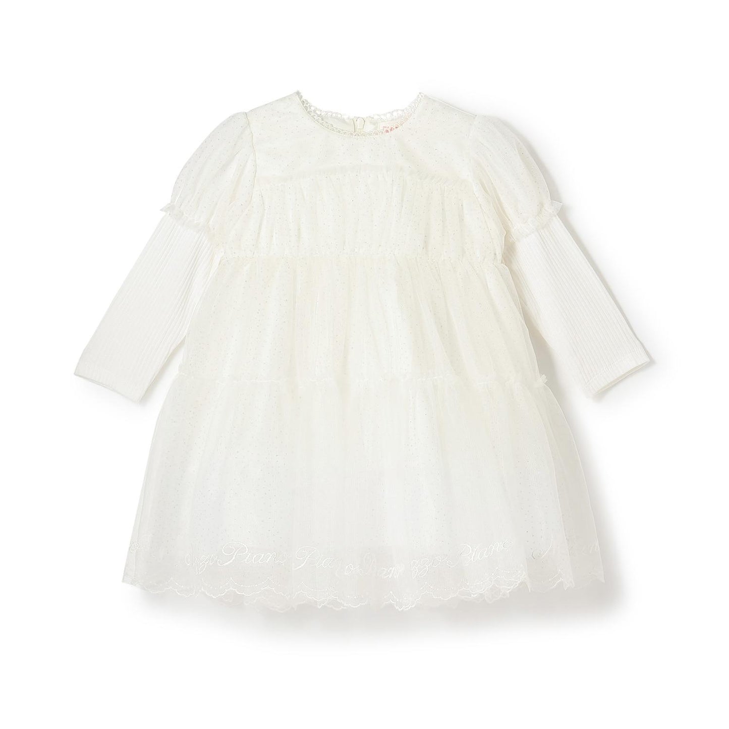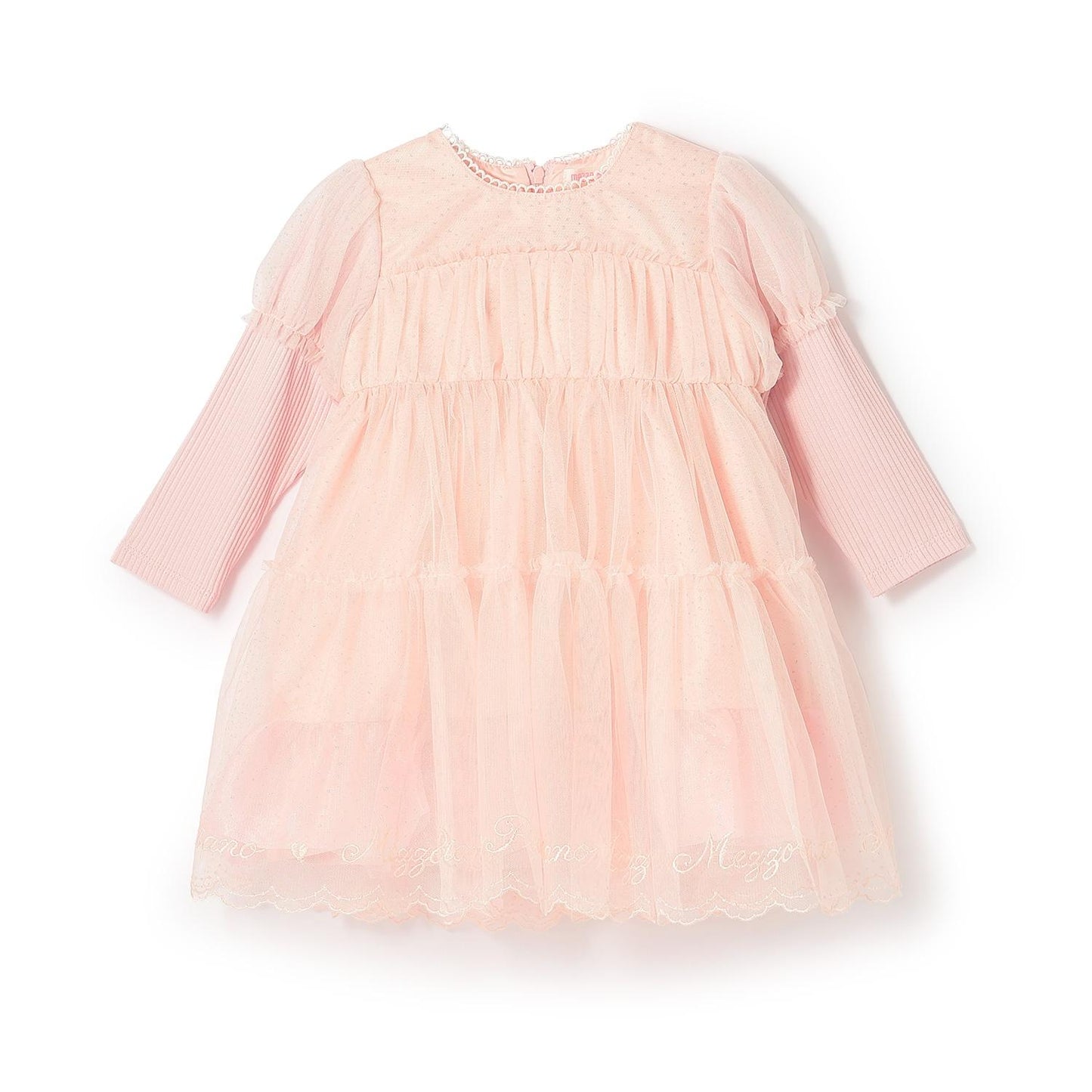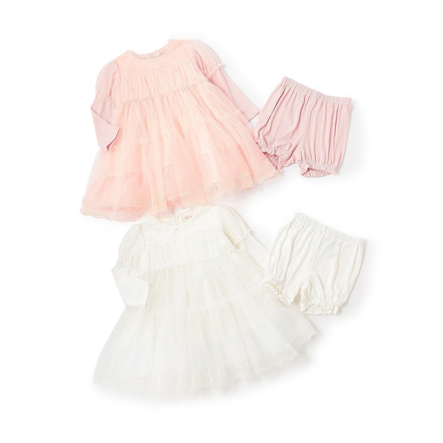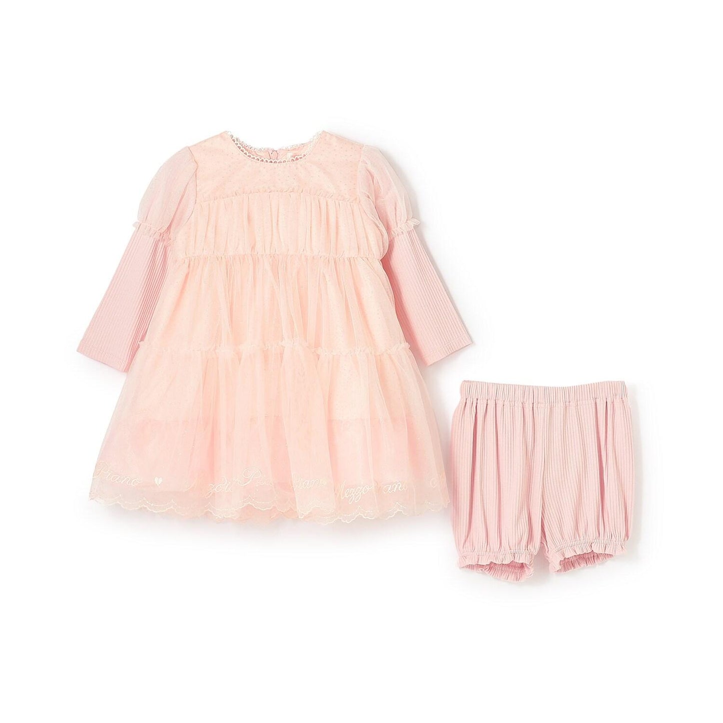 メゾピアノ標誌刺繡網紗連衣裙&燈籠褲套裝