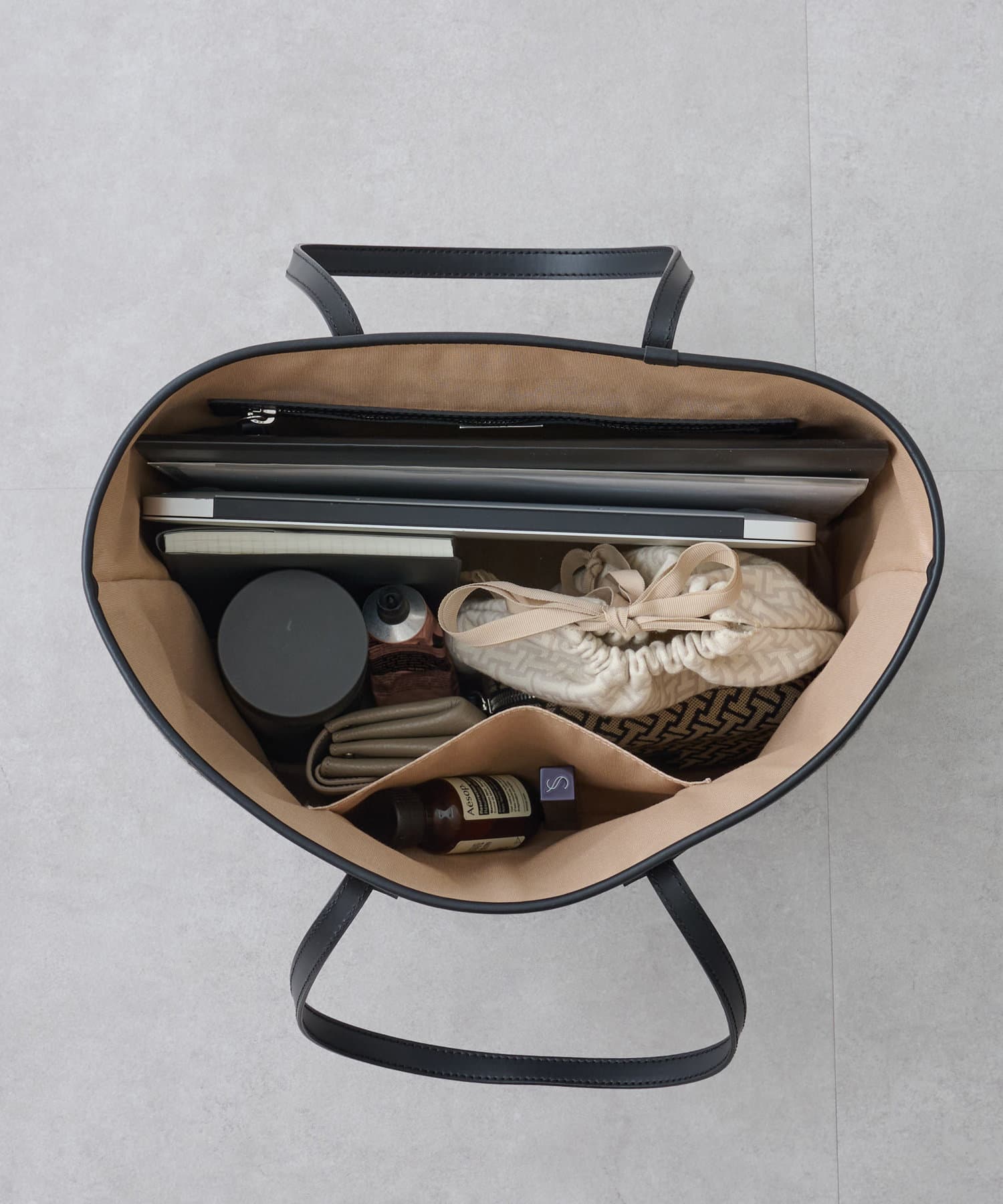 內側有一個開放的口袋,讓你可以順利地將你的智能手機、卡套和其他物品分到小的隔間裡!底部採用皮革裝飾,並有底釘,防止放置在地面上時出現汙漬。