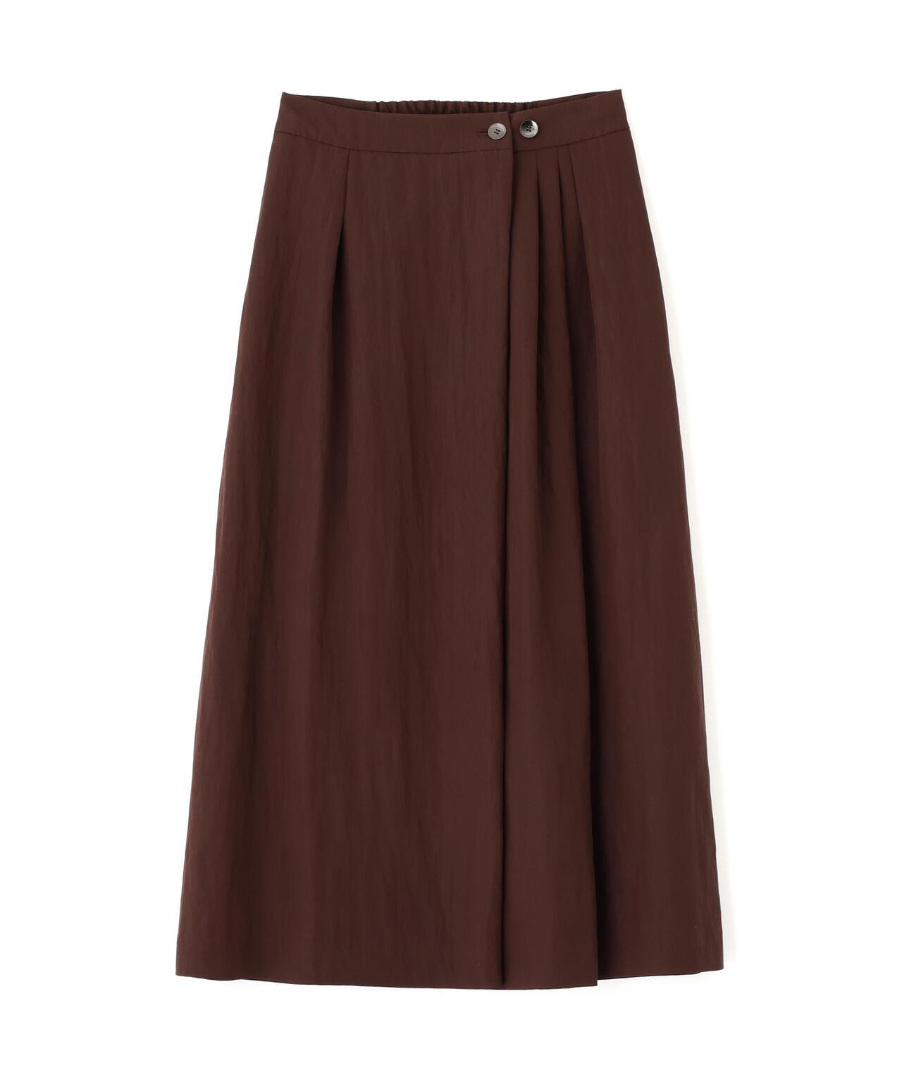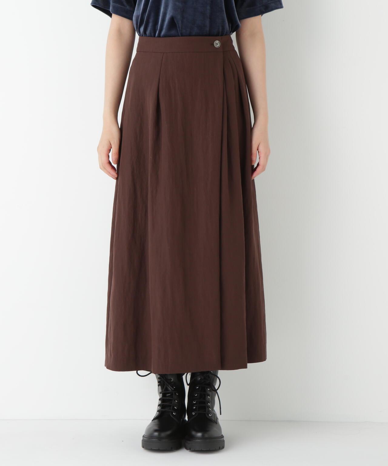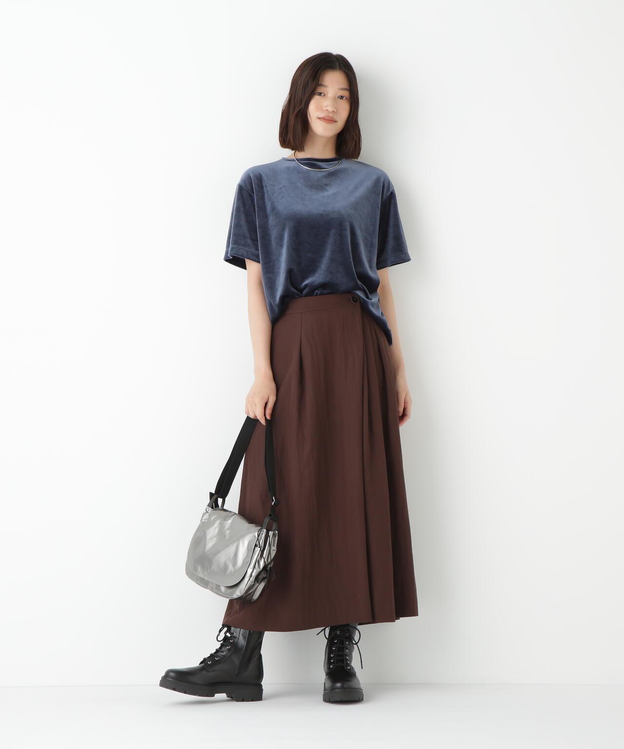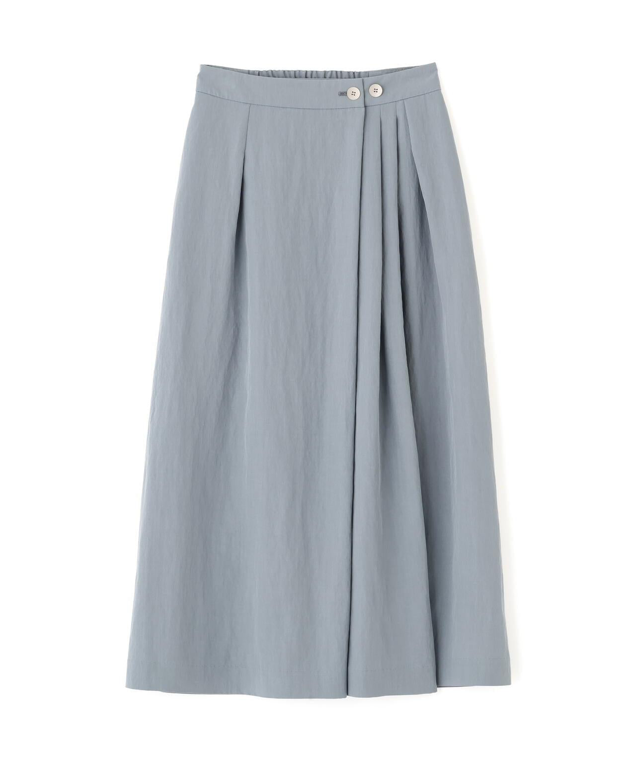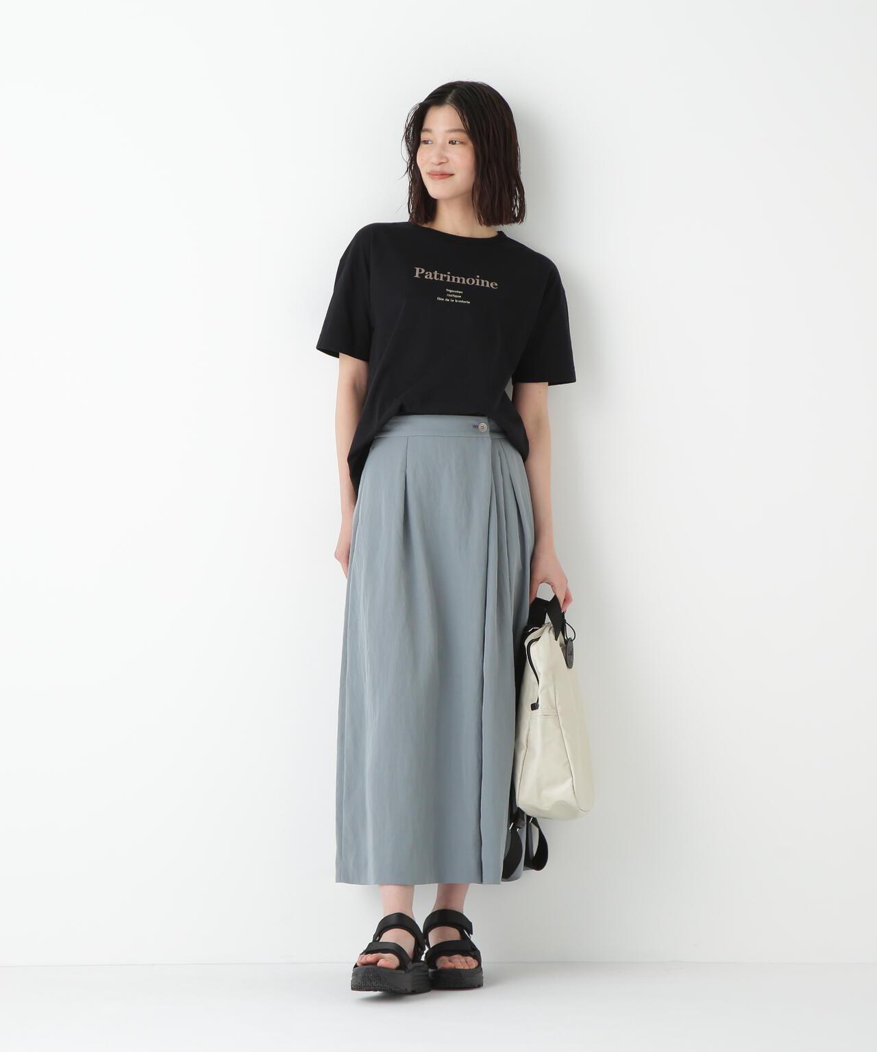 具有復古材質外觀的褶襉裙 [設計特點] 卷裙式褶襉裙,隨意褶襉。腰部尺寸可通過移動前扣臺進行調整。裙子後腰中央有鬆緊帶,穿著舒適。裙子採用府綢面料,經過生物處理,呈現出復古的纖維質感。推薦搭配:這條裙子搭配襯衫和針織衫,看起來非常漂亮。此外,還建議搭配同材質的罩衫。