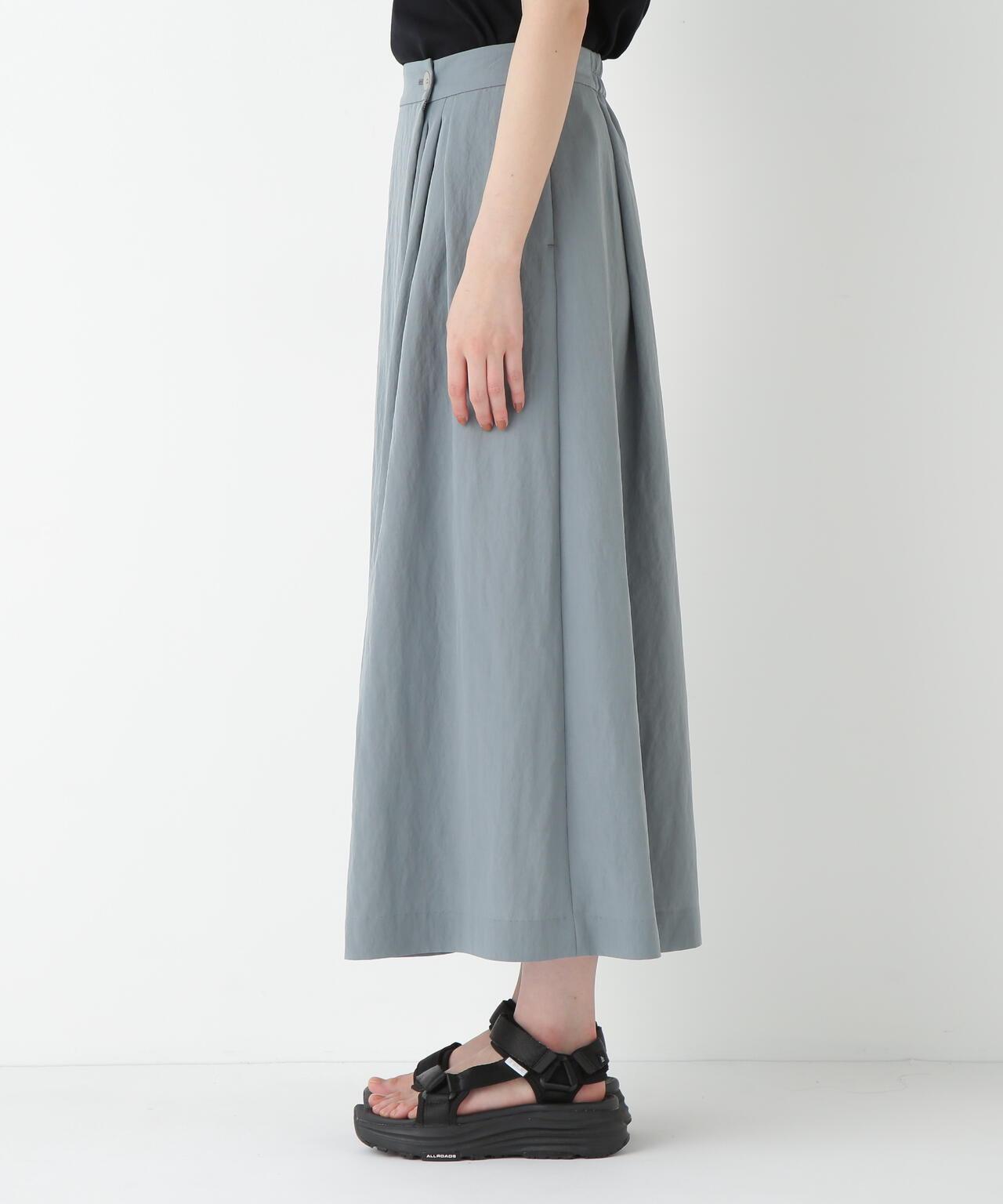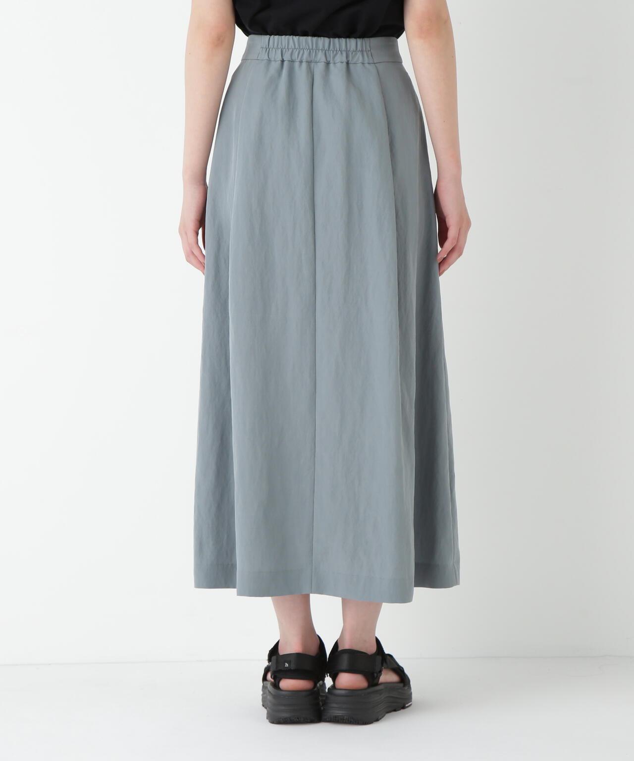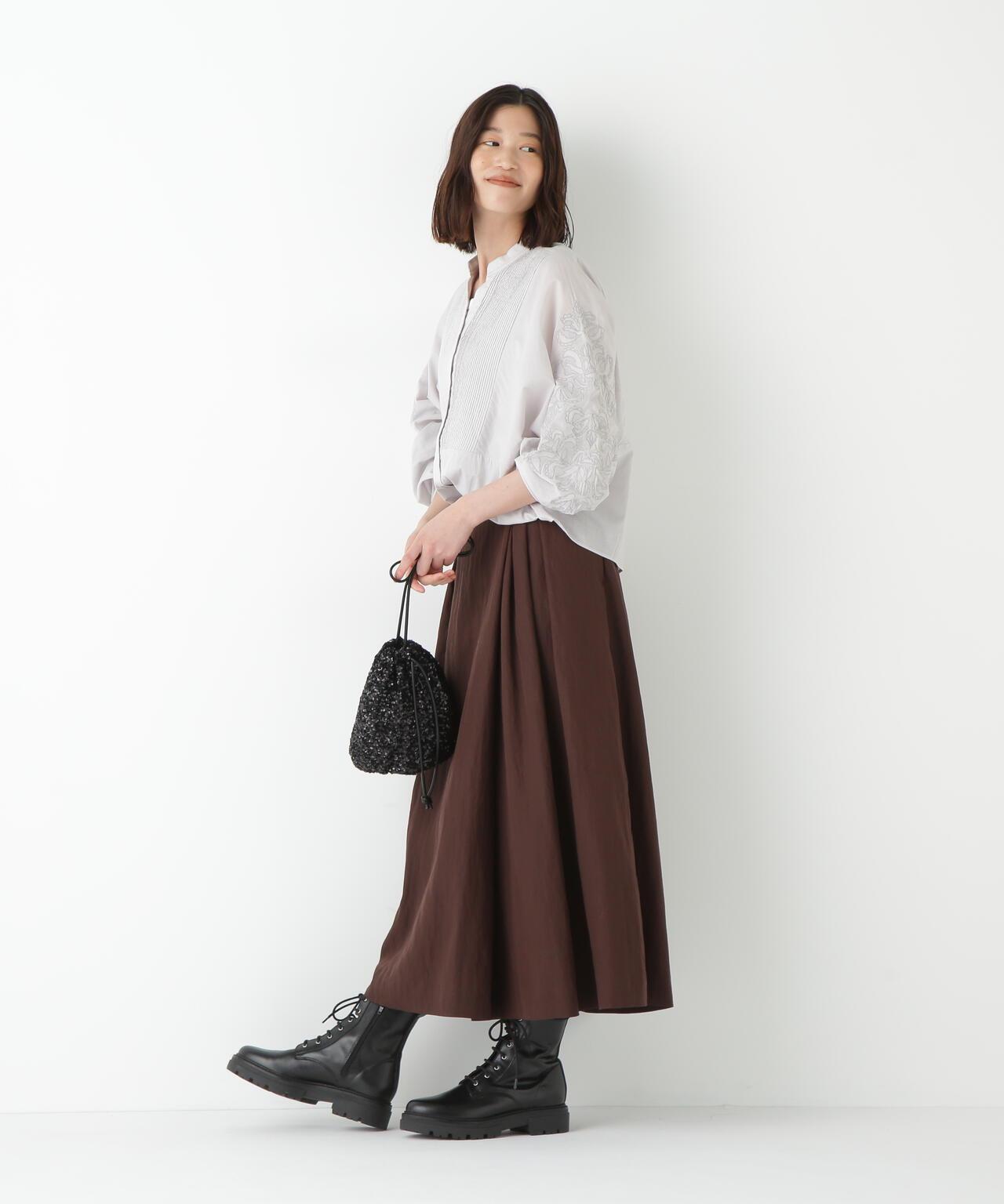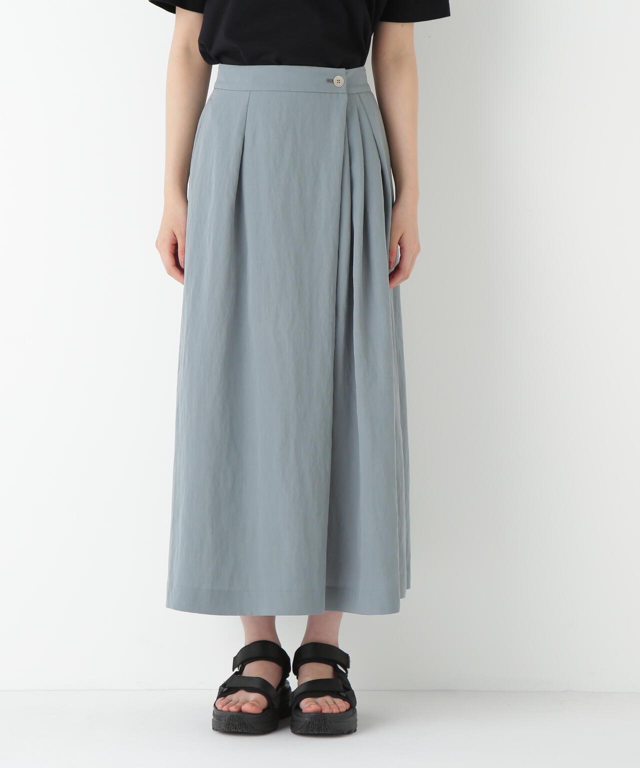 具有復古材質外觀的褶襉裙 [設計特點] 卷裙式褶襉裙,隨意褶襉。腰部尺寸可通過移動前扣臺進行調整。裙子後腰中央有鬆緊帶,穿著舒適。裙子採用府綢面料,經過生物處理,呈現出復古的纖維質感。推薦搭配:這條裙子搭配襯衫和針織衫,看起來非常漂亮。此外,還建議搭配同材質的罩衫。