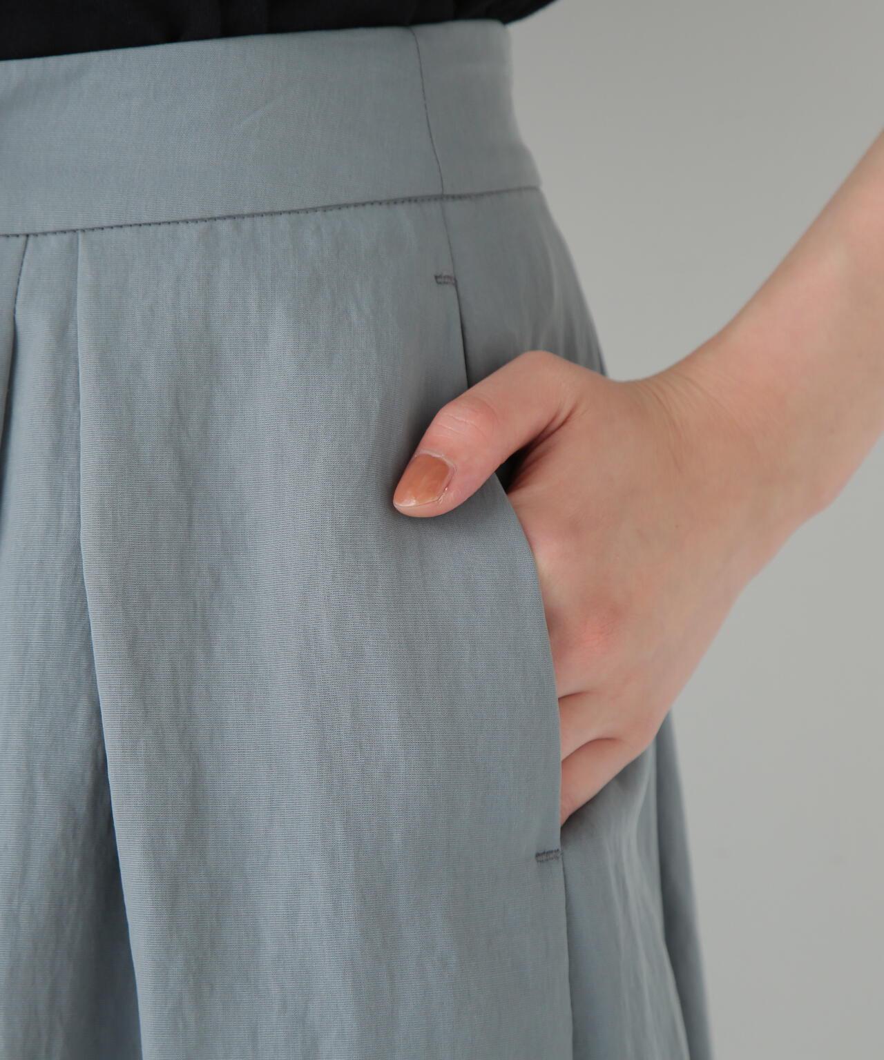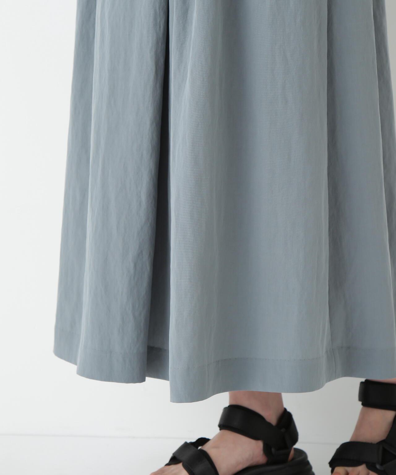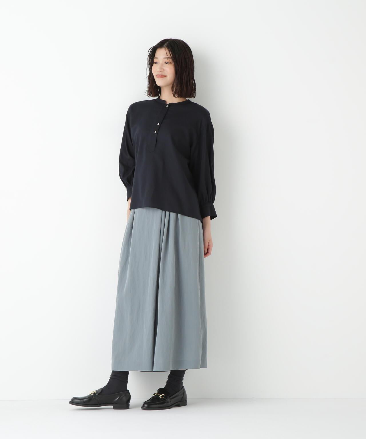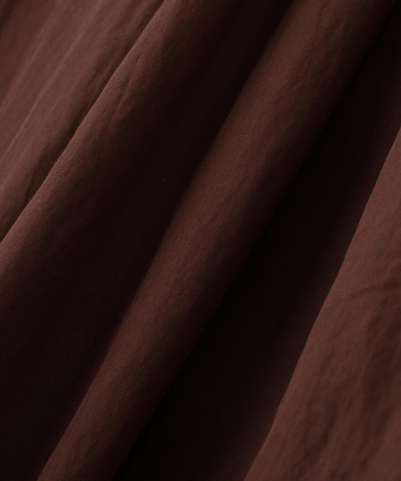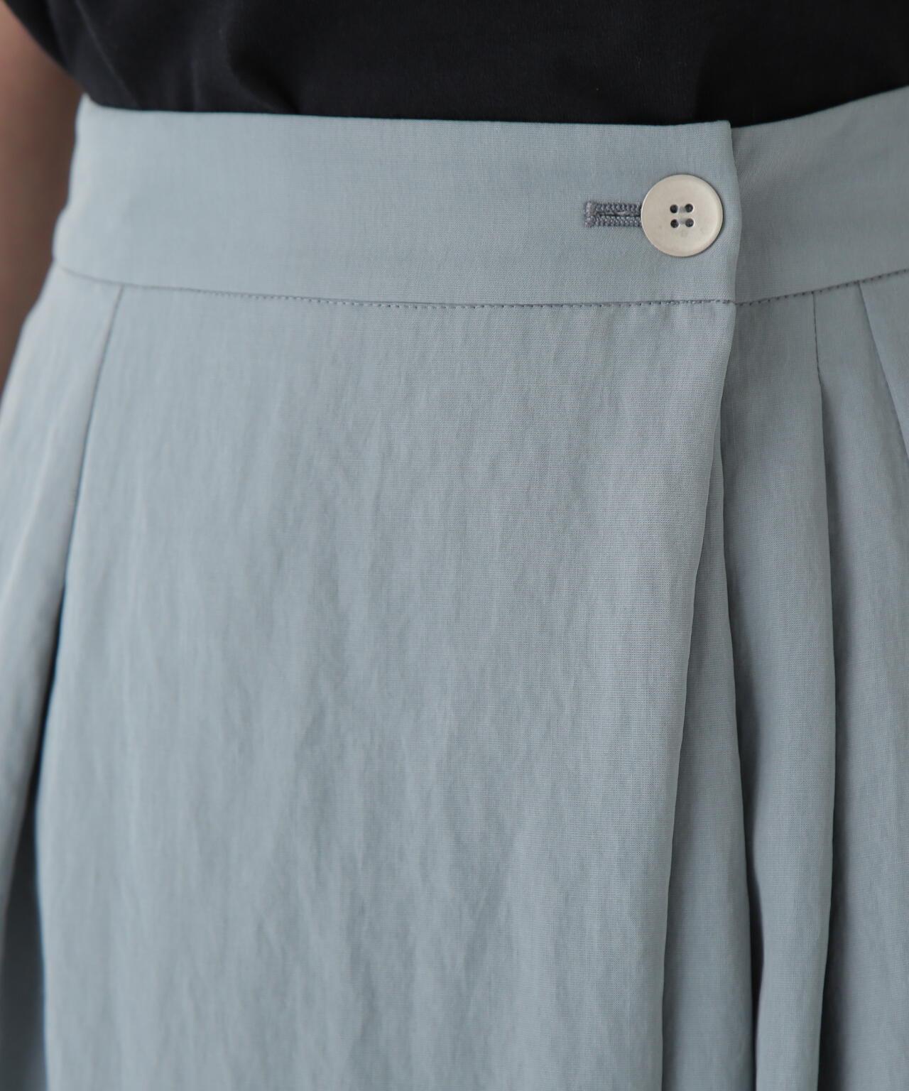 具有復古材質外觀的褶襉裙 [設計特點] 卷裙式褶襉裙,隨意褶襉。腰部尺寸可通過移動前扣臺進行調整。裙子後腰中央有鬆緊帶,穿著舒適。裙子採用府綢面料,經過生物處理,呈現出復古的纖維質感。推薦搭配:這條裙子搭配襯衫和針織衫,看起來非常漂亮。此外,還建議搭配同材質的罩衫。