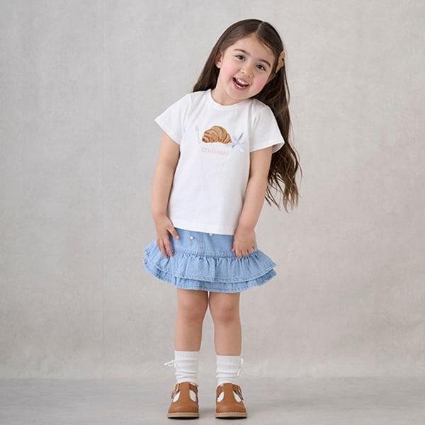 羊角麵包圖案是一種休閒設計,但精緻的滿繡工藝使其看起來非常優雅。