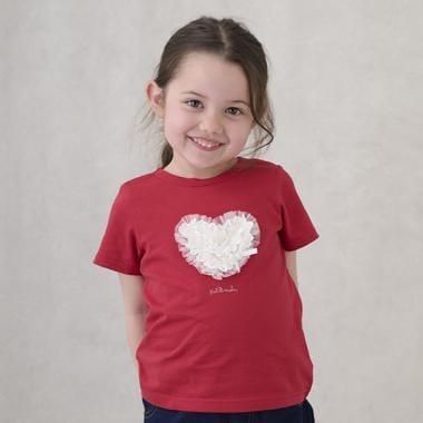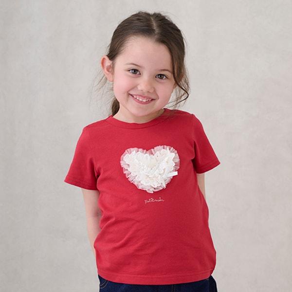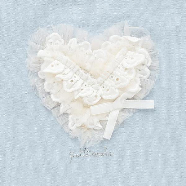 心形圖案因多層薄紗和荷葉邊的體積感而引人注目。