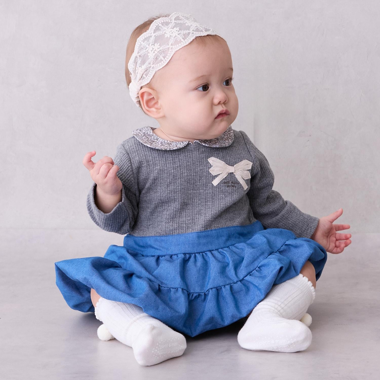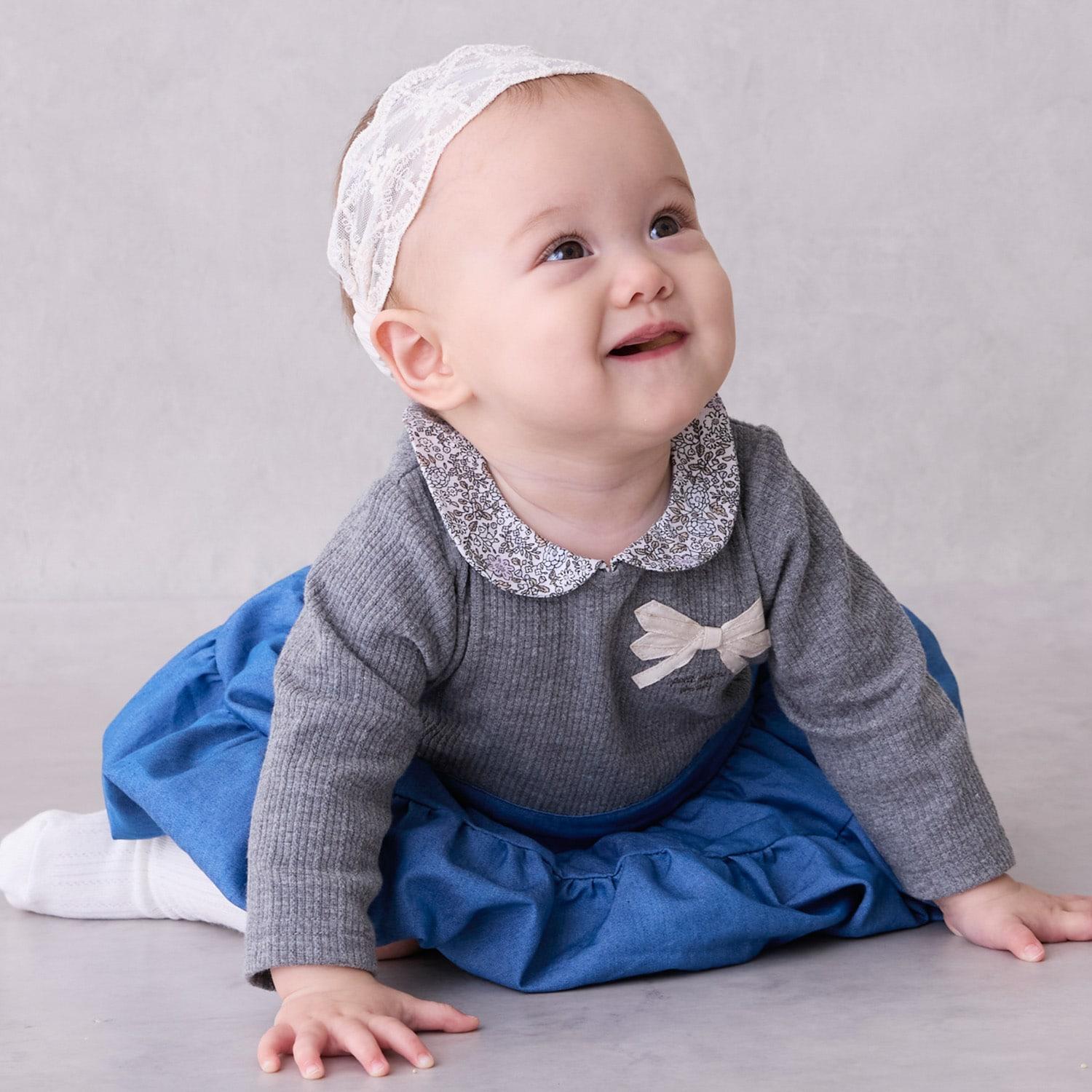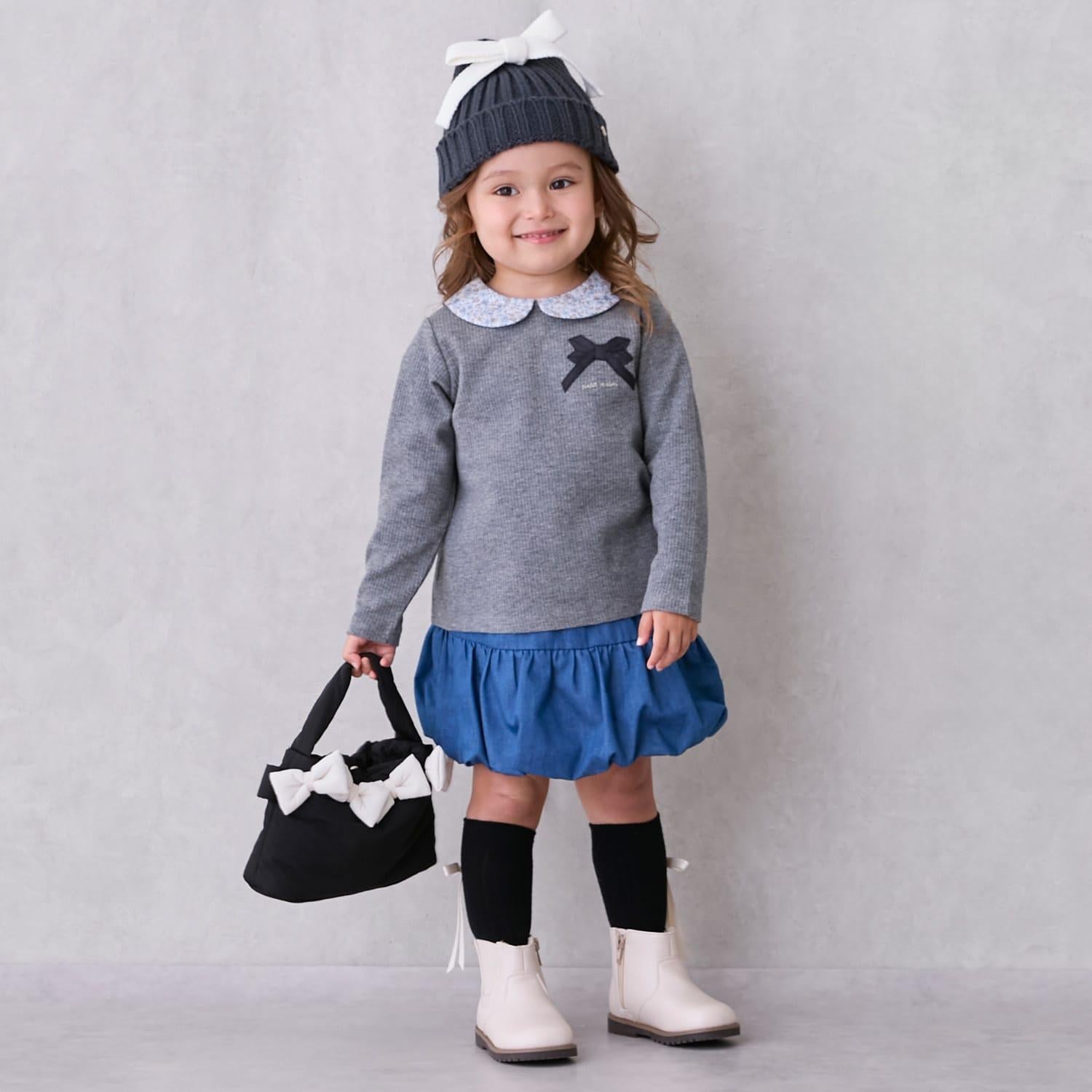 9653222: [鏈接] 帶領絲帶長袖 T 恤,可搭配兒童尺碼的童裝。