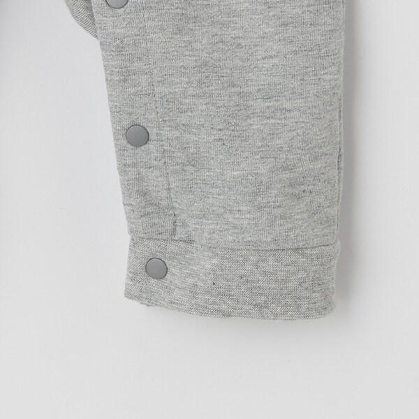 前襟和襠部有按扣,方便換尿布和穿衣。
