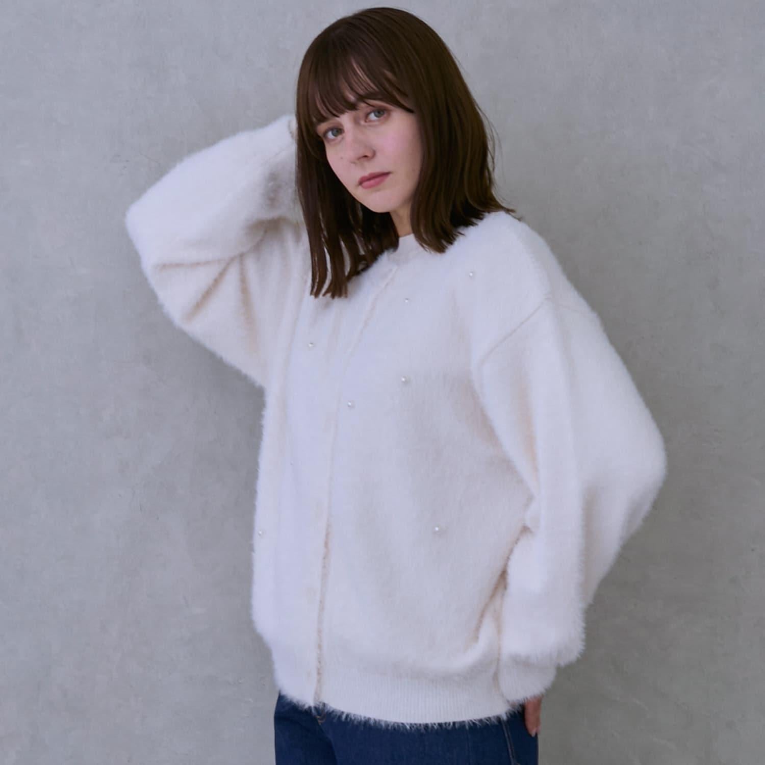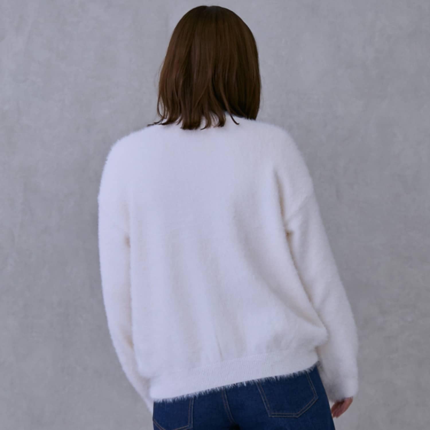 這款開衫採用毛茸茸的針織面料,配以柔軟的毛皮。