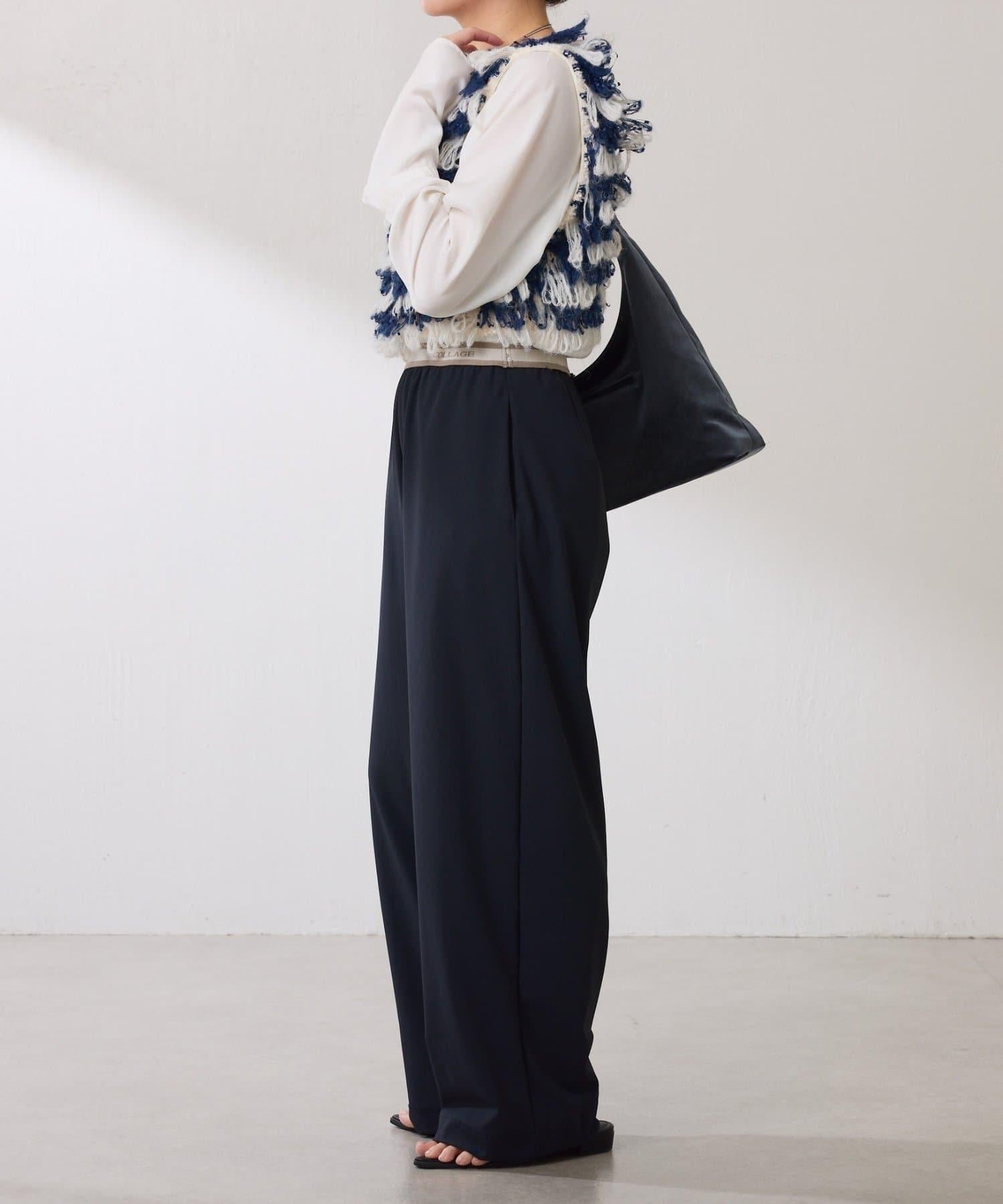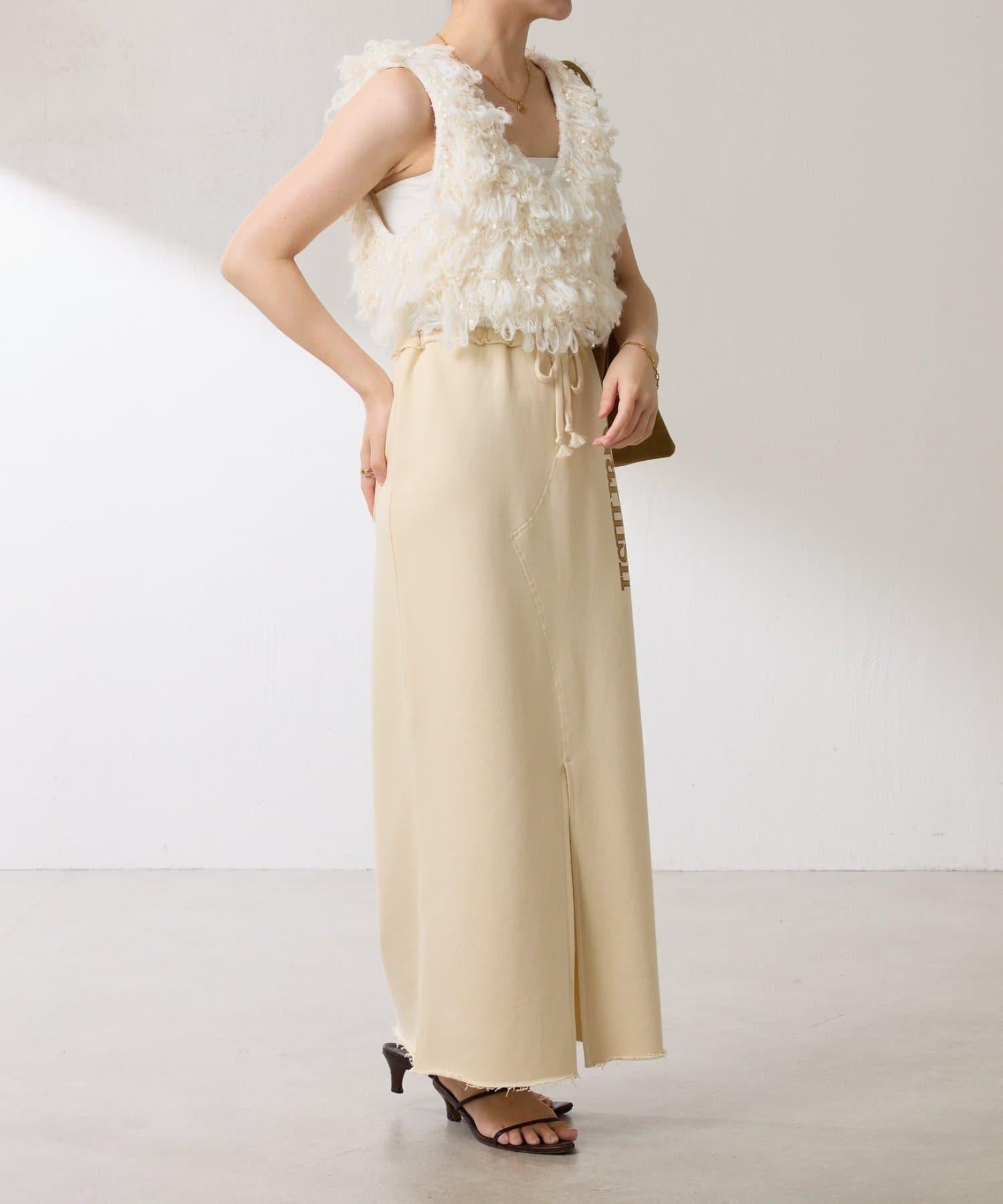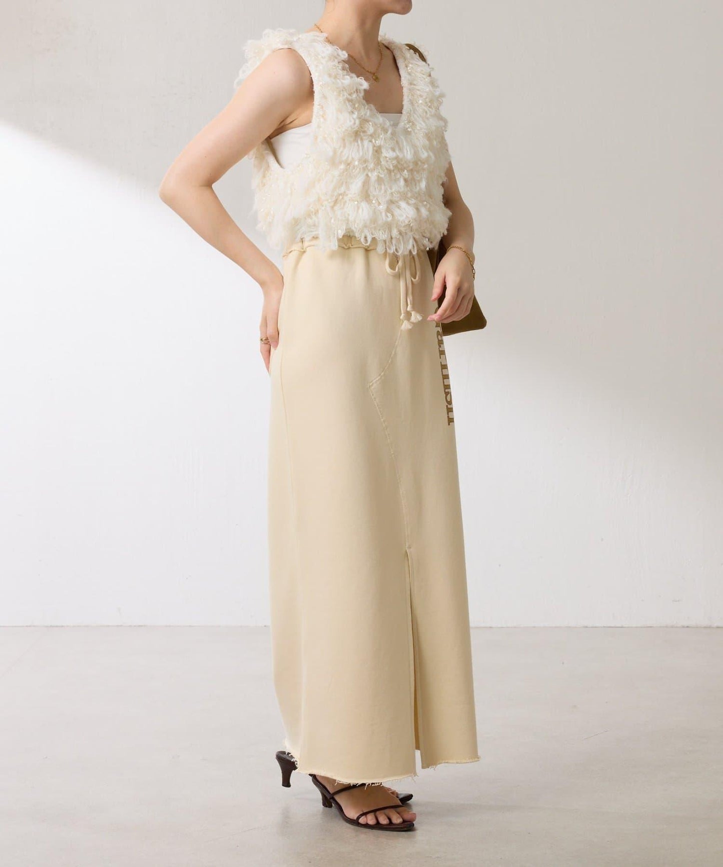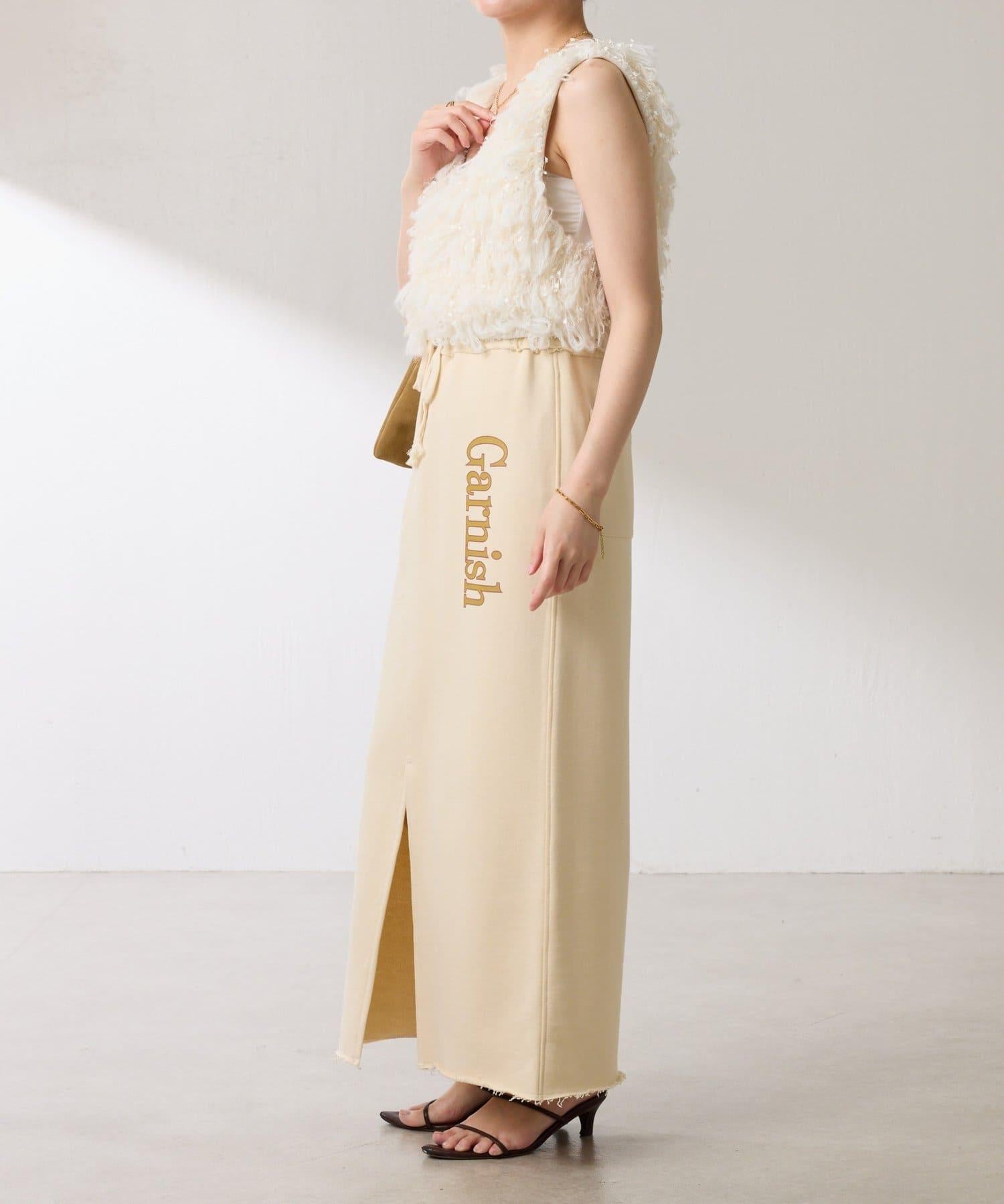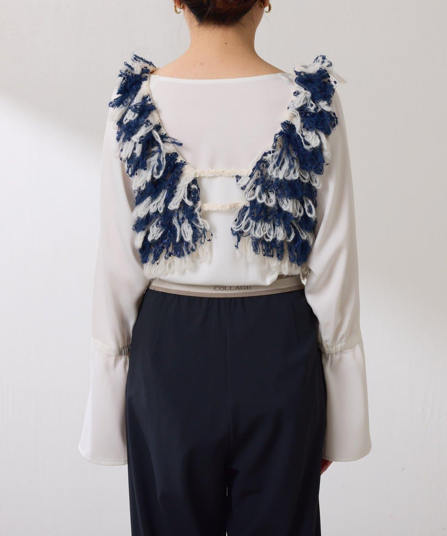 這款剪裁針織馬甲採用兩種紗線以線圈的形式編織成邊框。