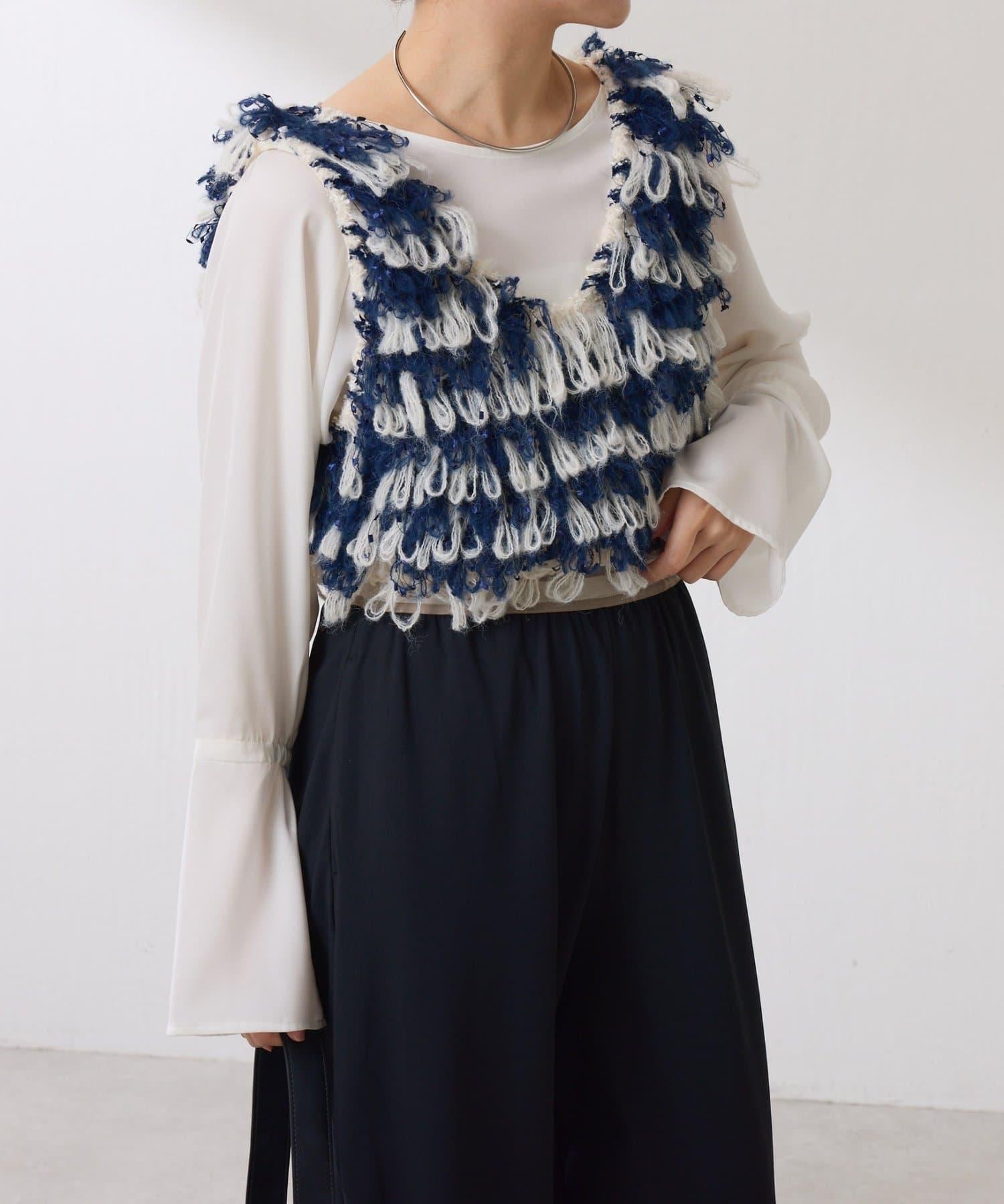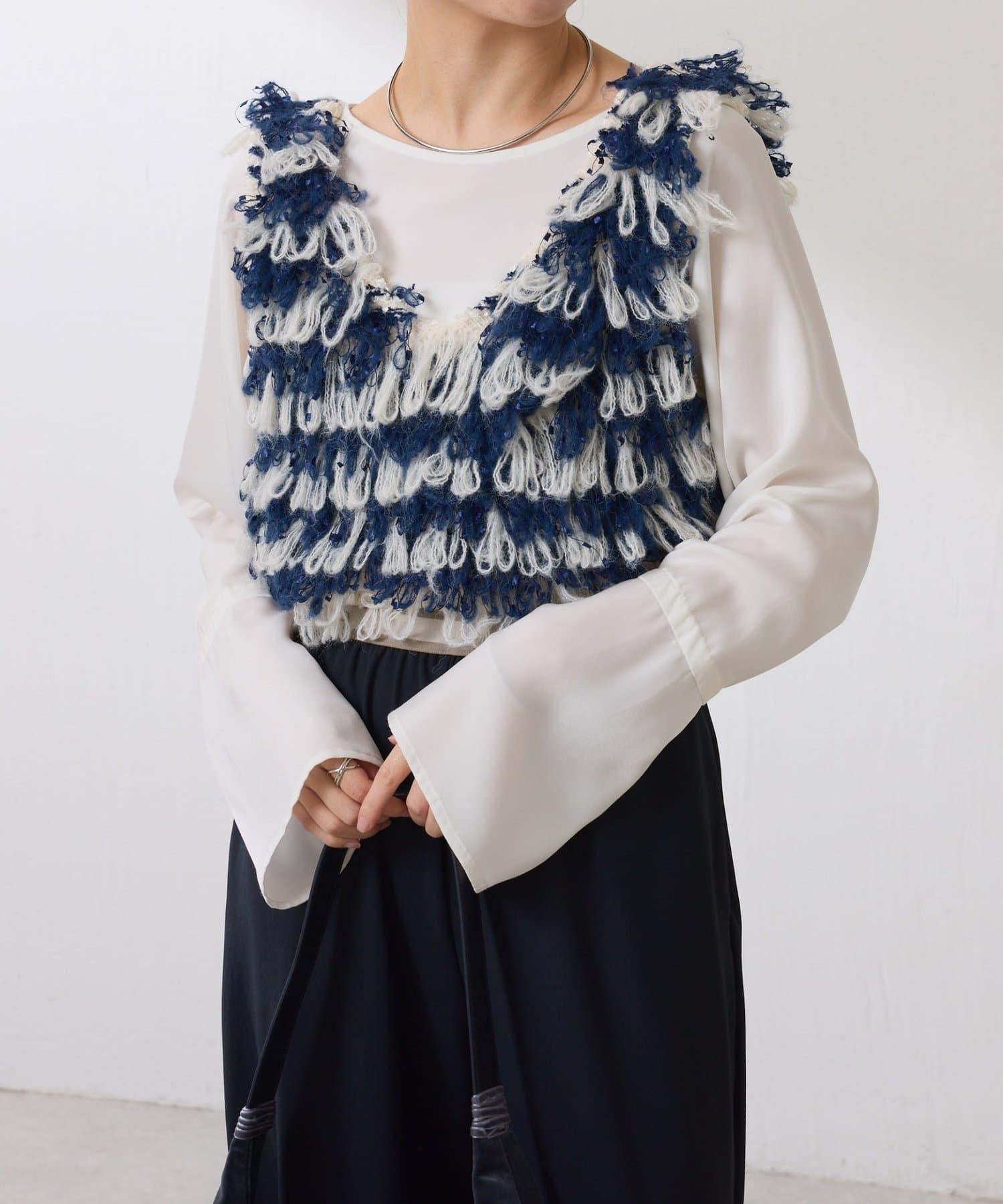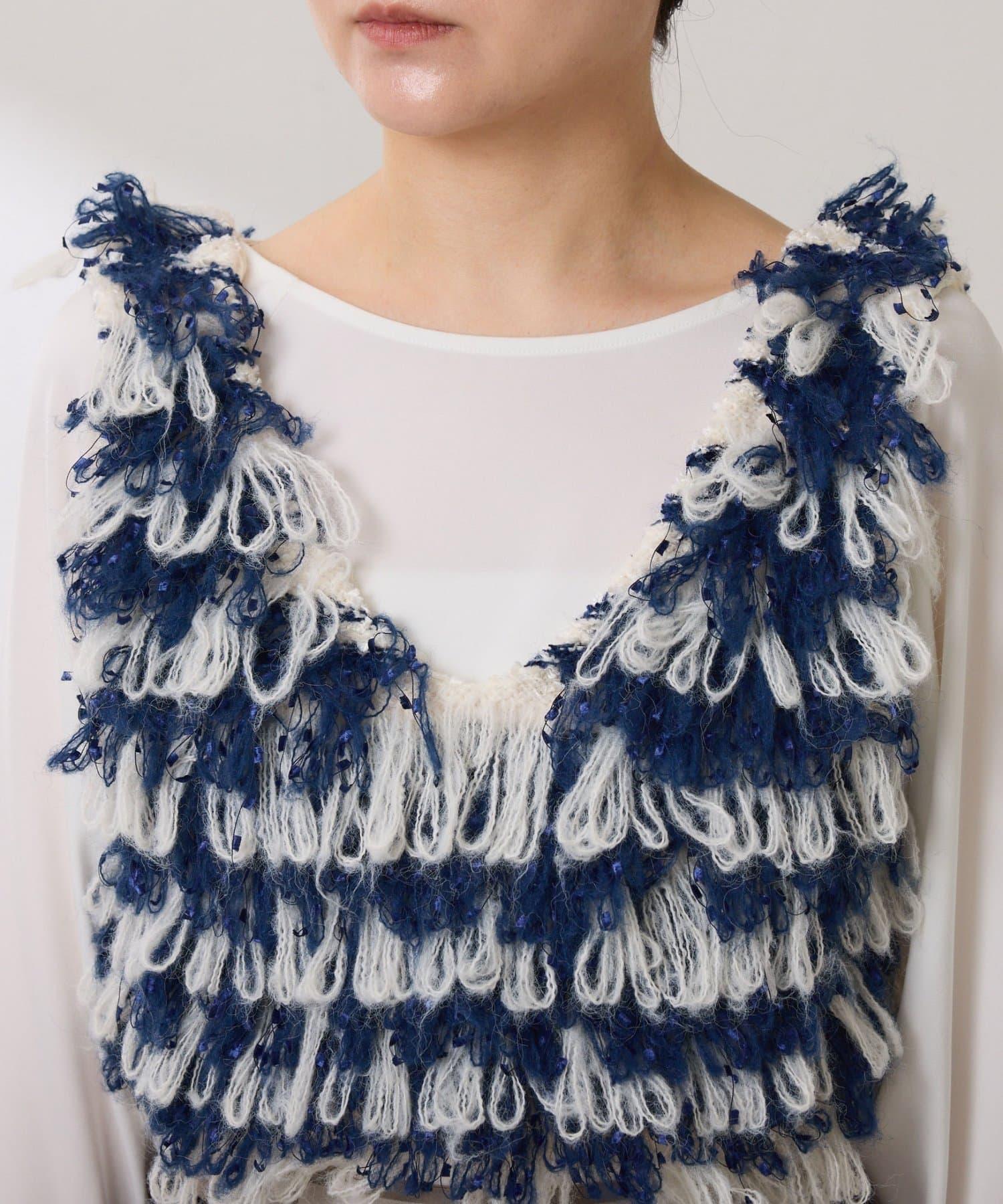 用兩種紗線製成的帶線圈邊的針織馬甲。