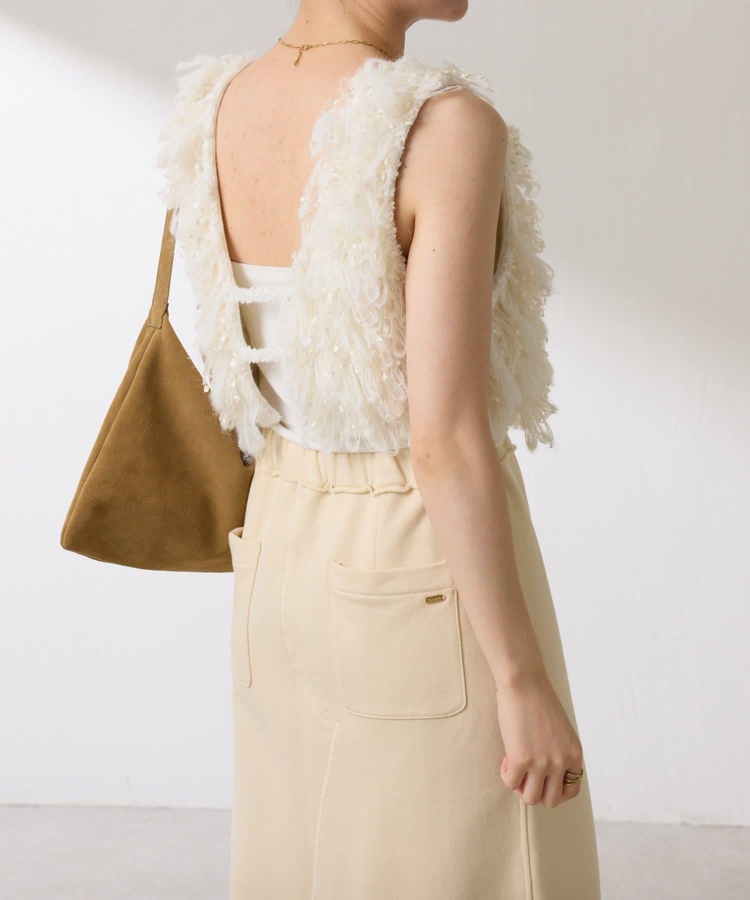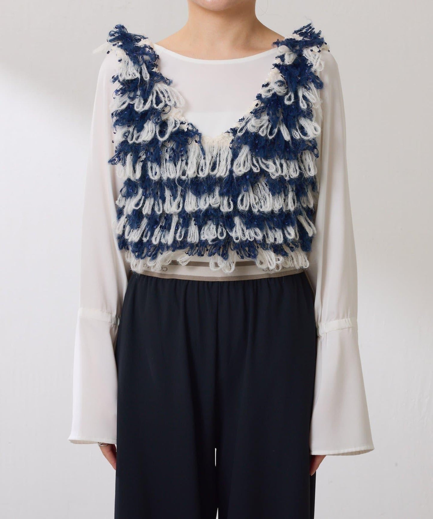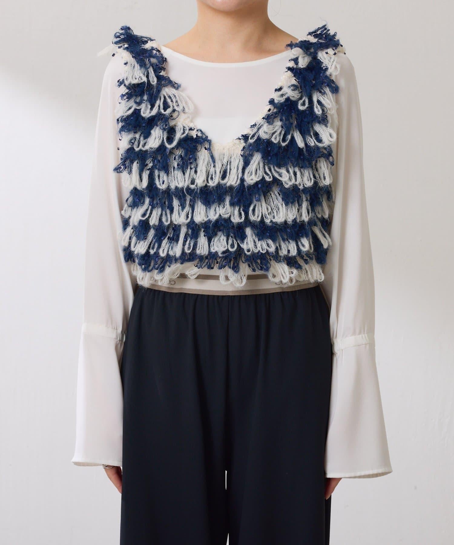 用兩種紗線製成的帶線圈邊的針織馬甲。