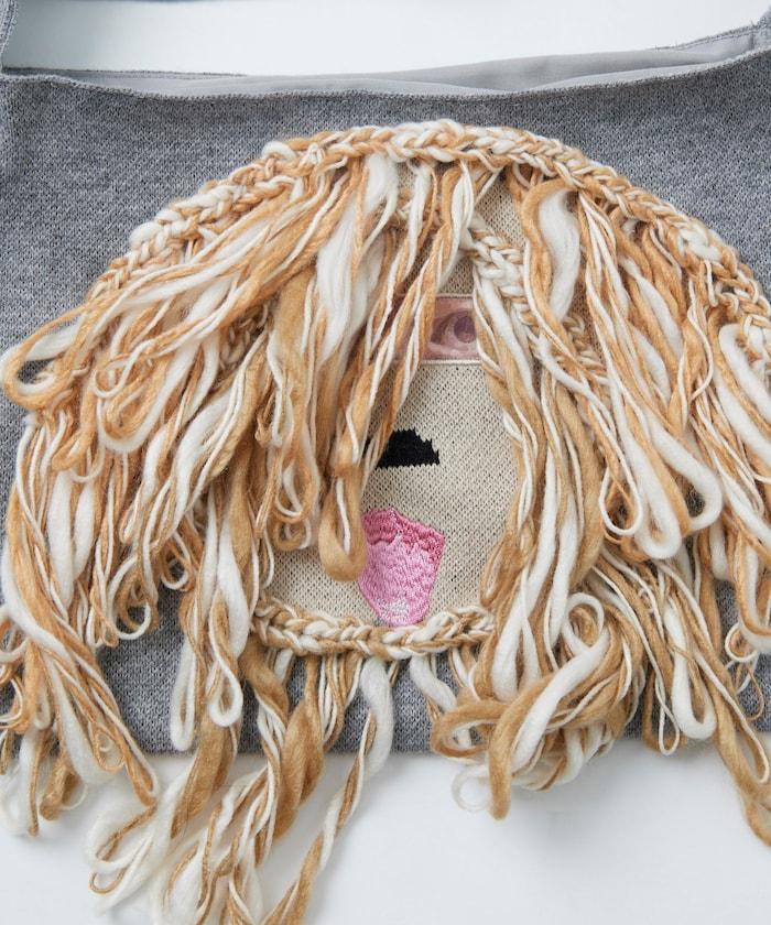 包的正面用紗線表現了羅爾夫的毛髮和從紗線中探出的眼睛。