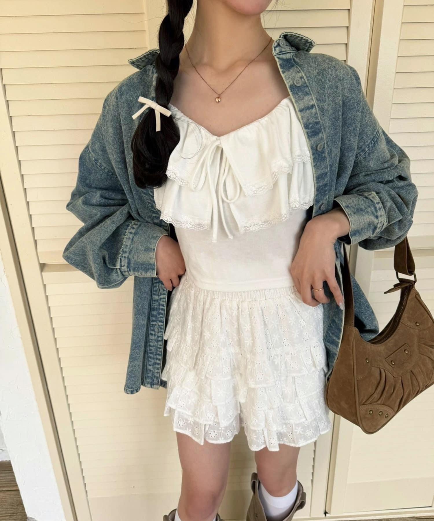 帶有絲帶和流蘇的吊帶衫,突出你的座標。
