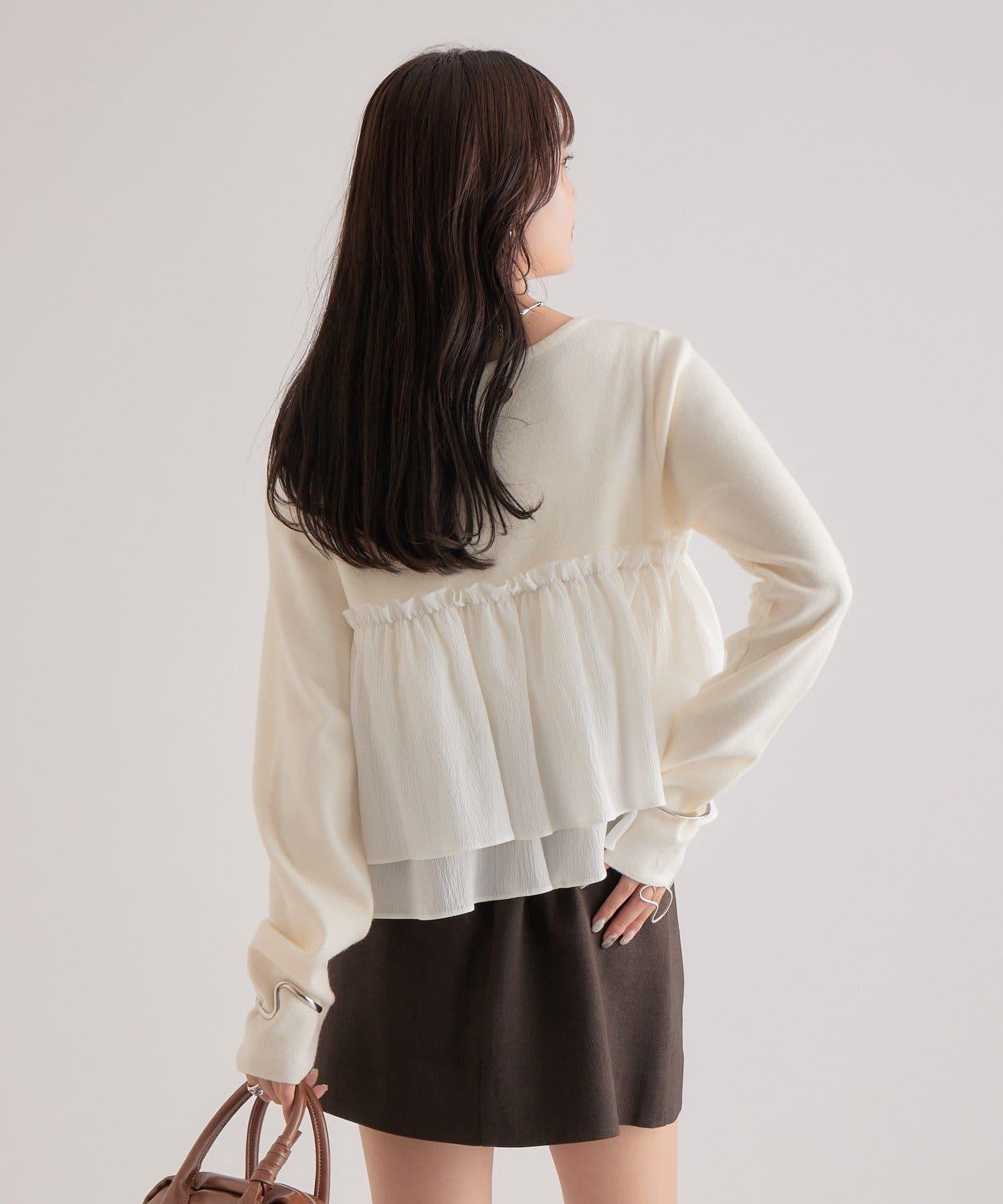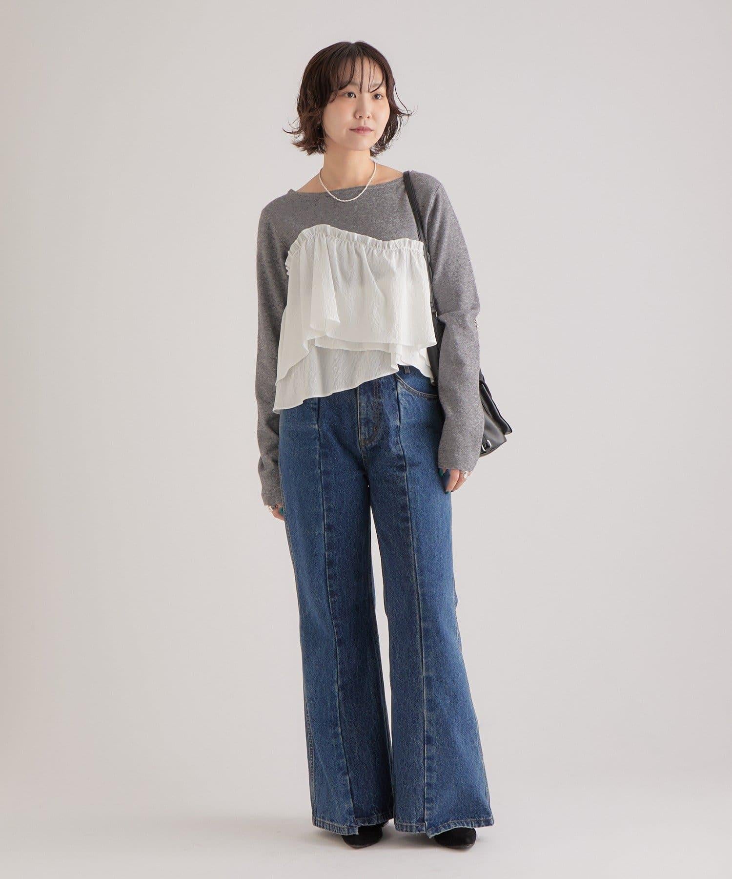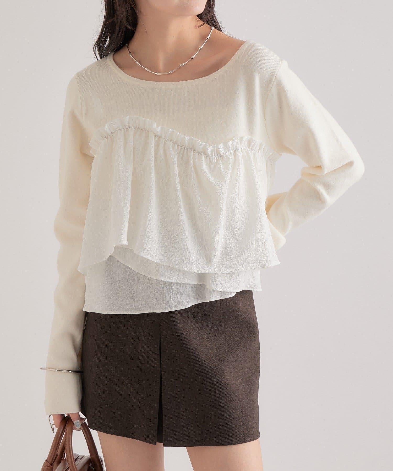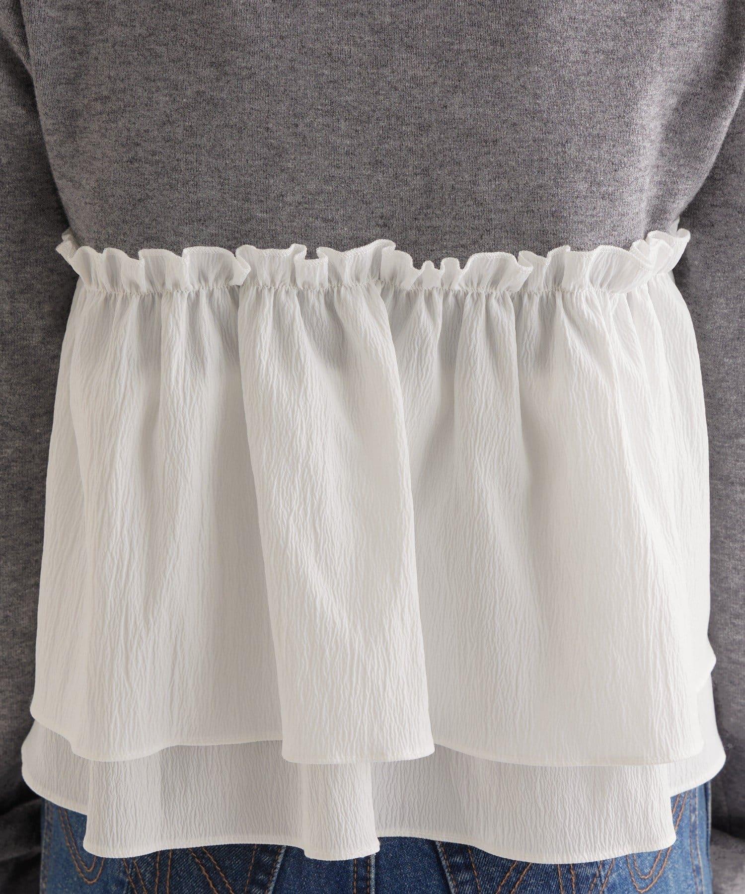 荷葉邊還能遮住腰部,所以和緊身打底褲很搭!