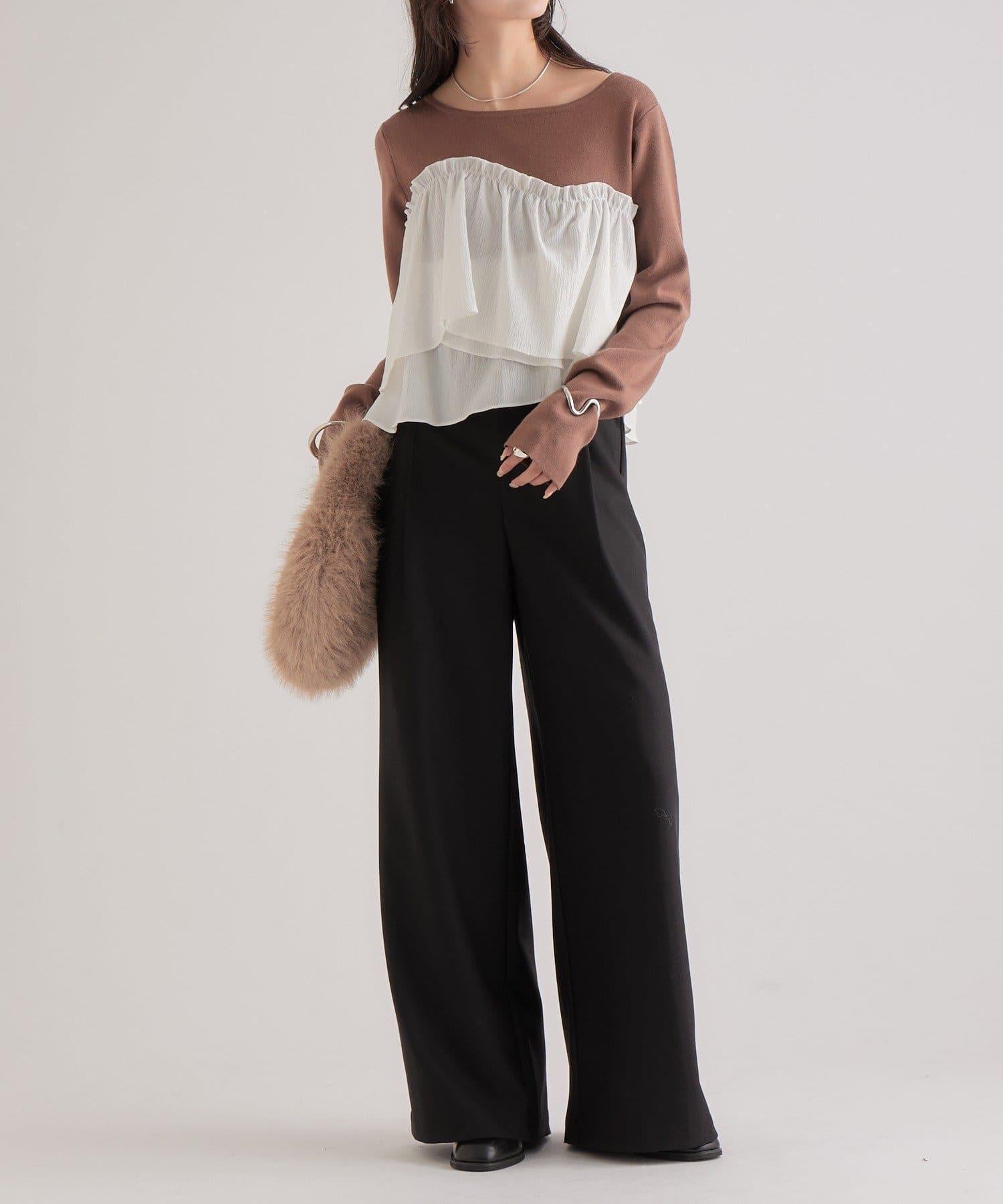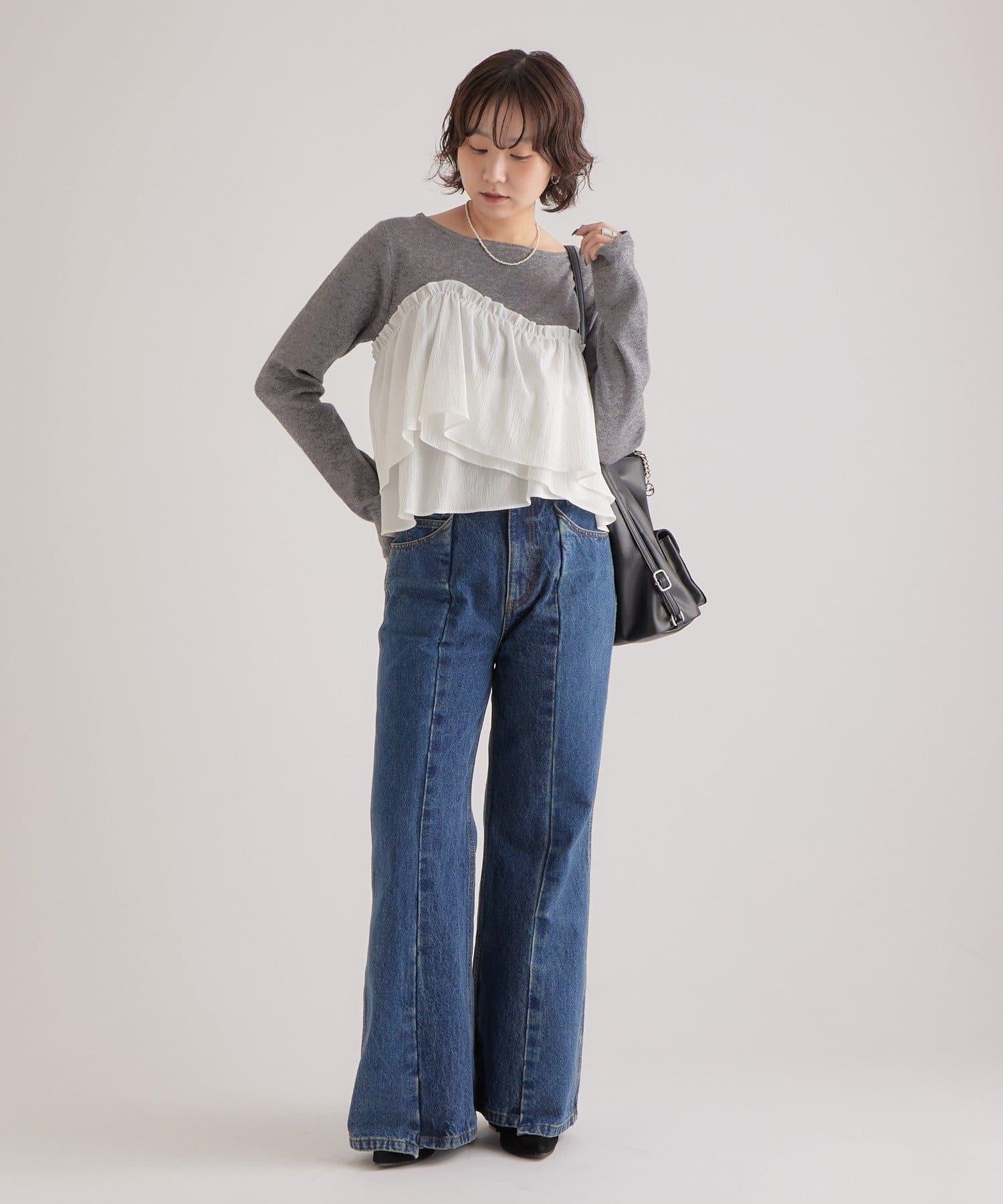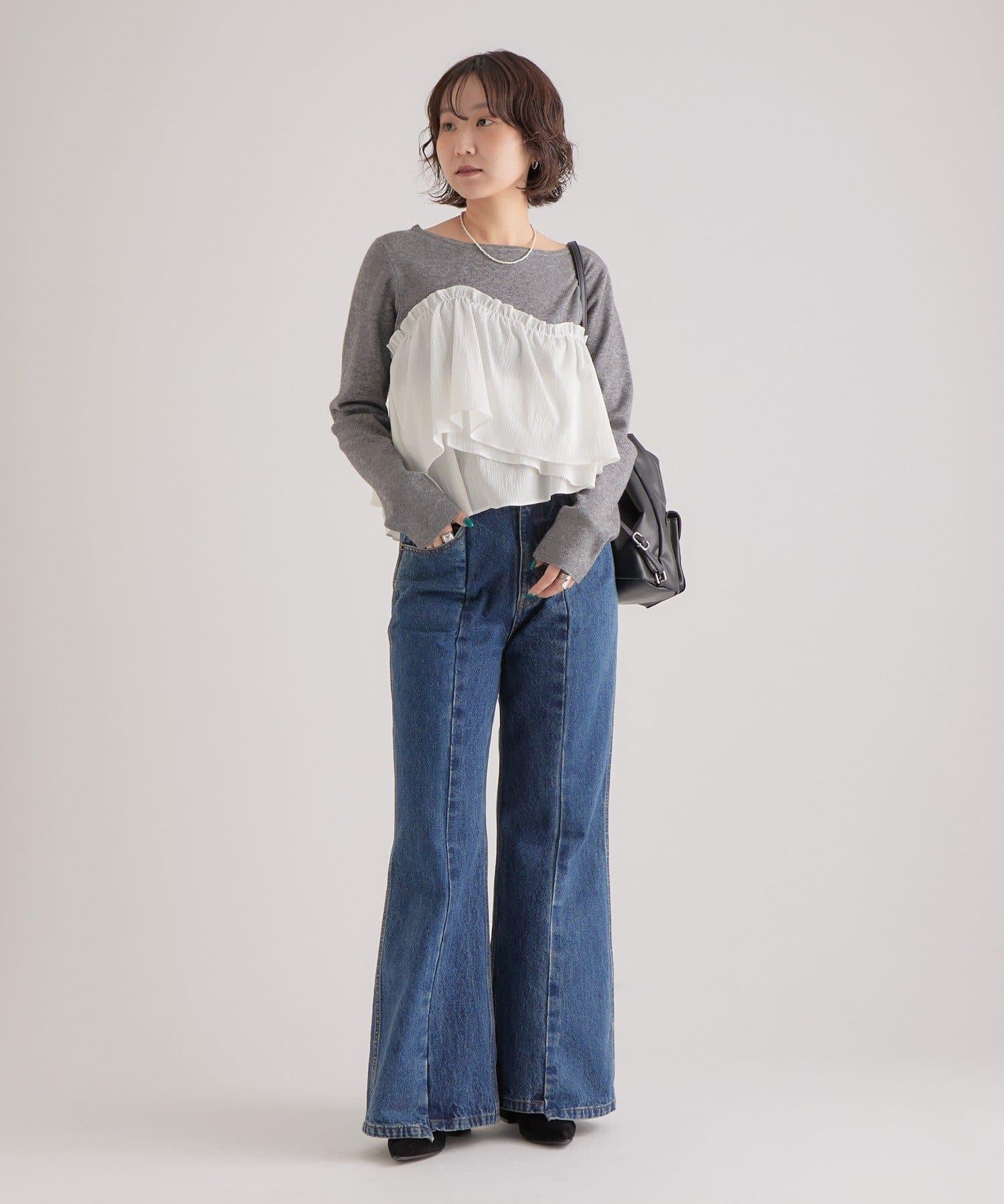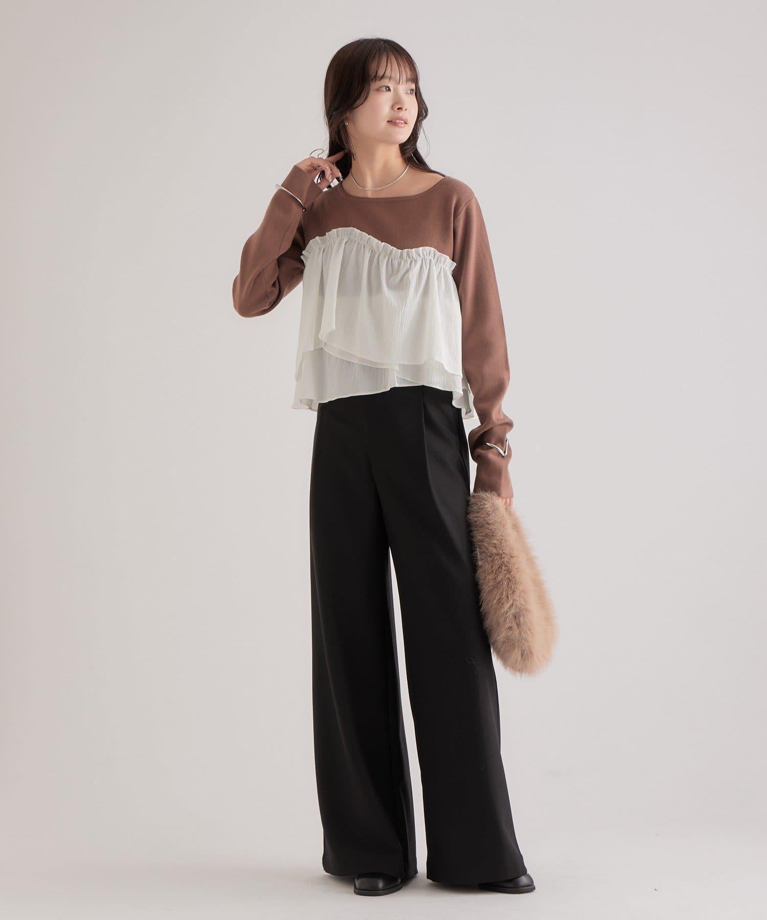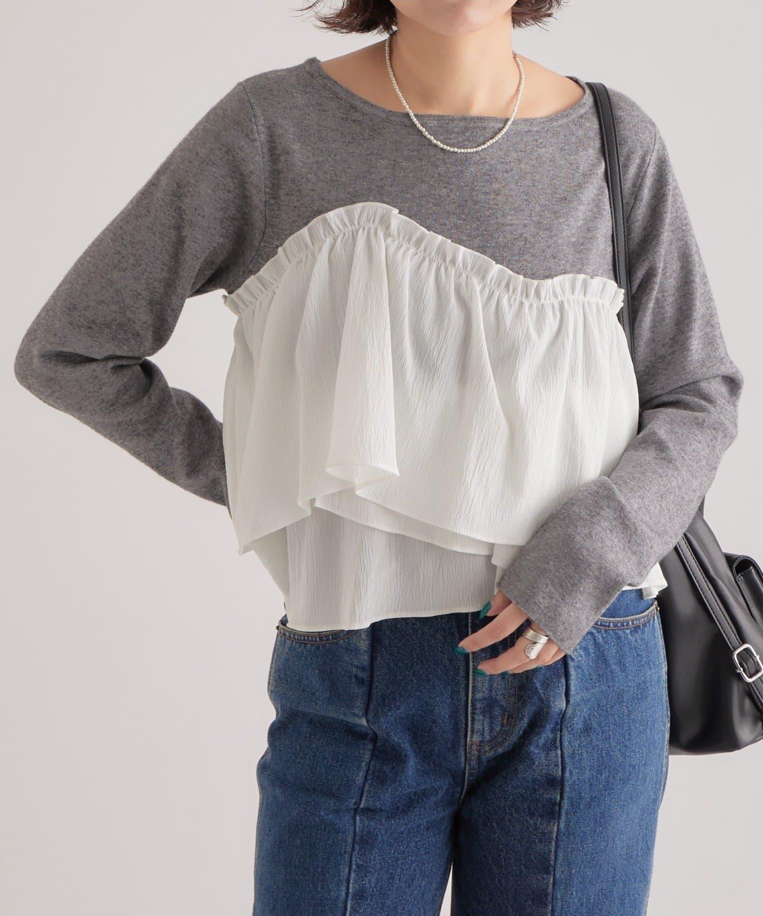 荷葉邊還能遮住腰部,所以和緊身打底褲很搭!