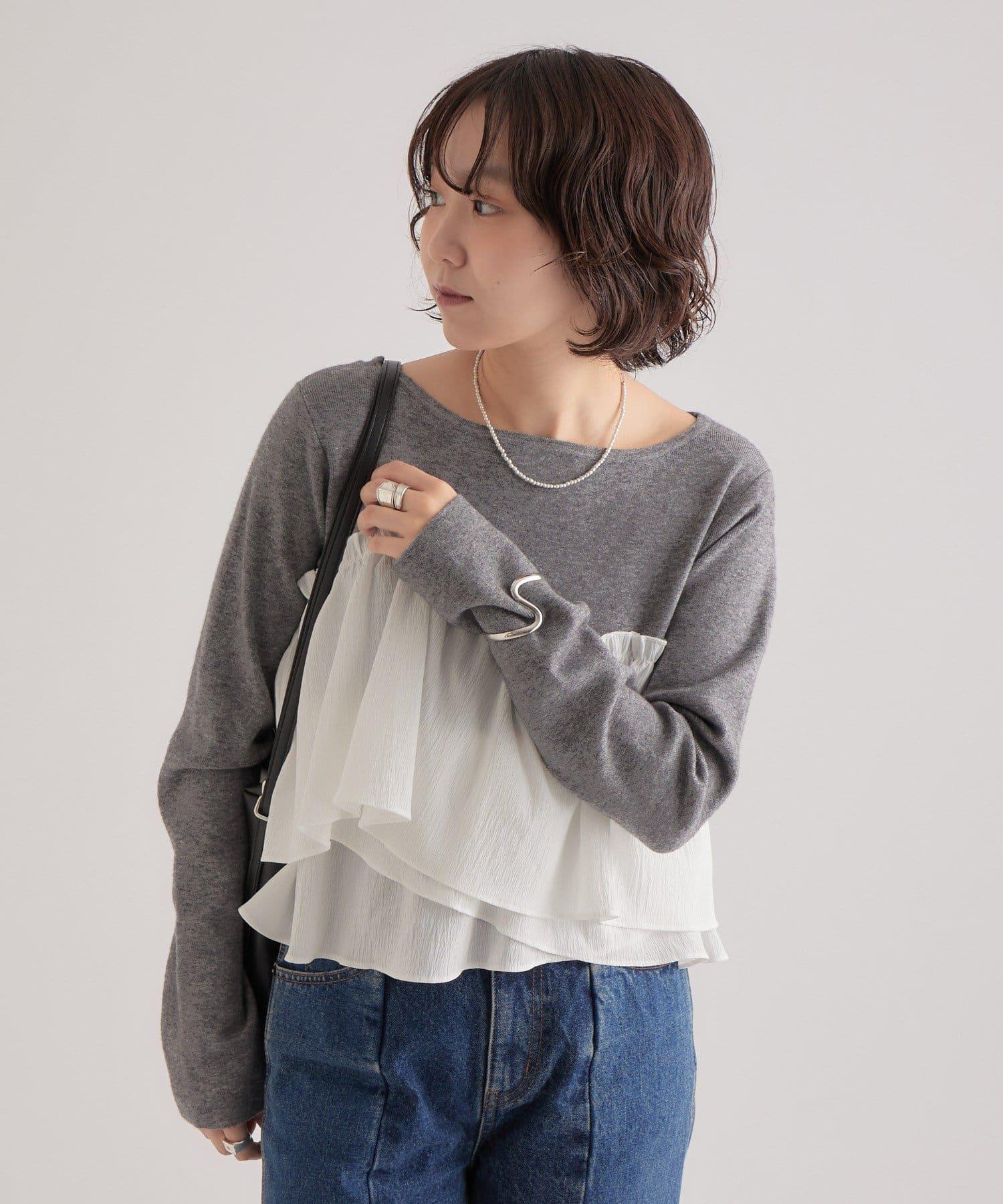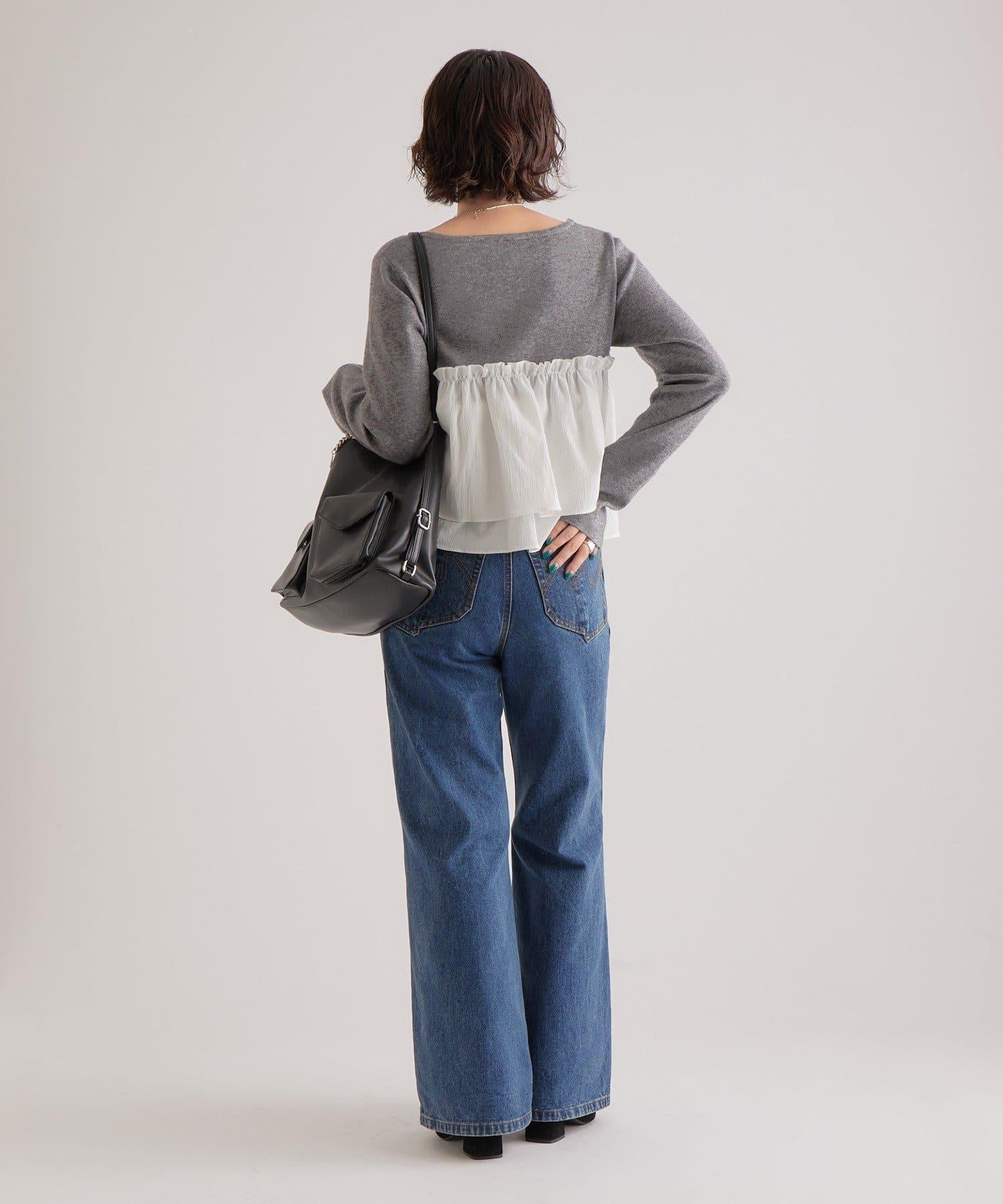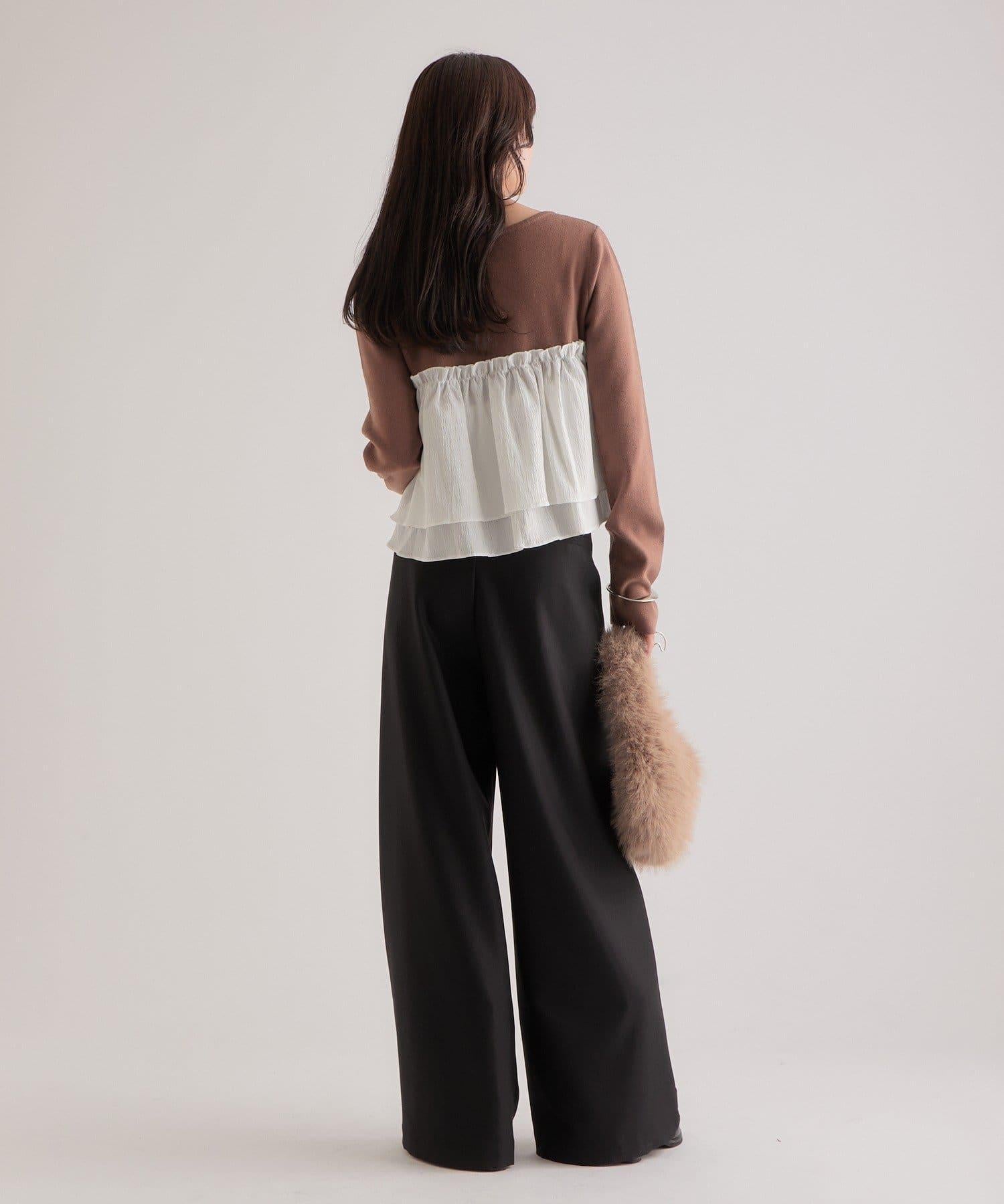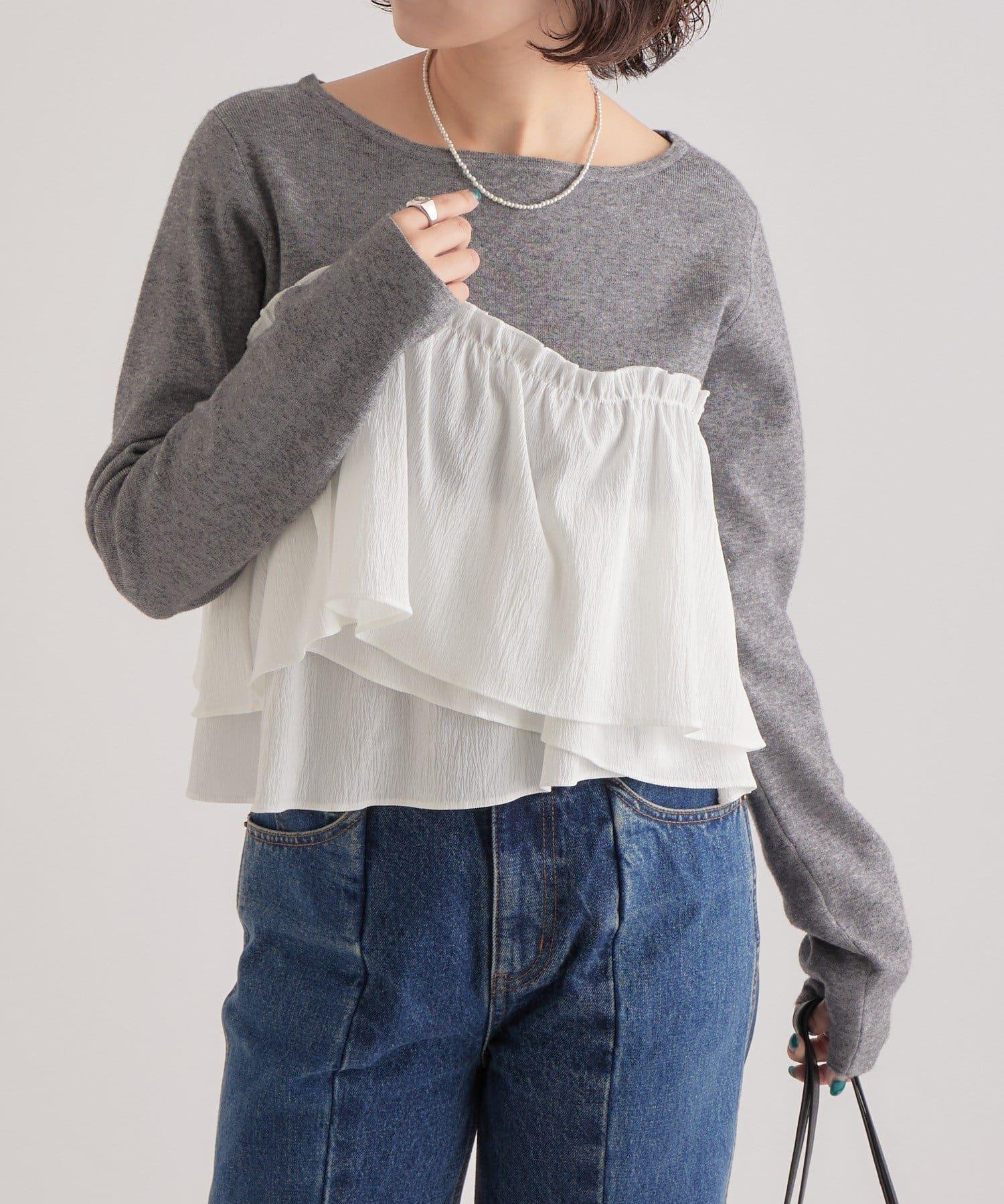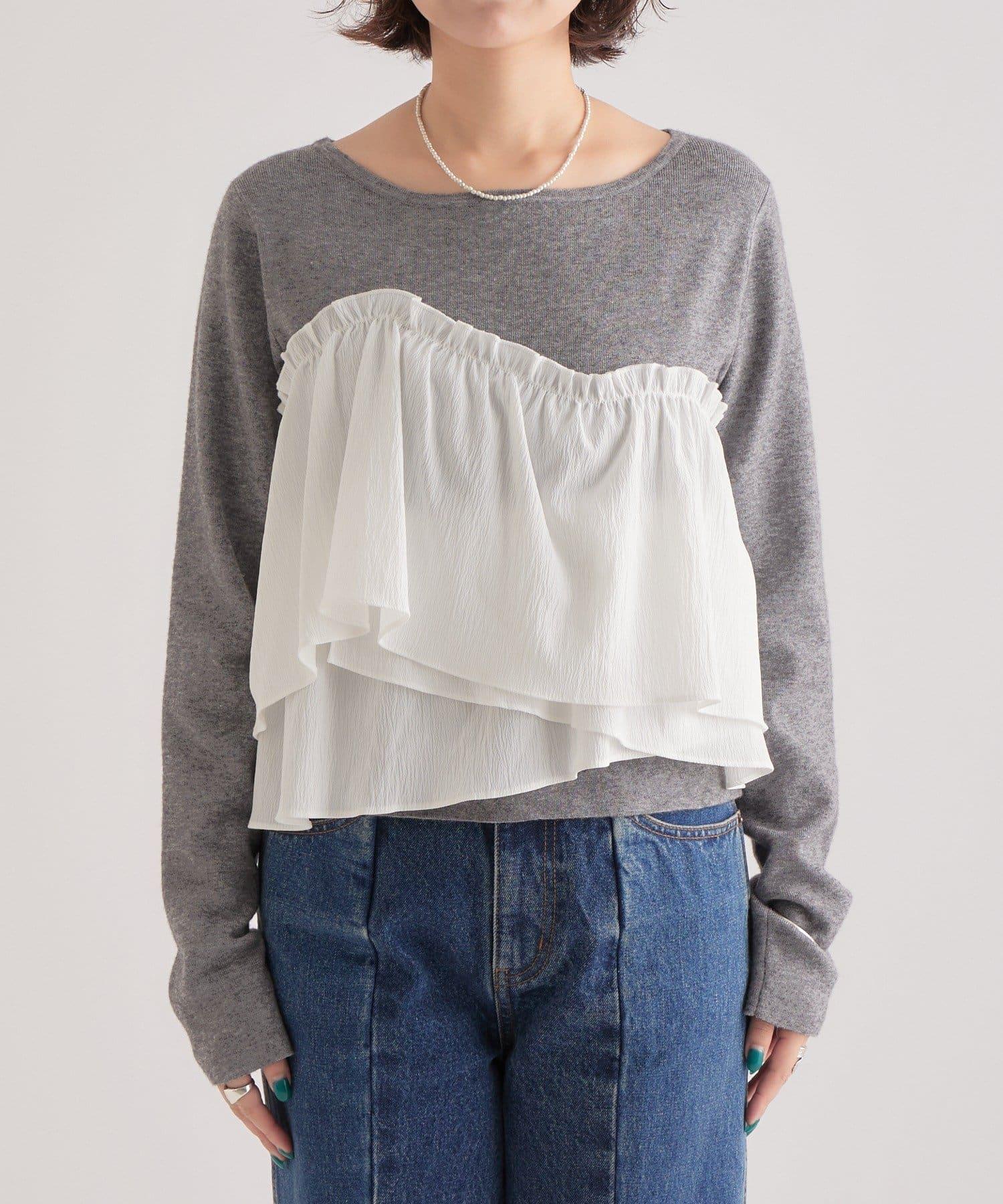 荷葉邊還能遮住腰部,所以和緊身打底褲很搭!