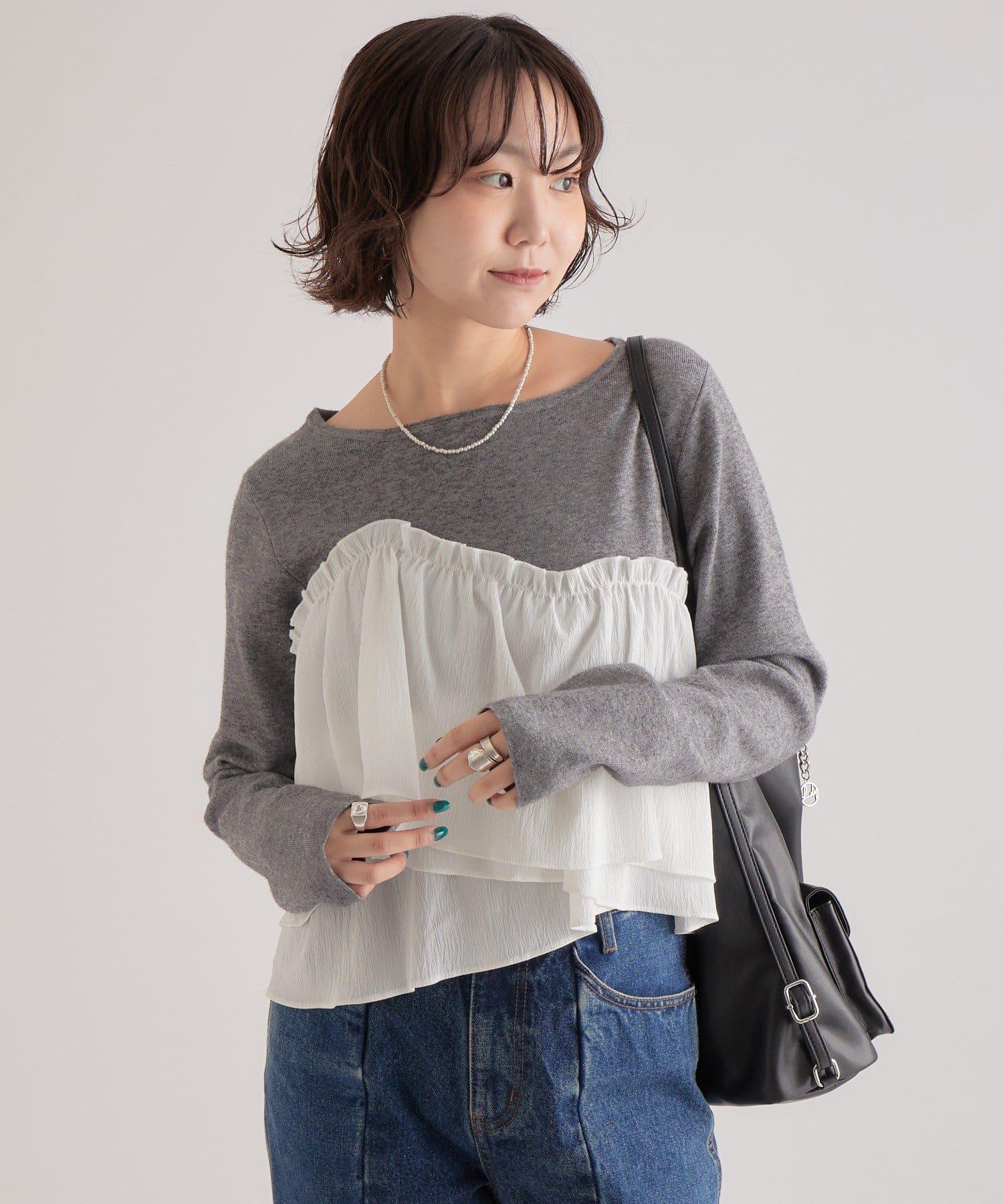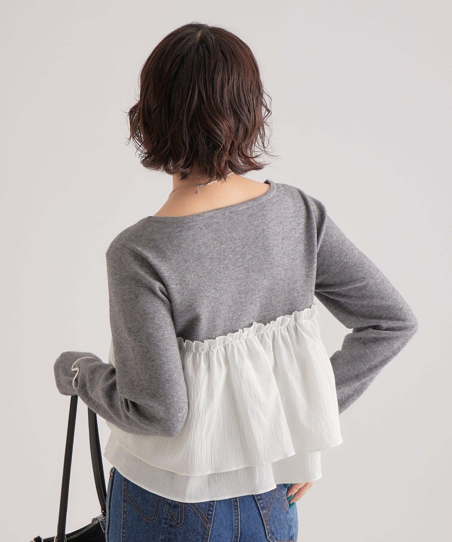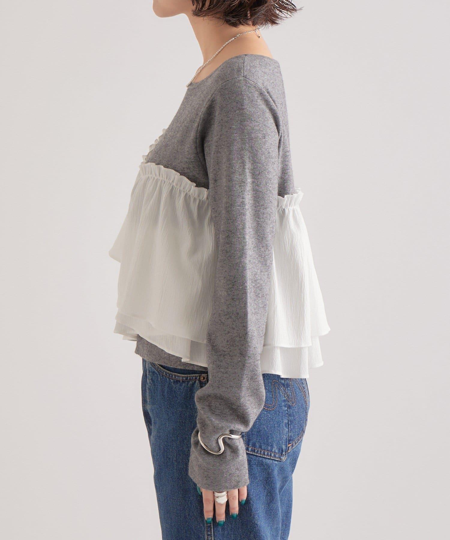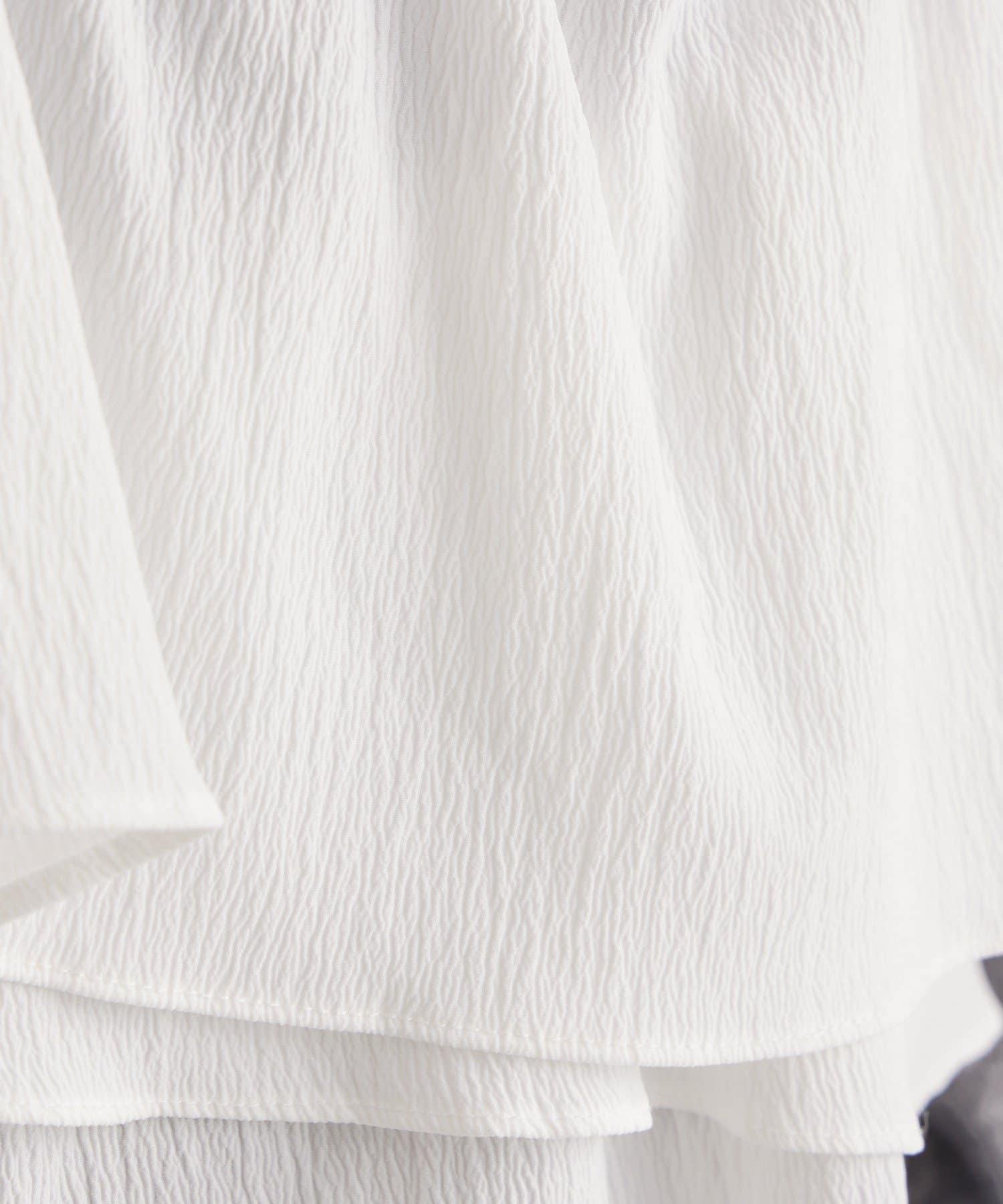 荷葉邊還能遮住腰部,所以和緊身打底褲很搭!