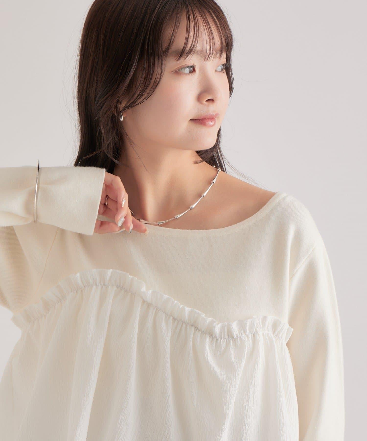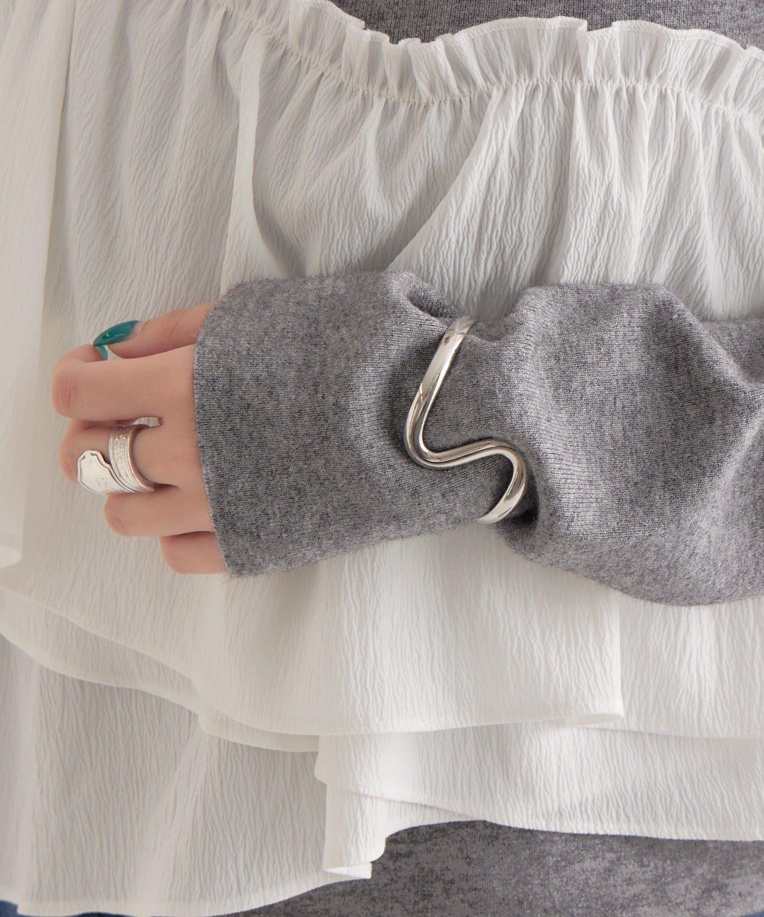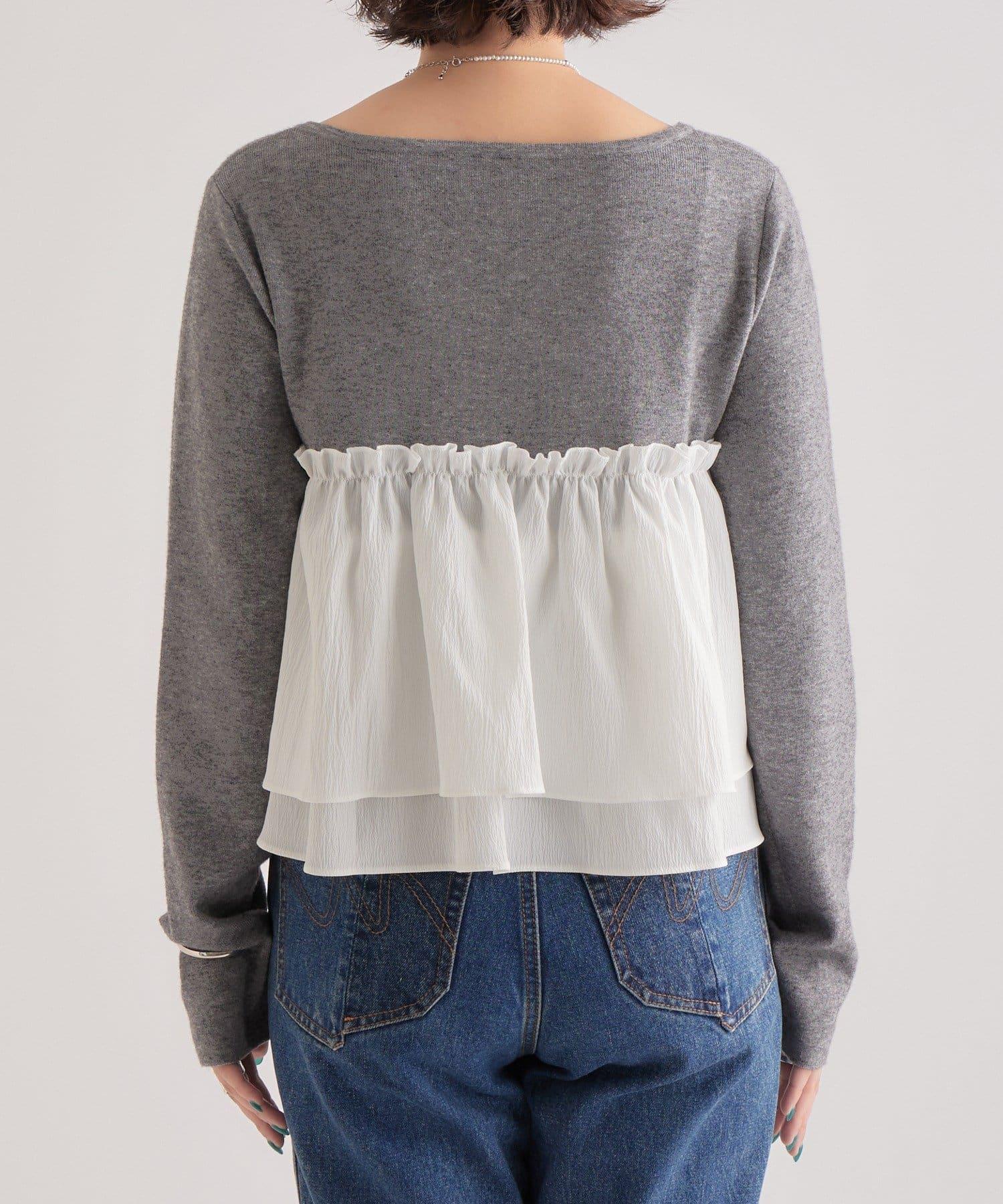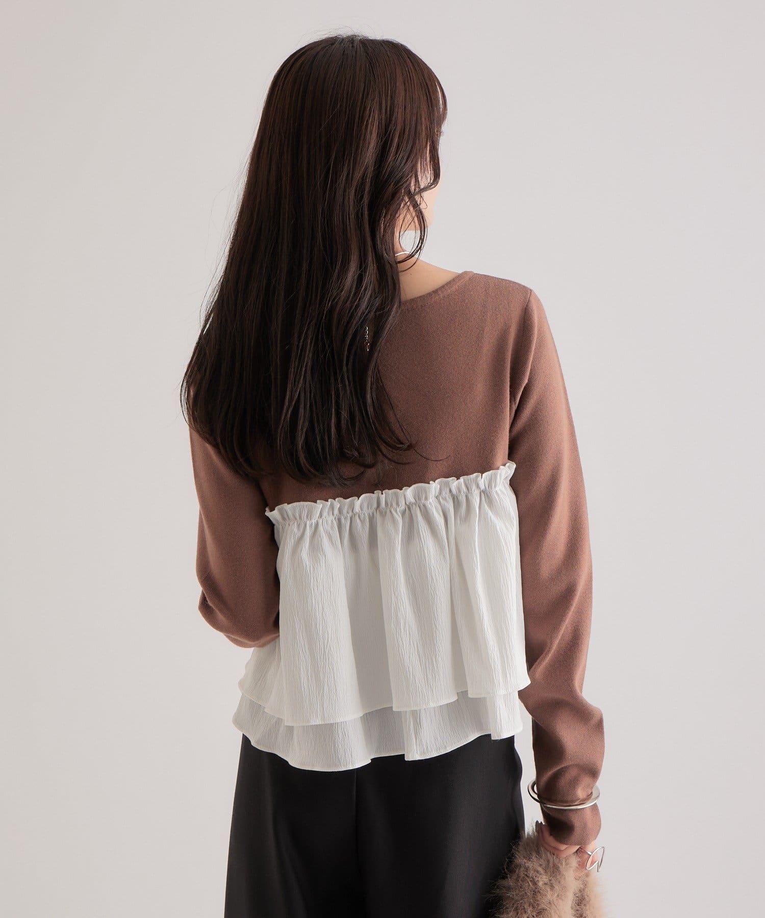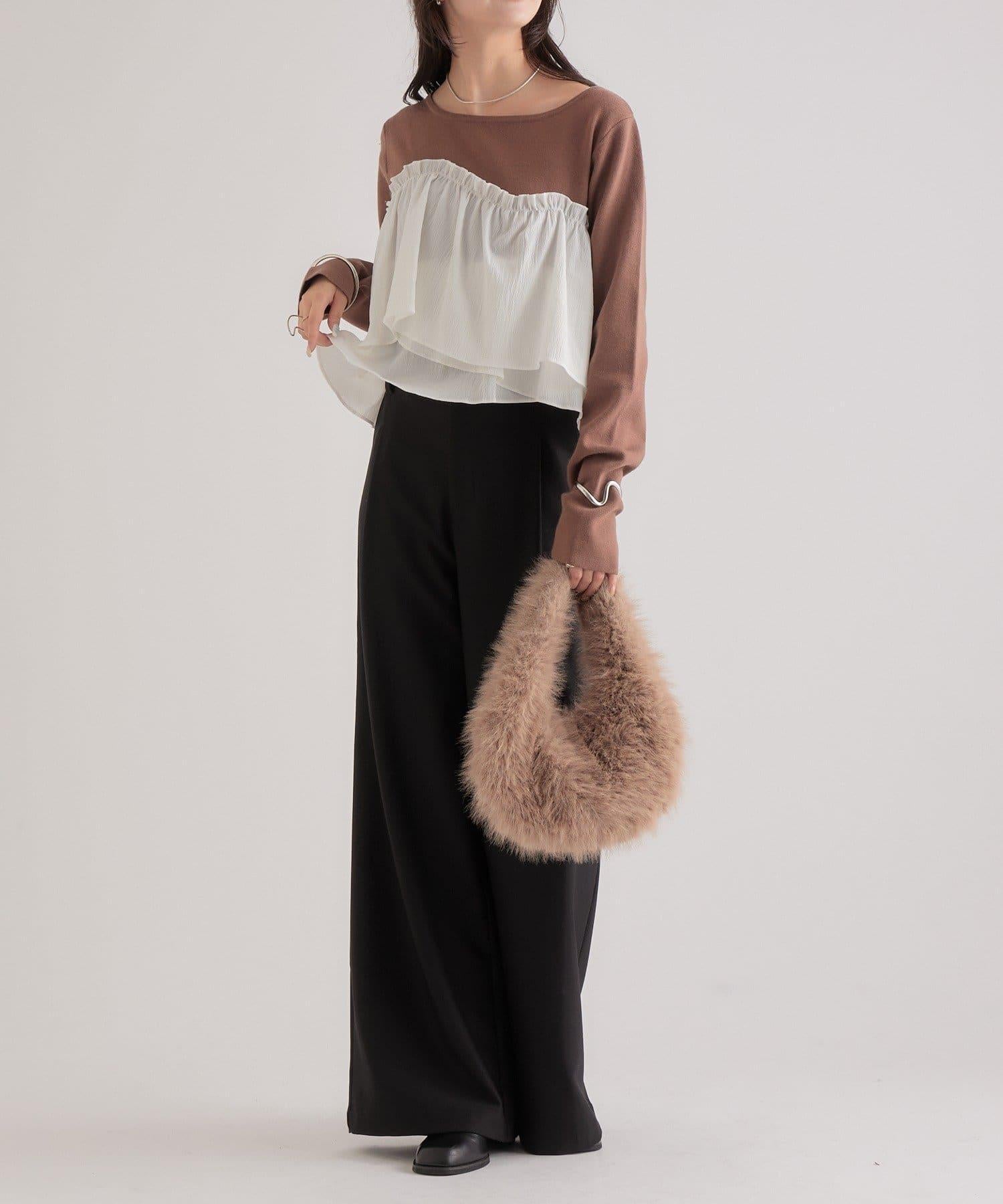 荷葉邊還能遮住腰部,所以和緊身打底褲很搭!