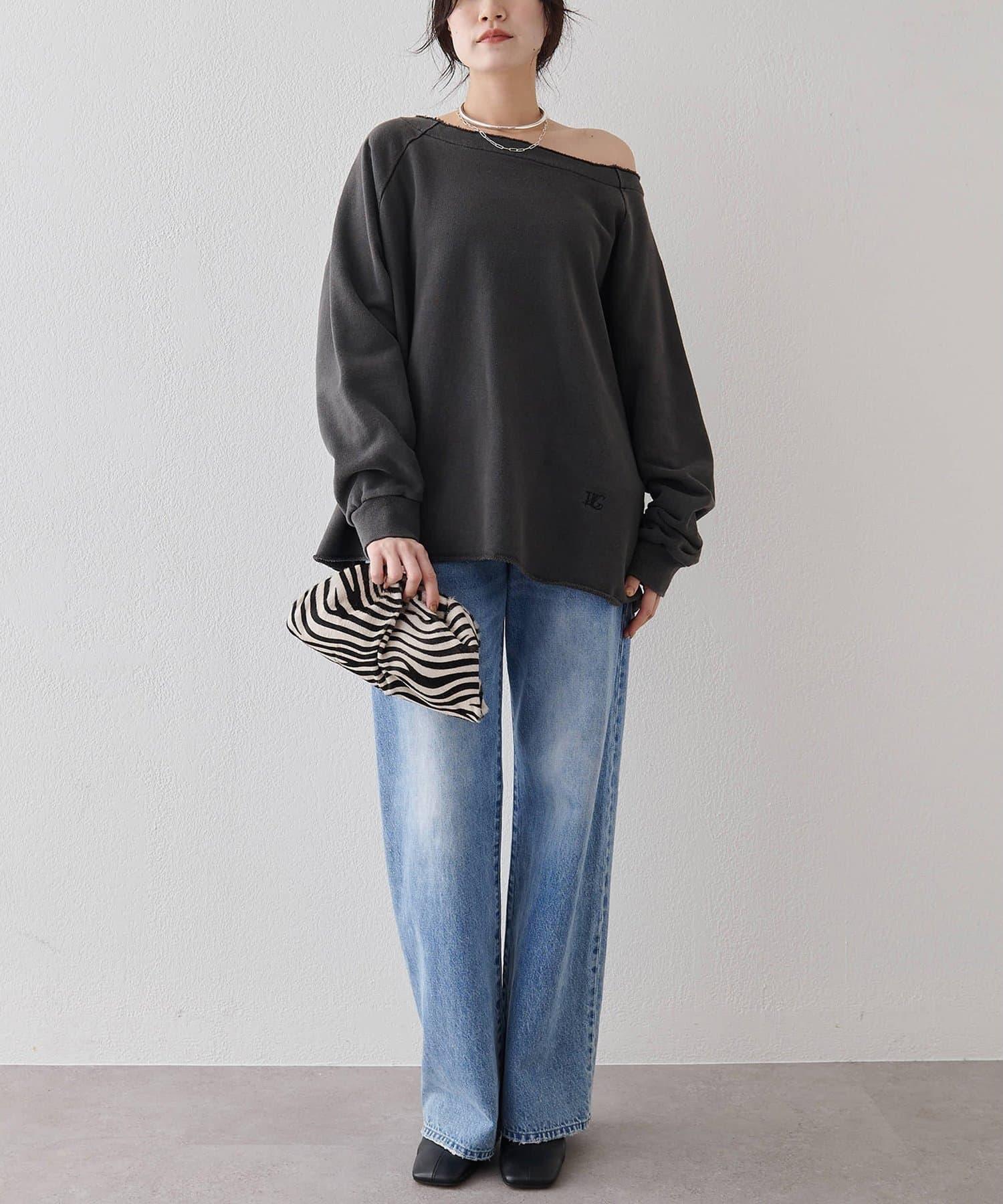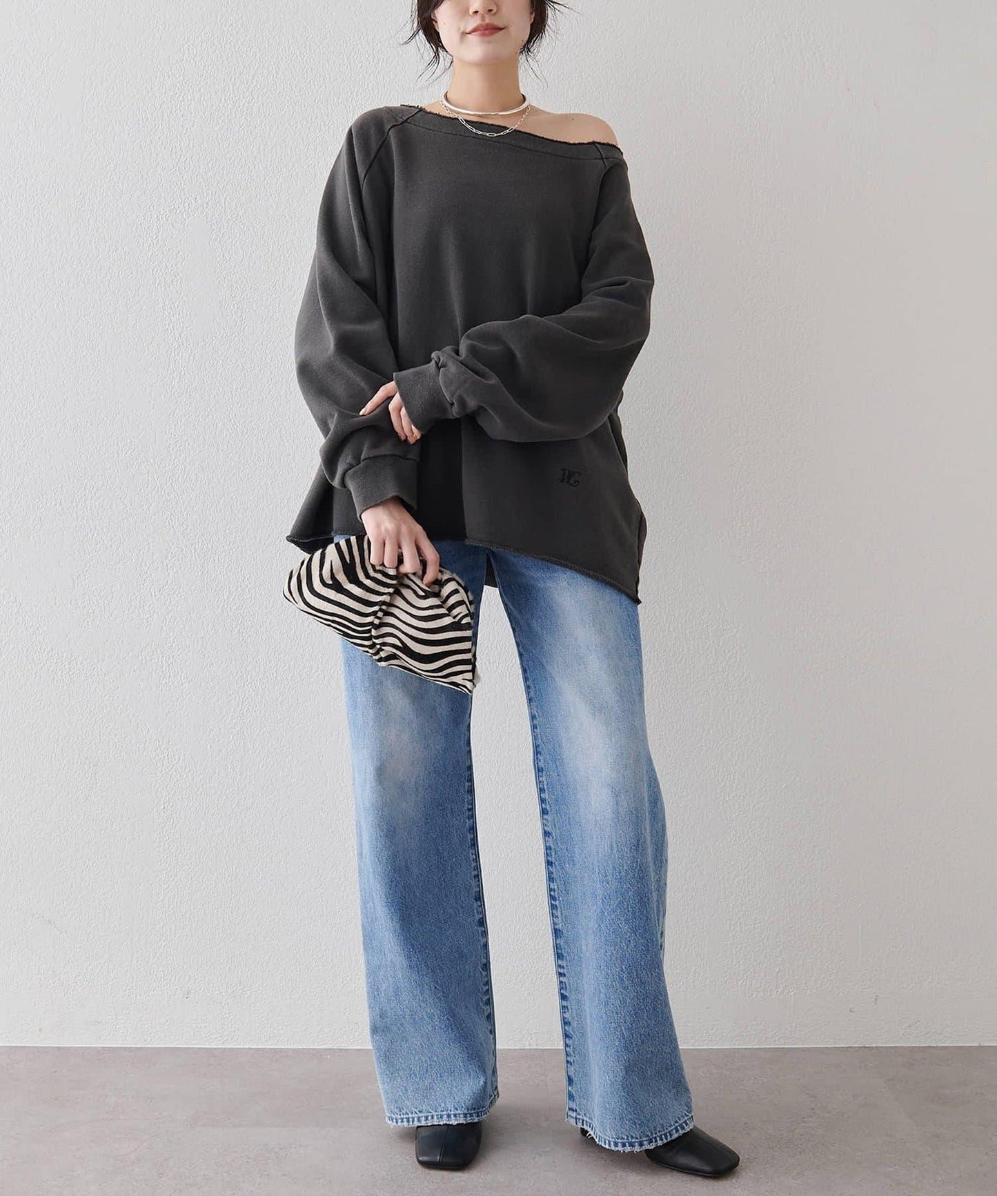 寬鬆的露肩運動衫,盡顯女性魅力。