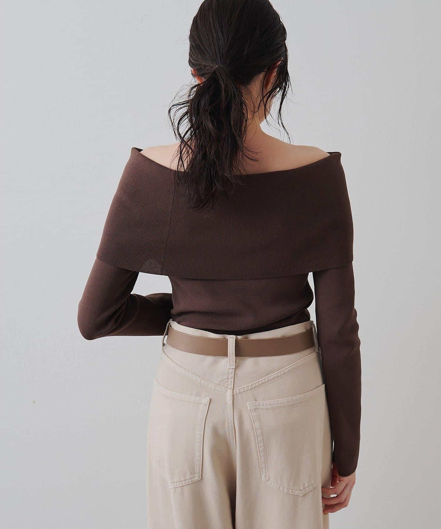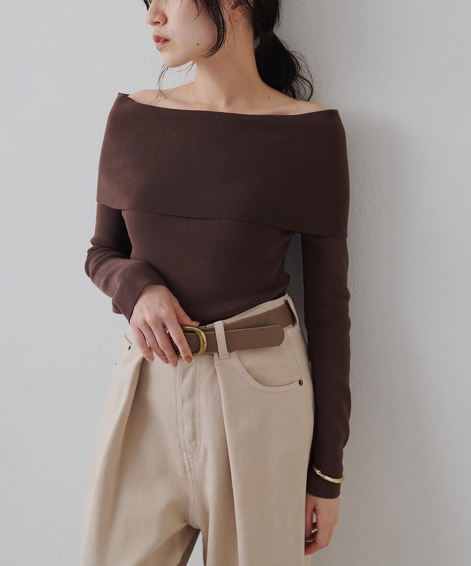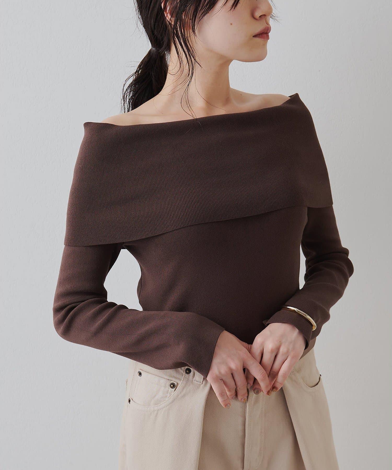 頗具淑女氣質的露肩針織衫,營造性感氛圍。