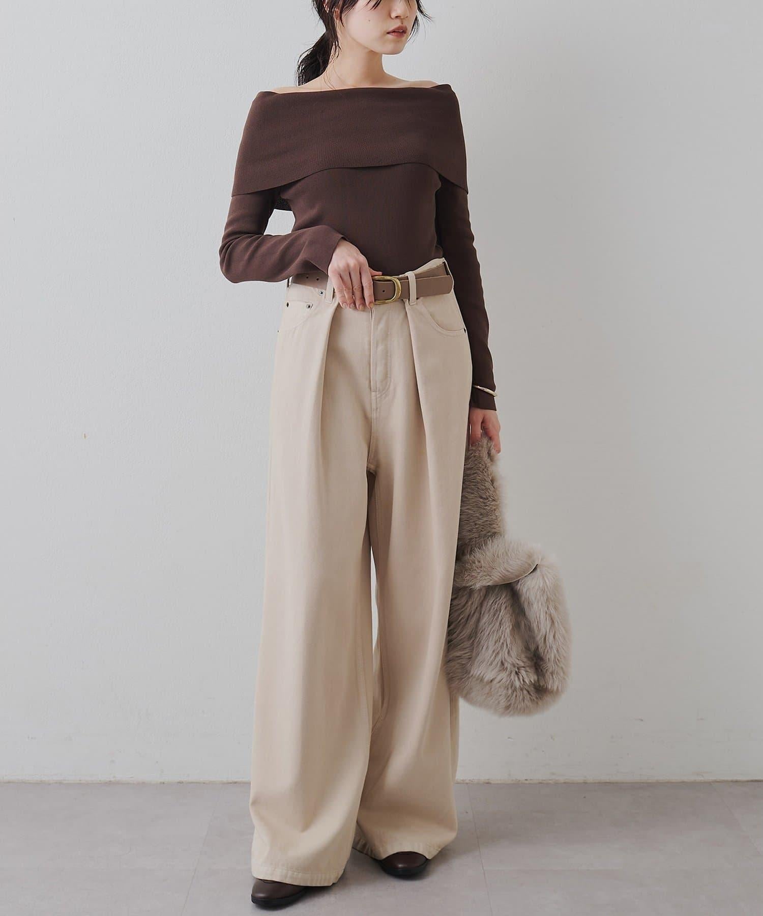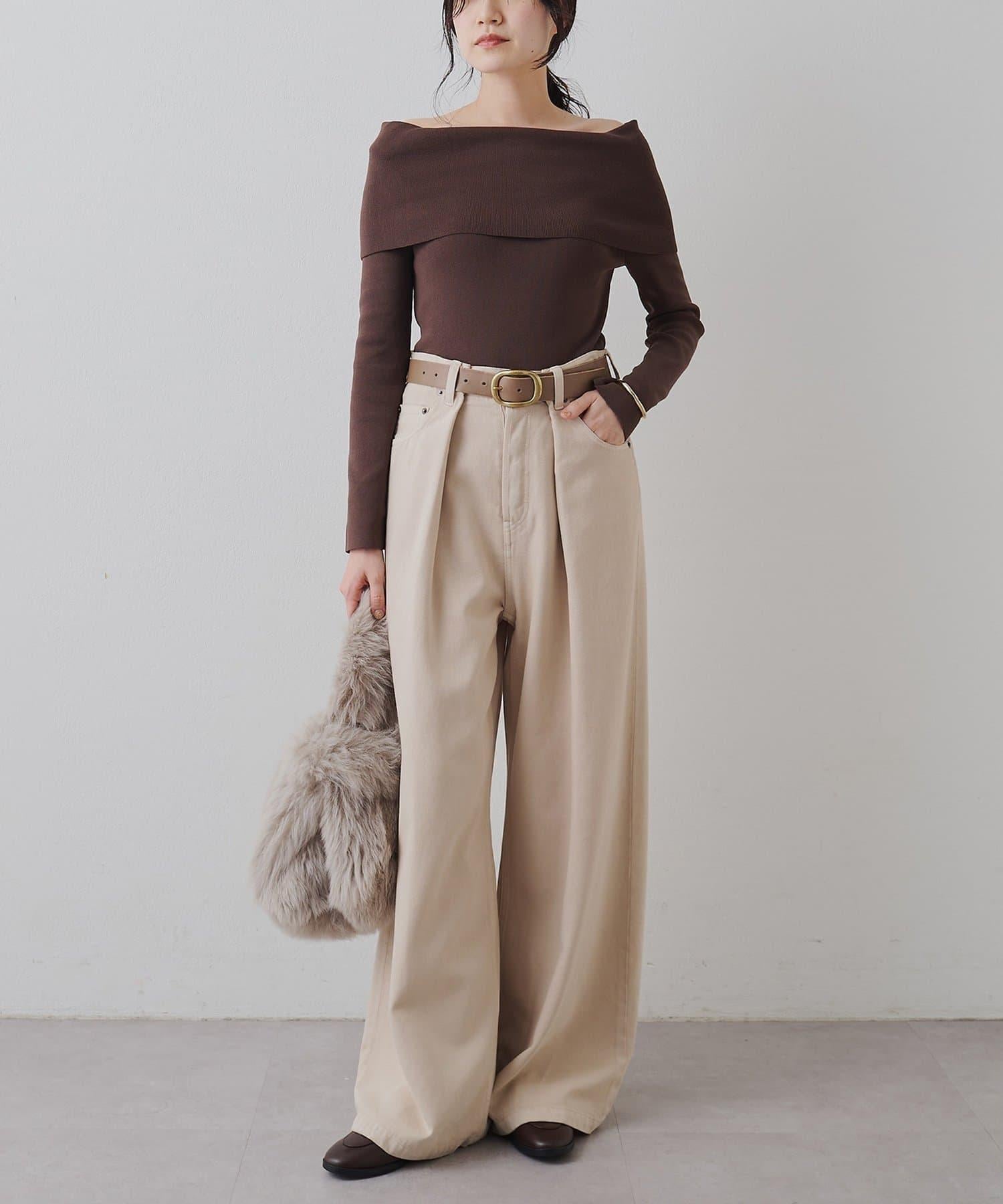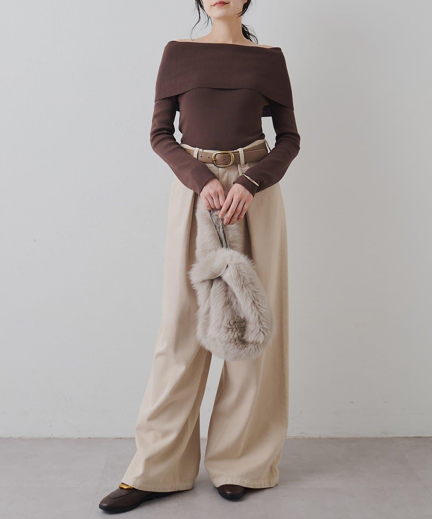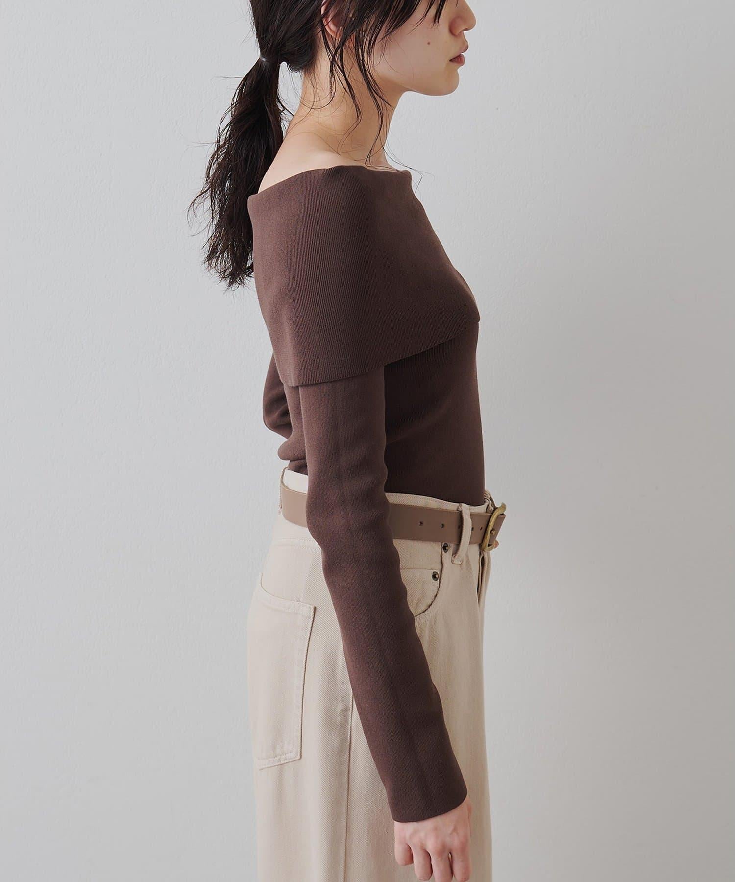 頗具淑女氣質的露肩針織衫,營造性感氛圍。