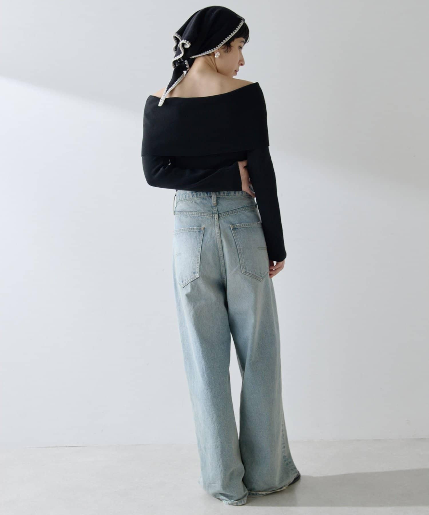 寬大的後領褶皺有一種握緊的感覺,突出了美麗的肩頸部線條。