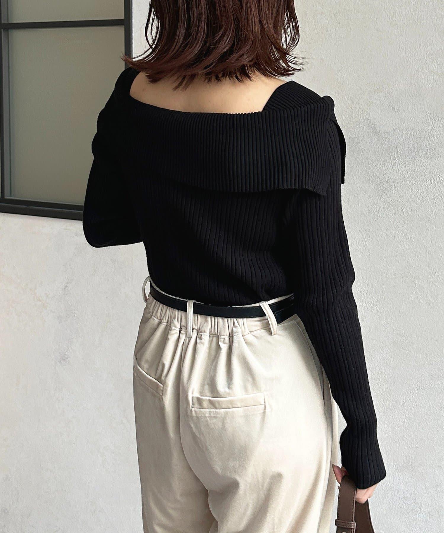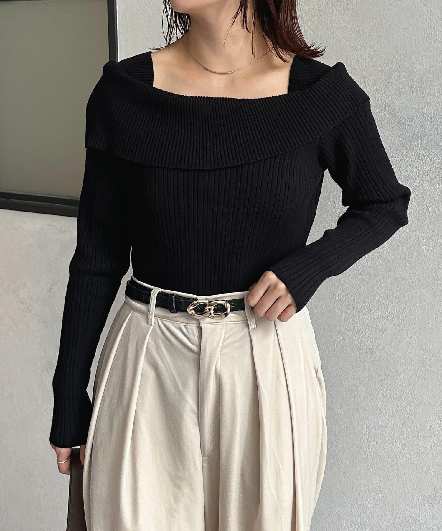預約商品一字肩風格方領羅紋針織衫
