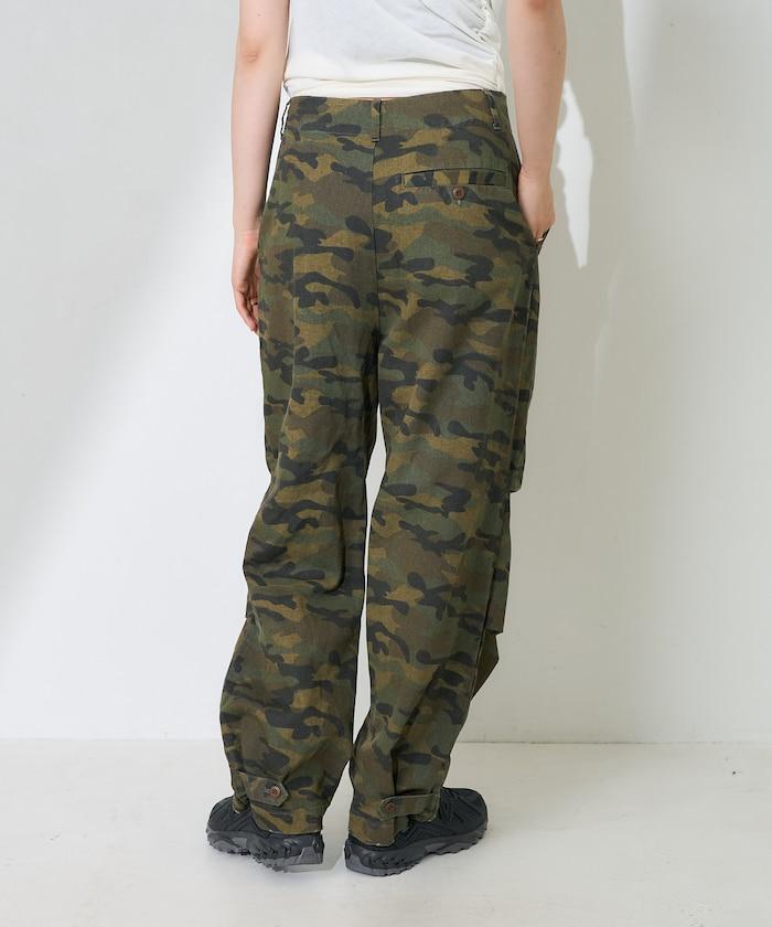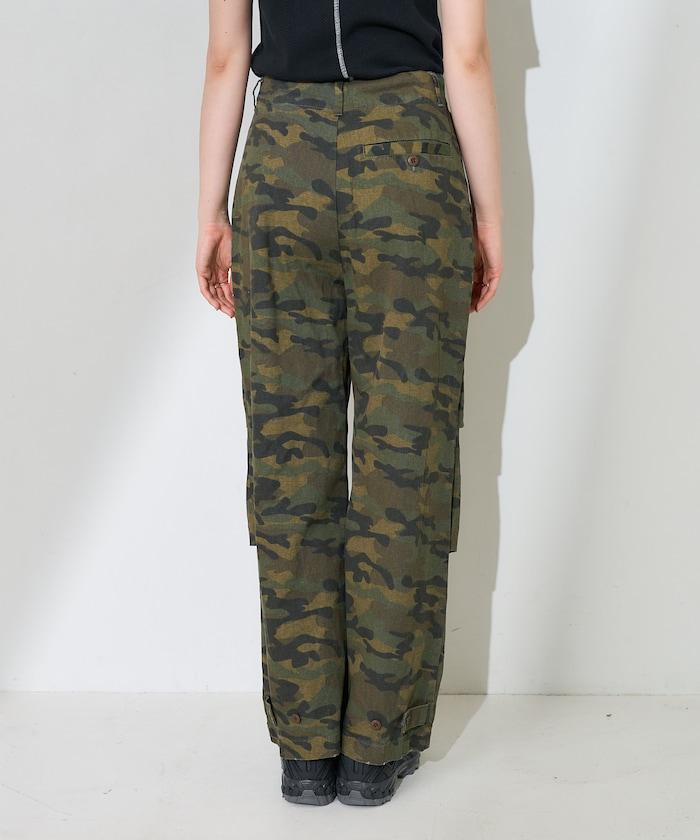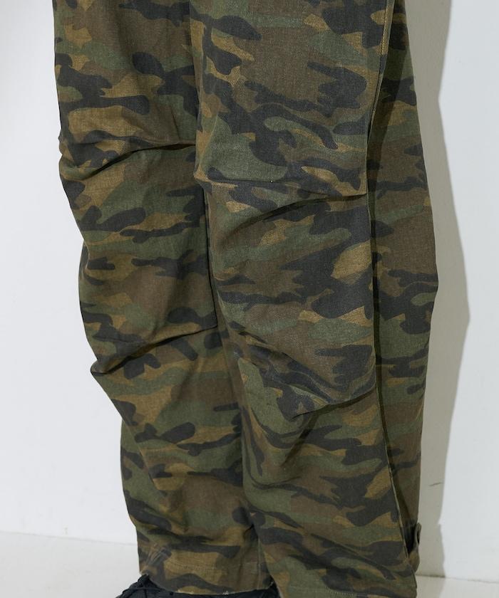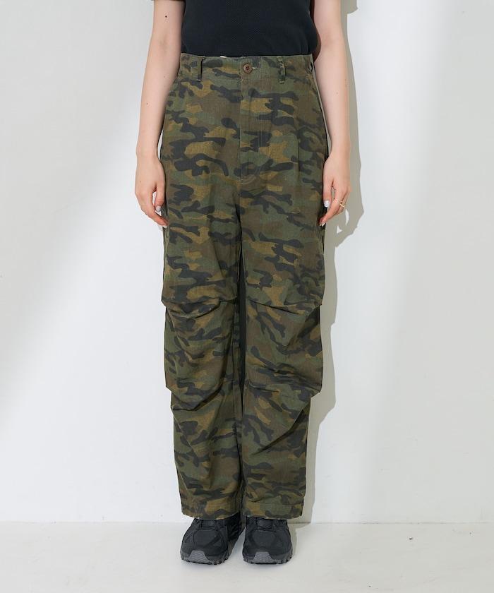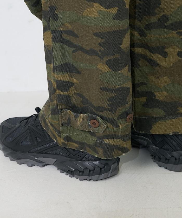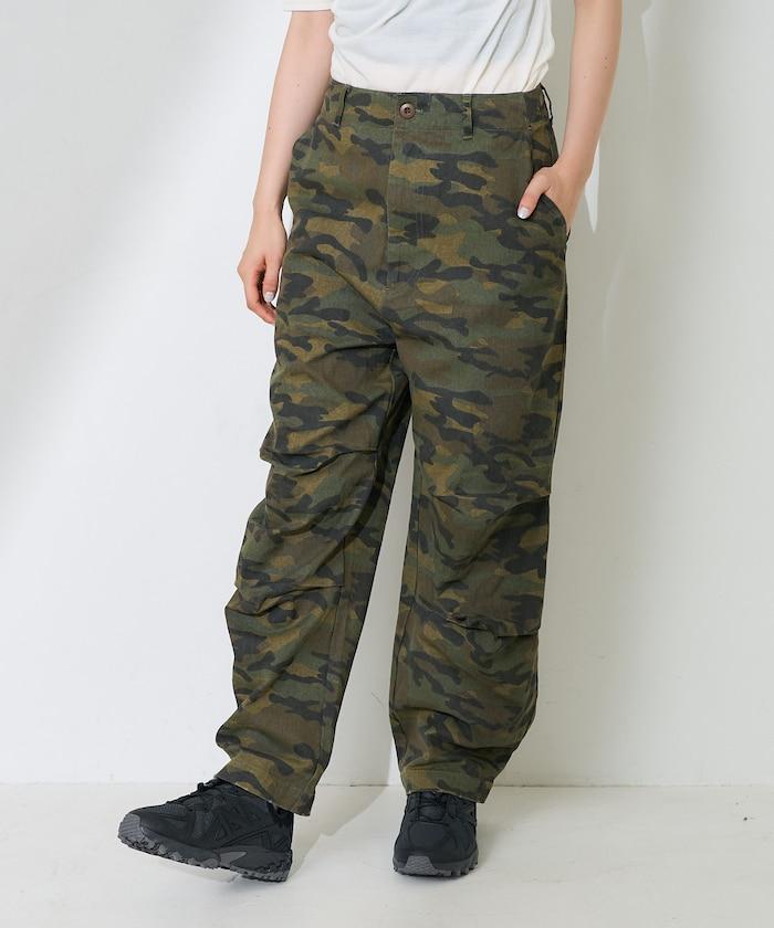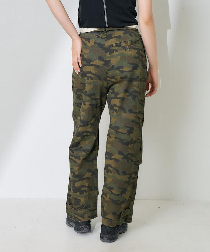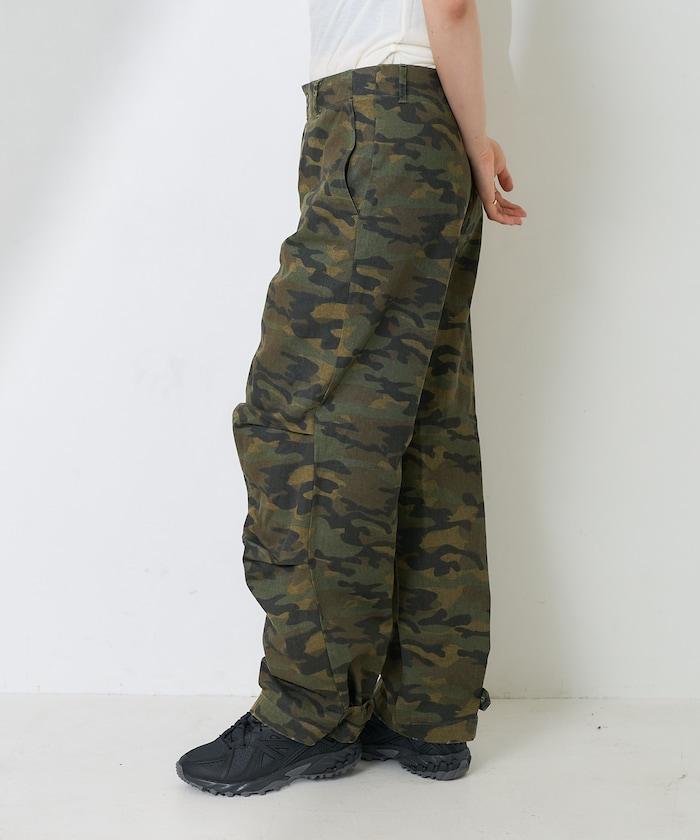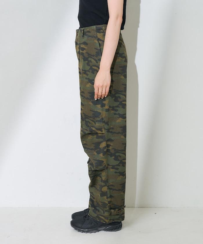 一洗迷彩圖案褲子/迷彩寬鬆褲