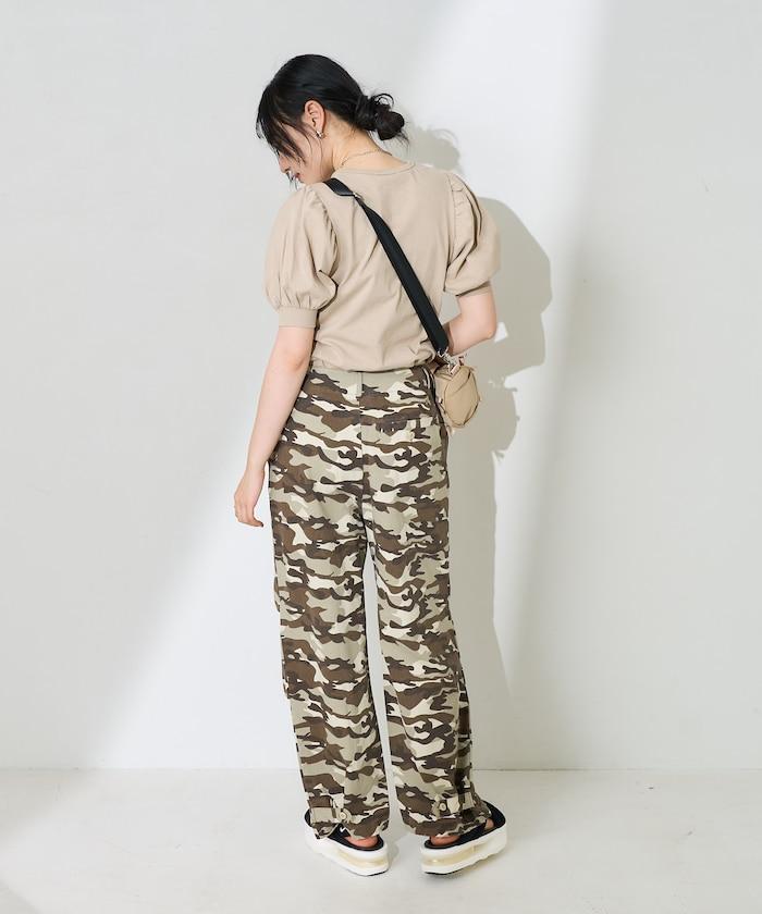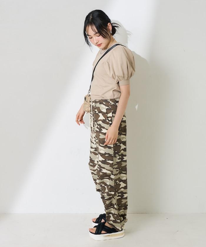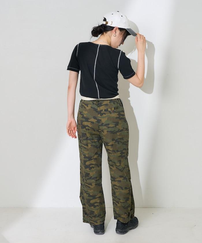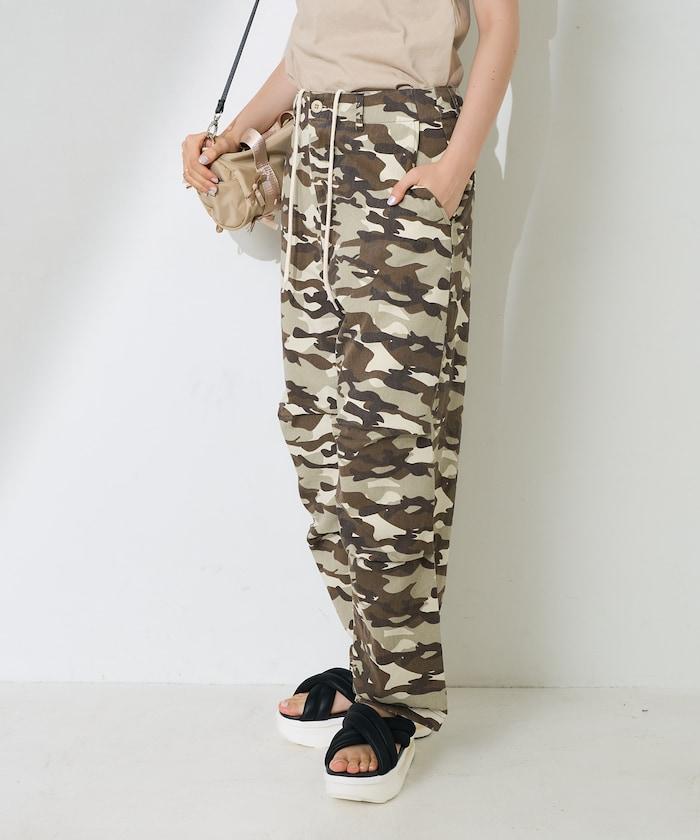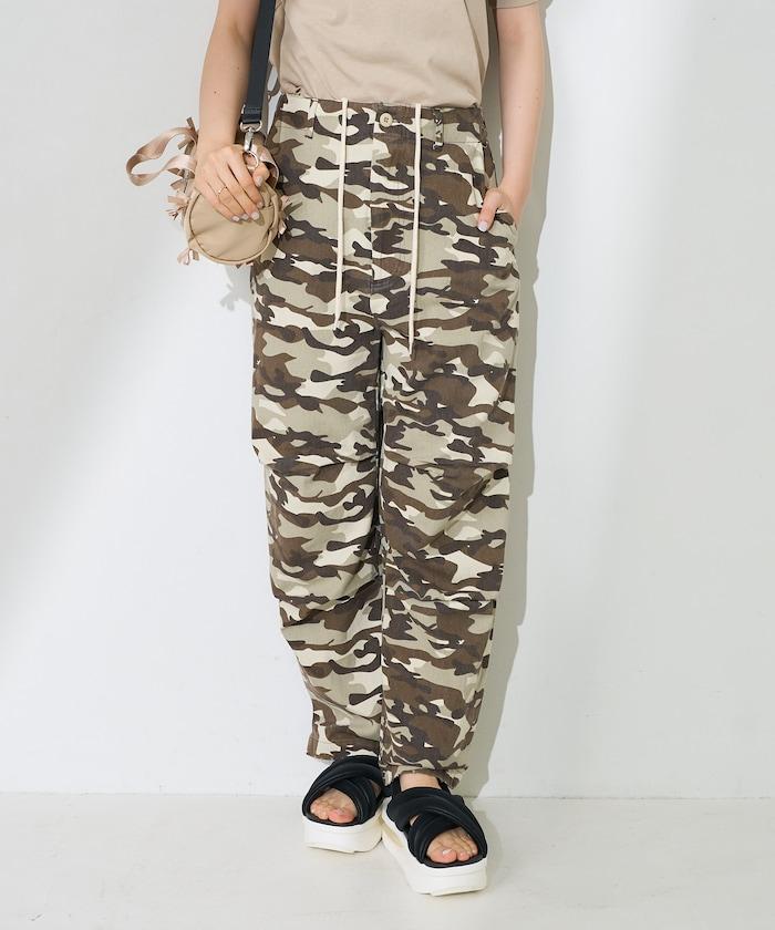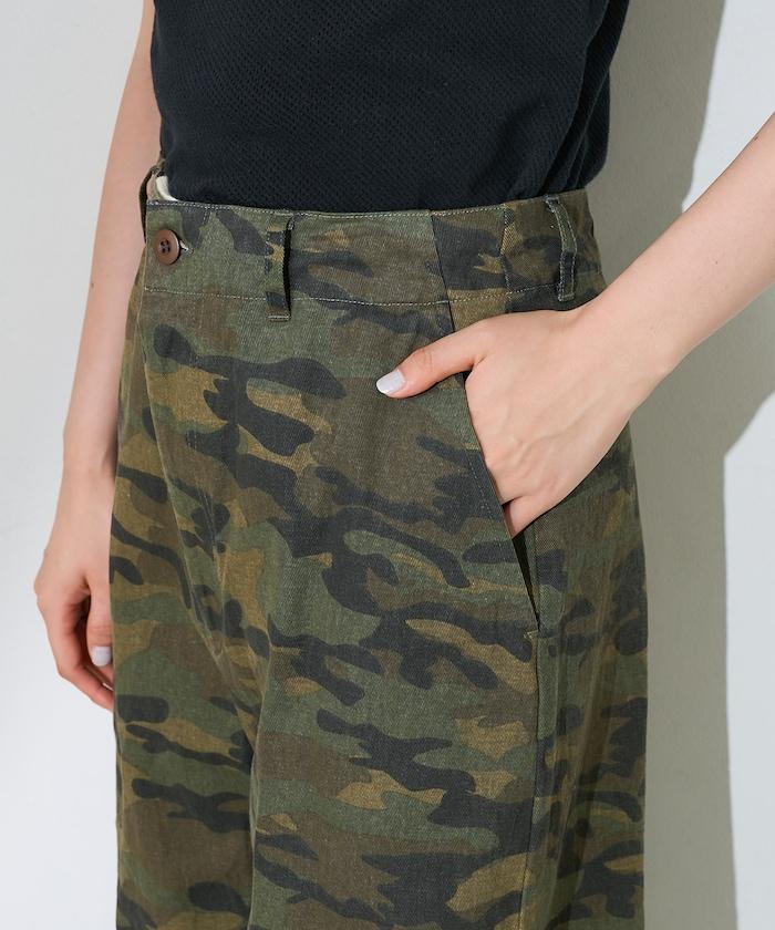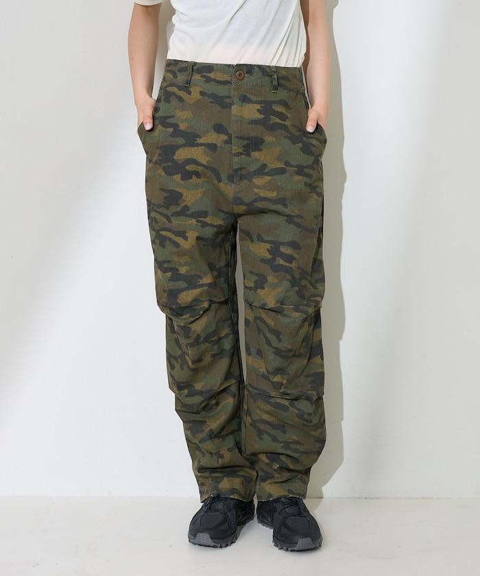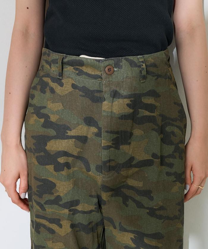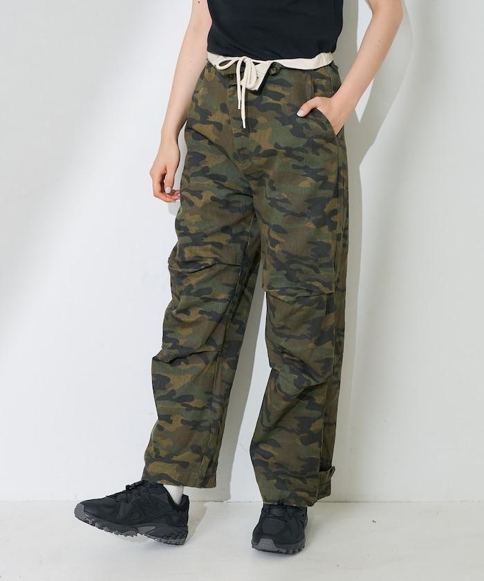 一洗迷彩圖案褲子/迷彩寬鬆褲