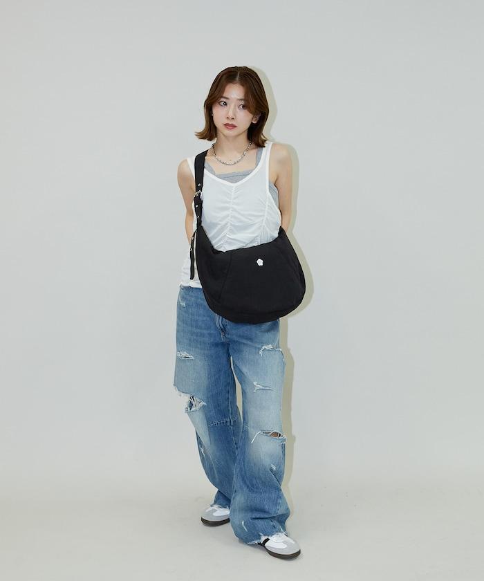 長長的肩帶從肩部到對角線均可調節長度,使其更加突出。