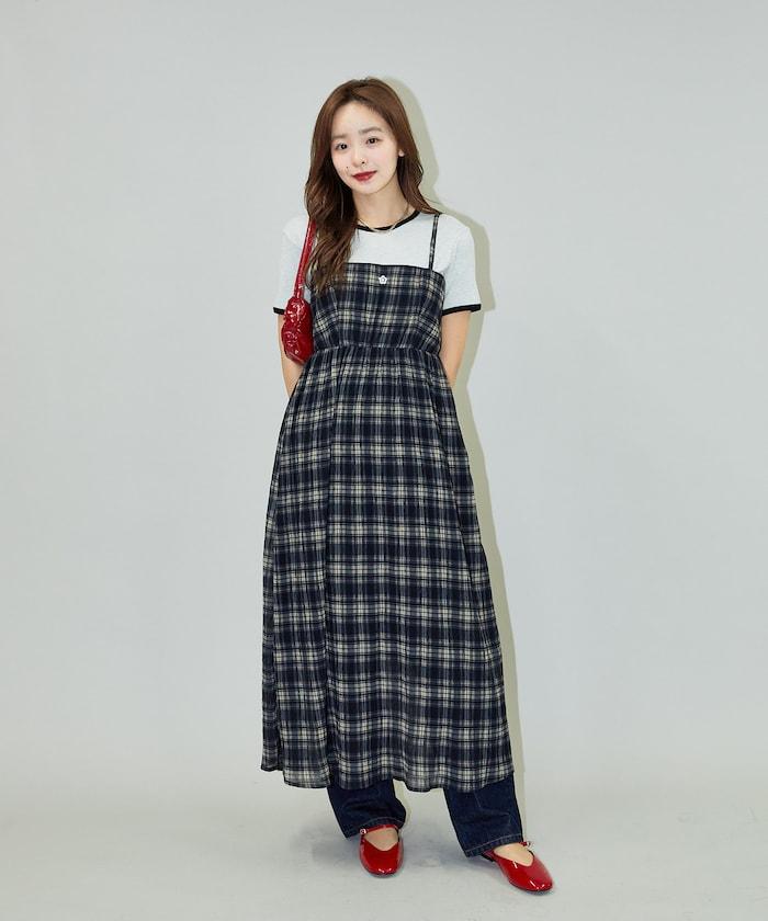 長款連身裙點綴胸前的一字領設計,單穿也有可愛之處的魅力!