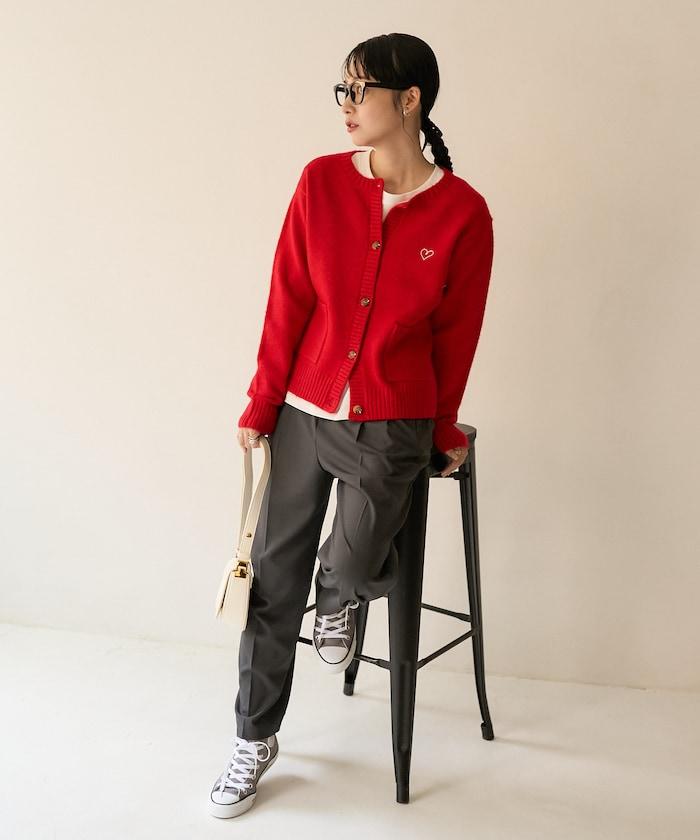 心形刺繡開襟羊毛衫,基本款設計得心應手。