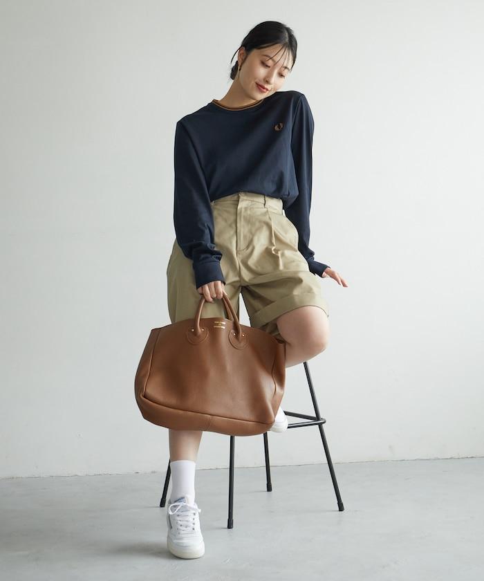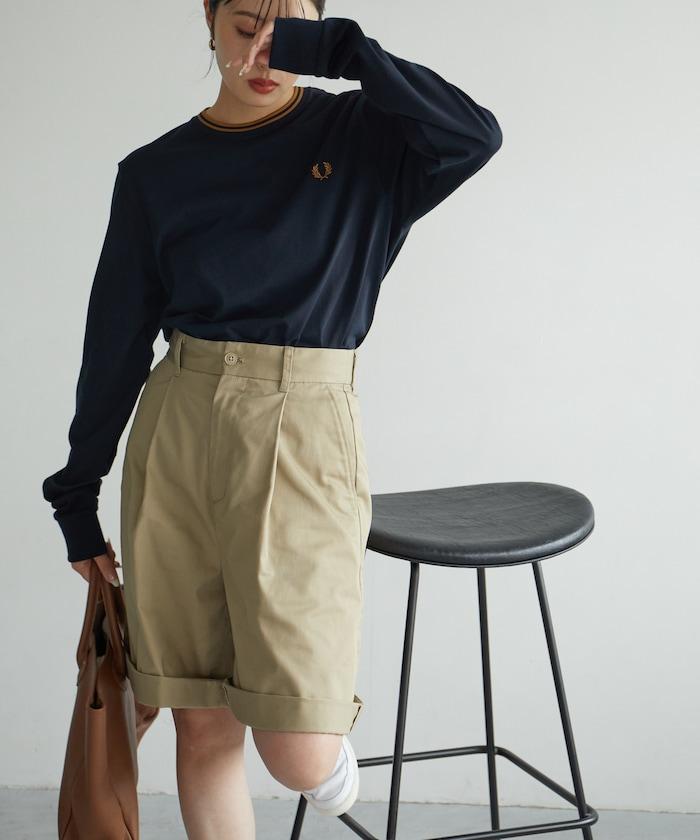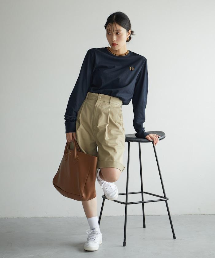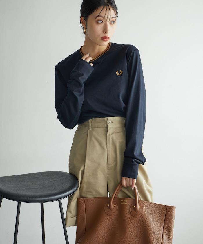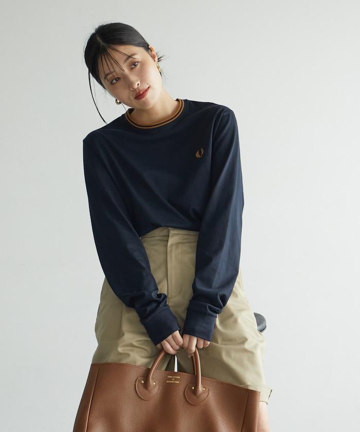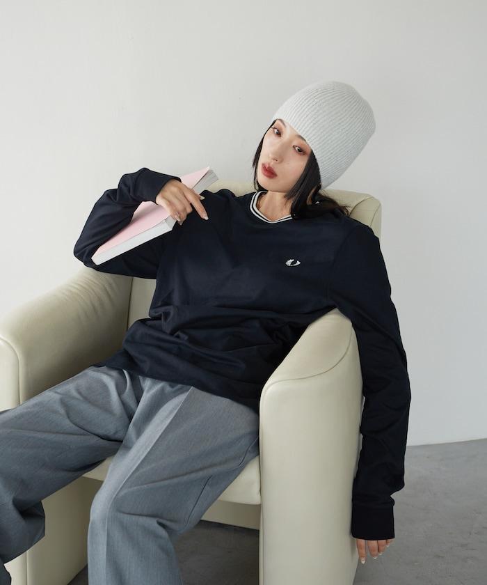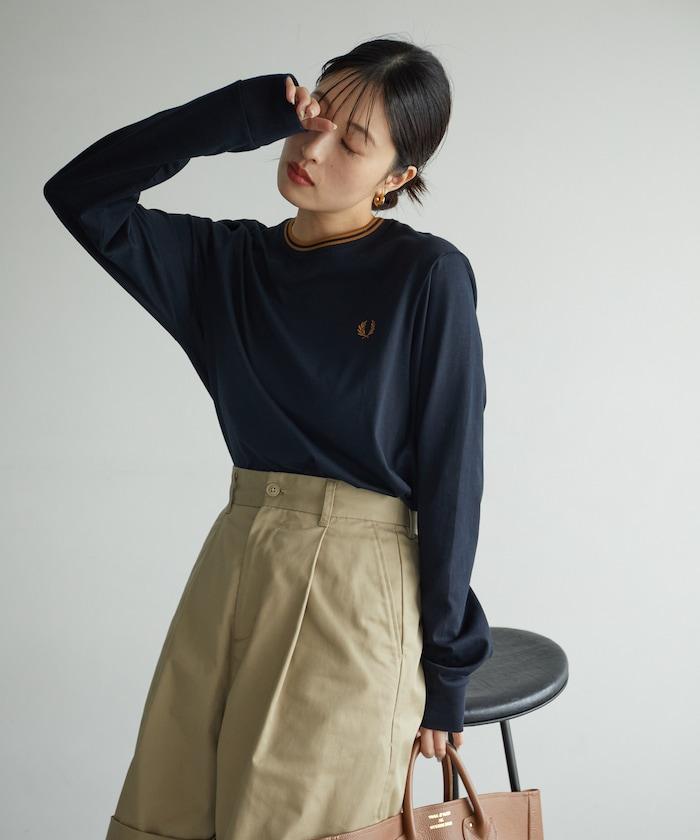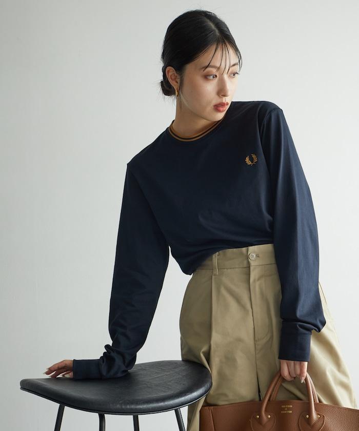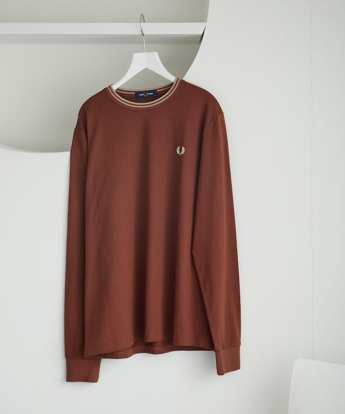 FRED PERRY 徽標長 T 簡單而奇特,可搭配印花短褲或休閒褲和針織帽,略帶韓式風情!