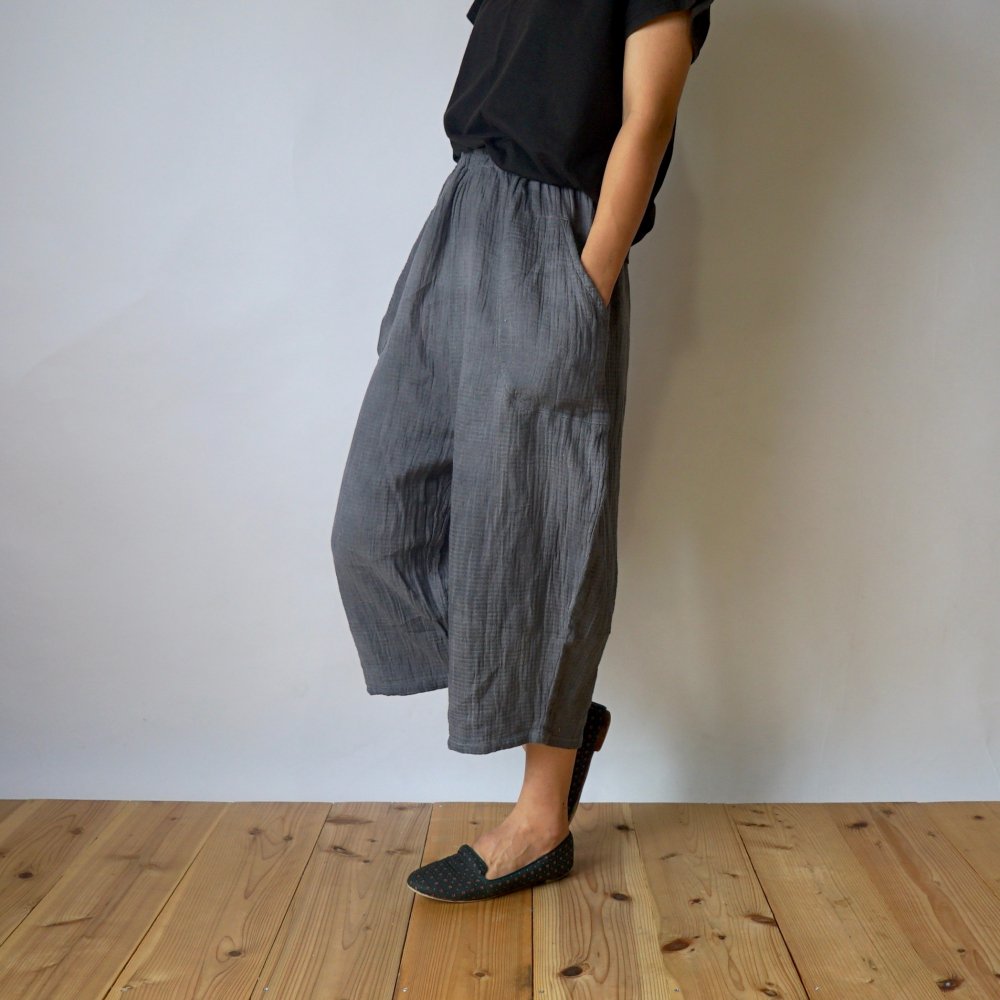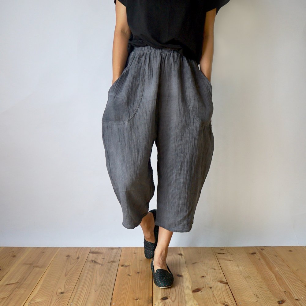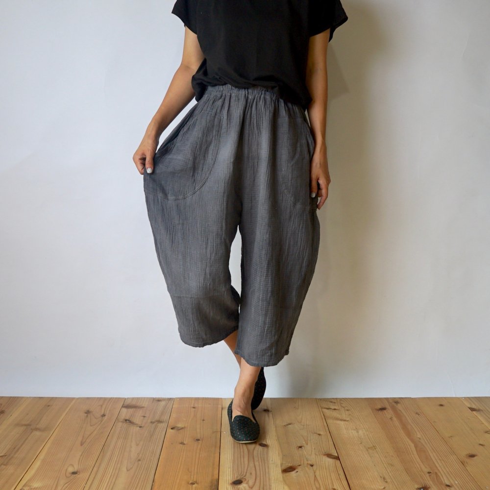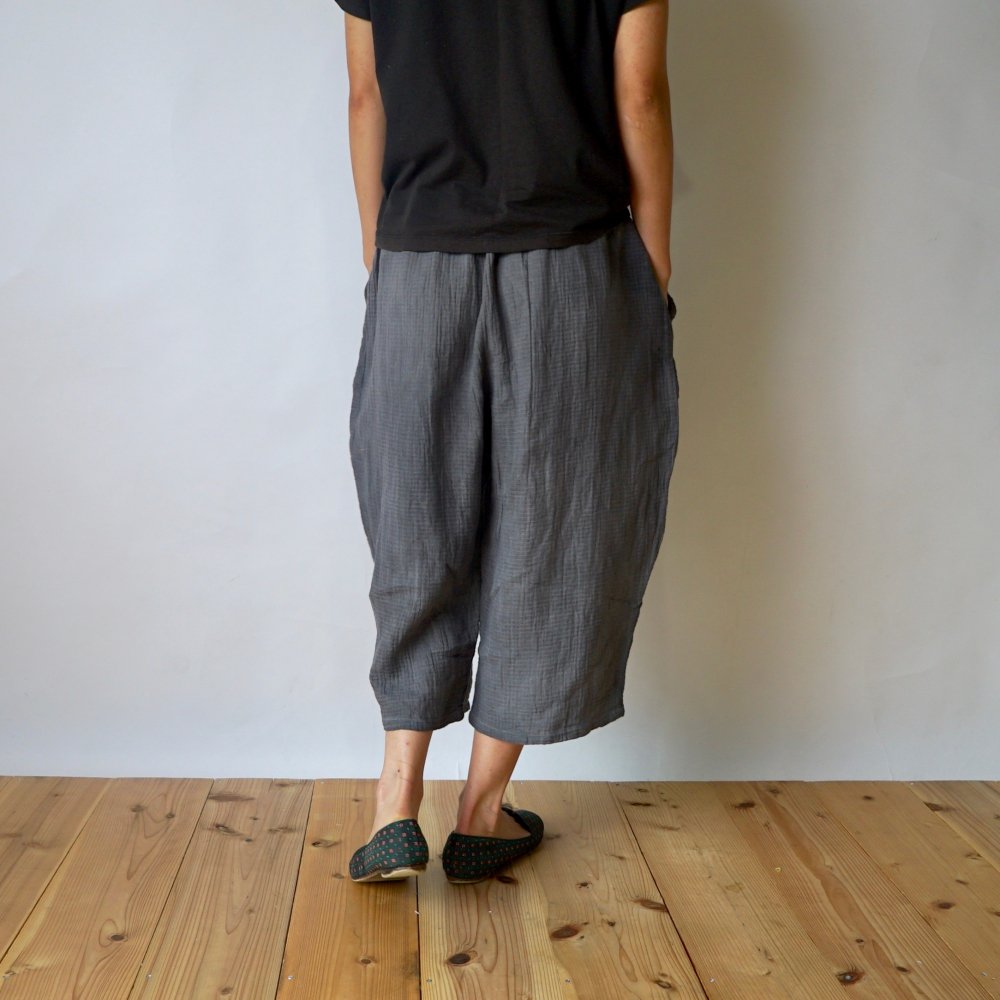 七分褲紗布氣球褲/灰色/知多棉 格子紋紗布