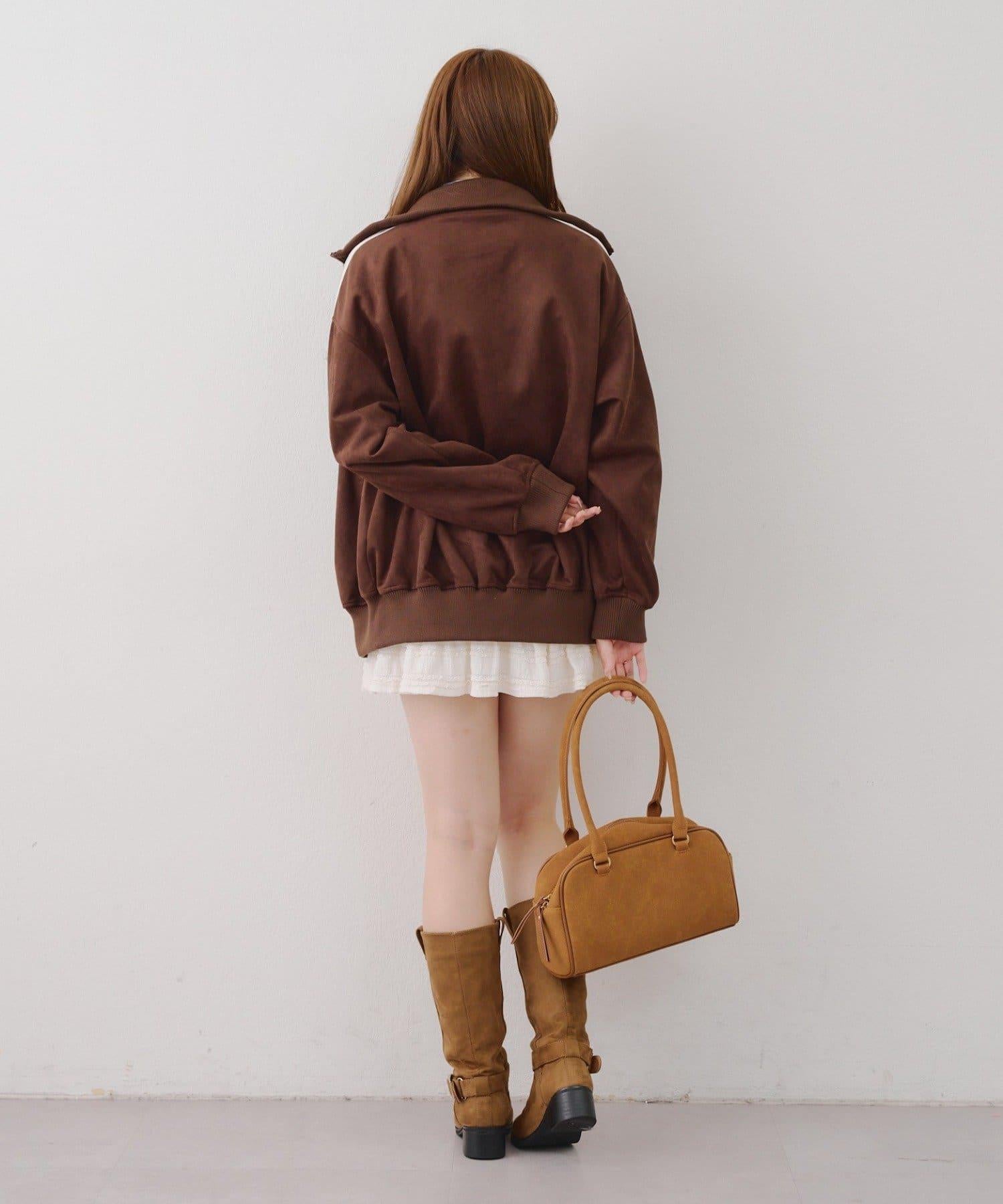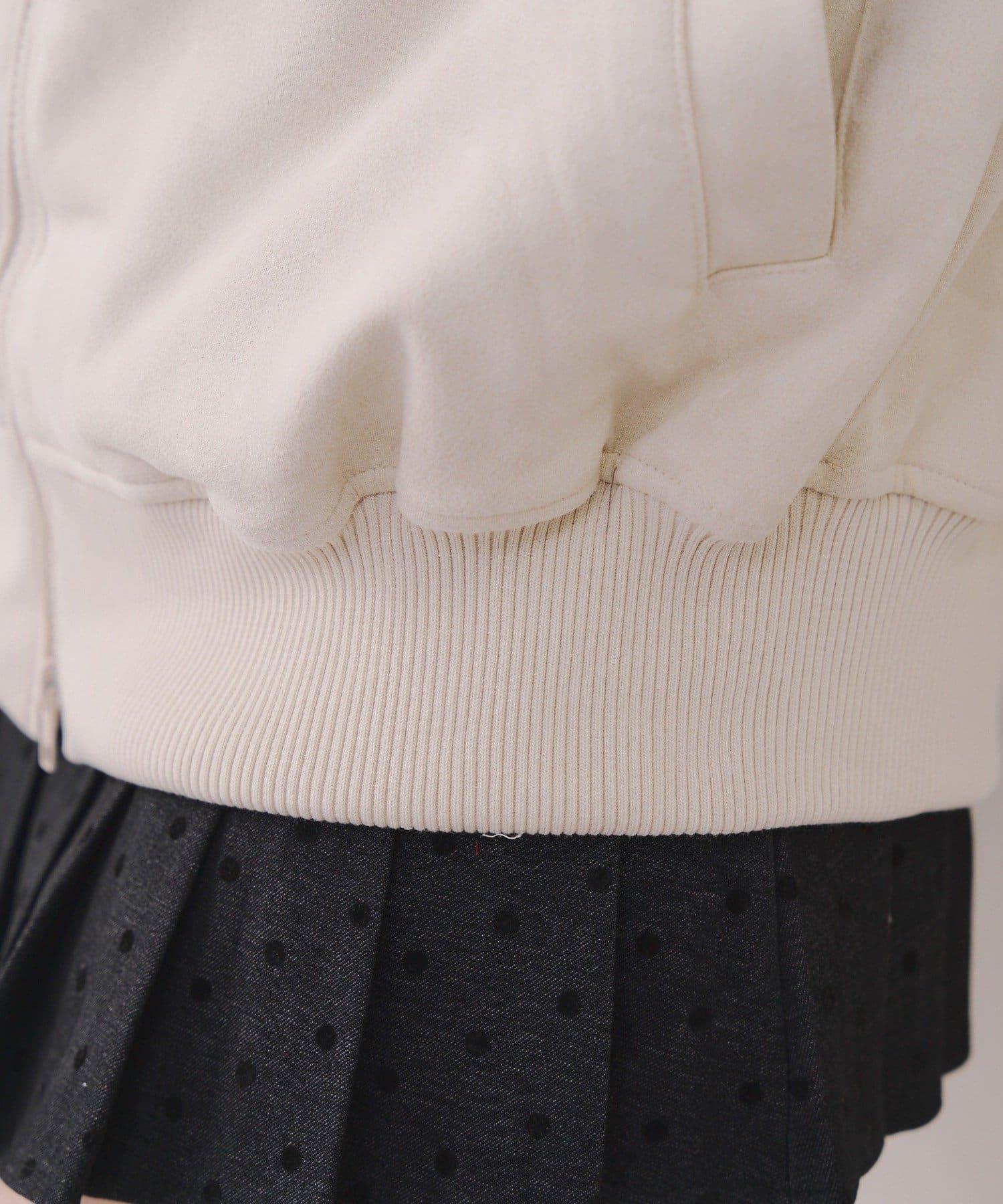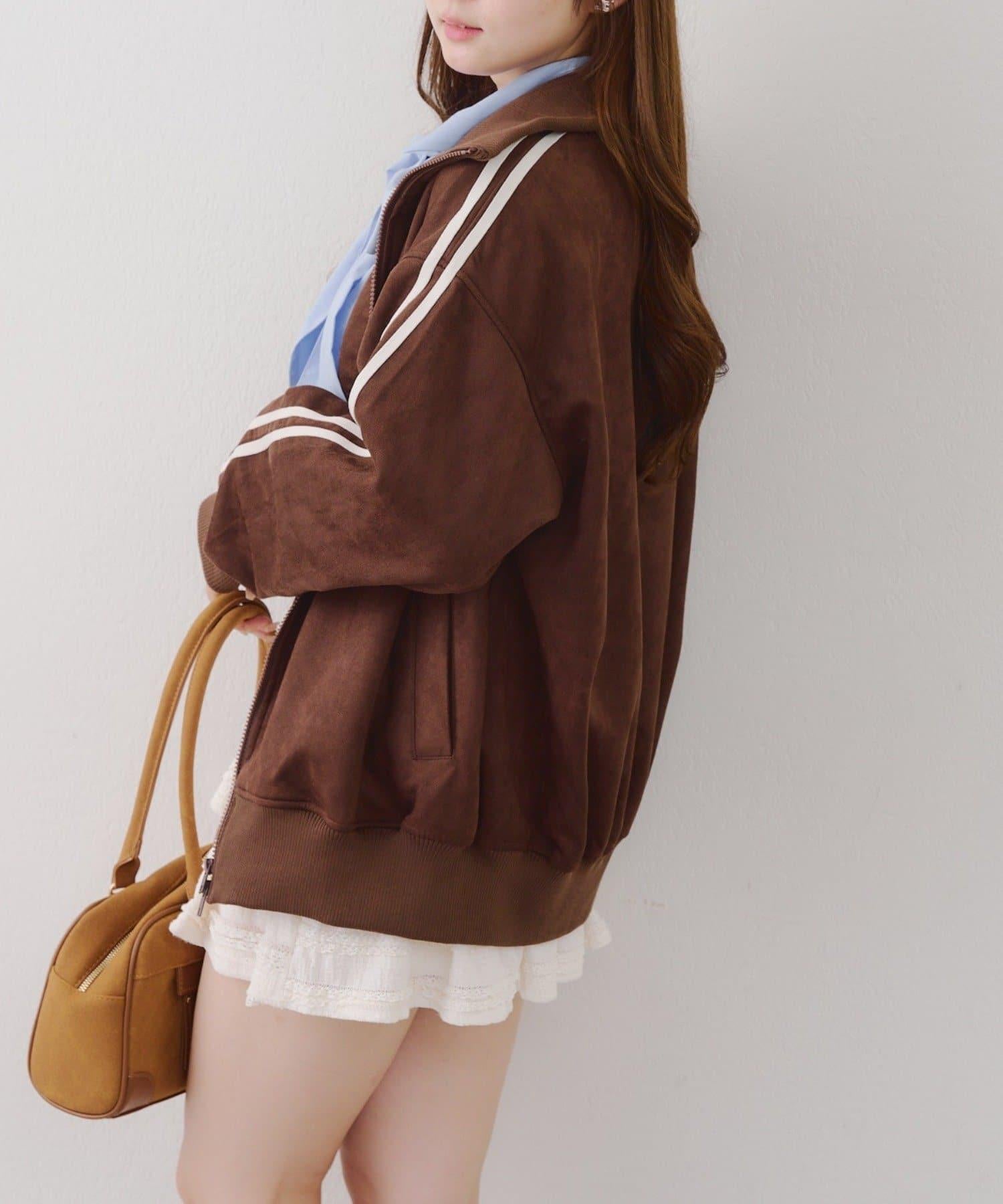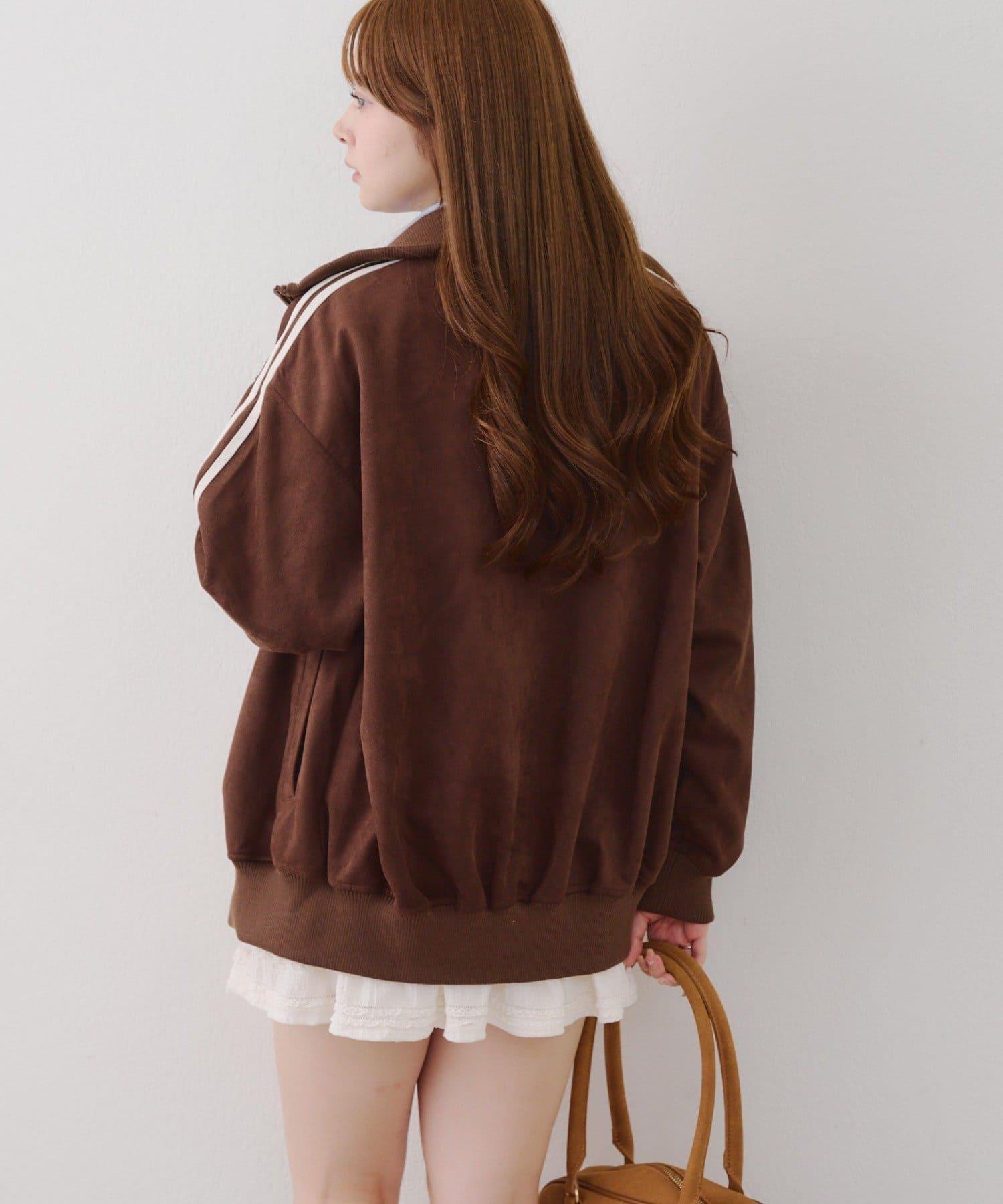 這款夾克採用光滑的麂皮絨披風面料製成。