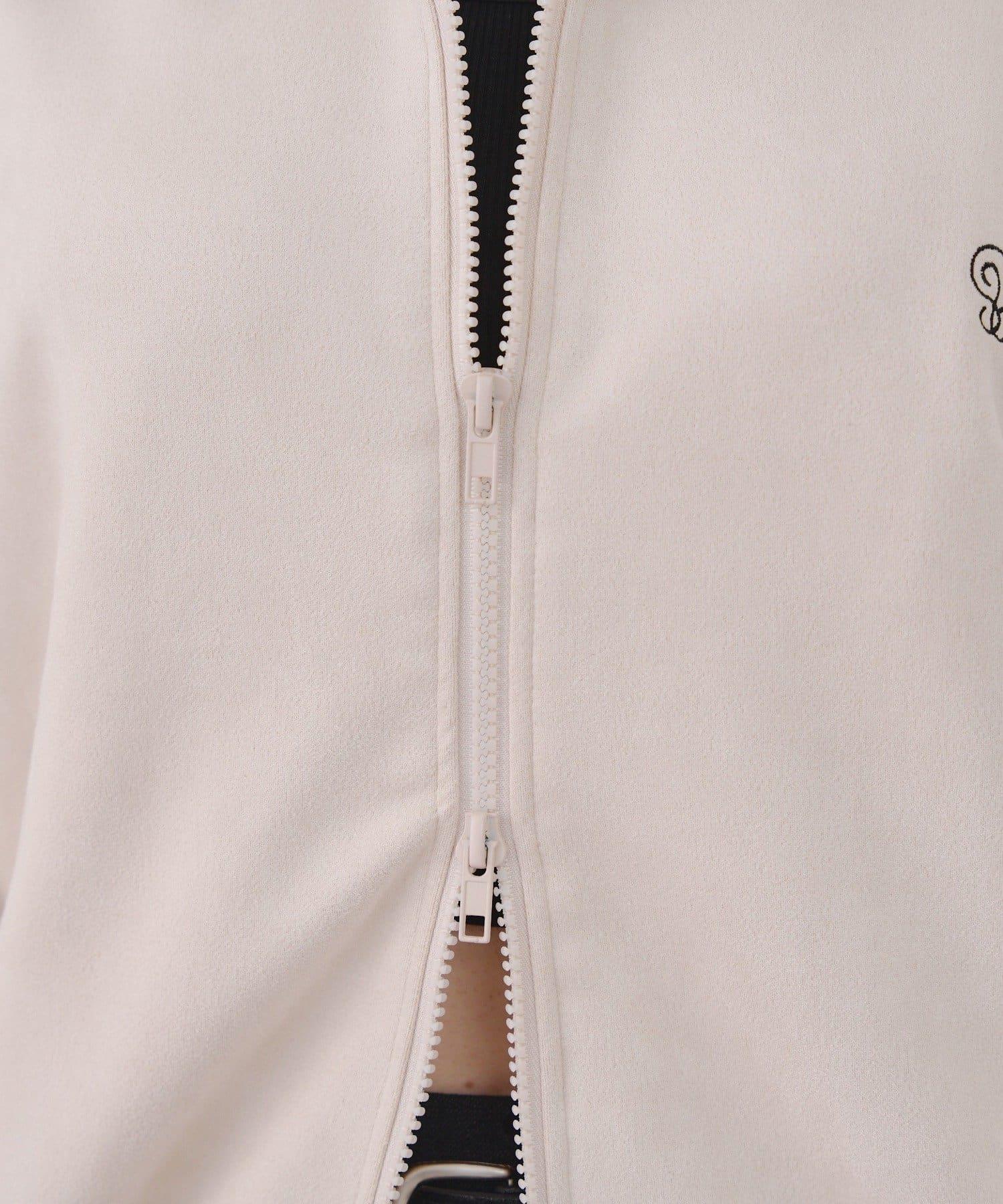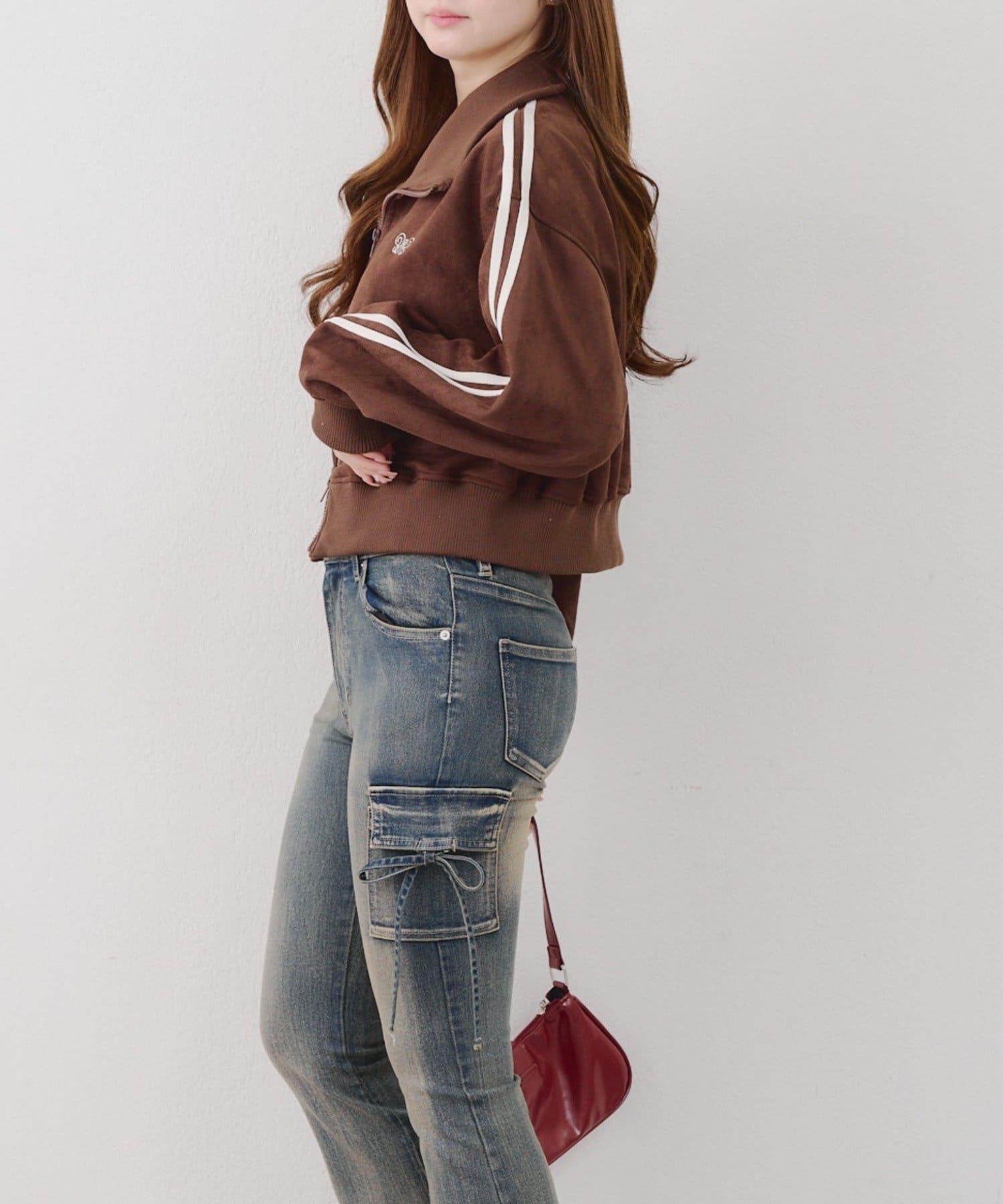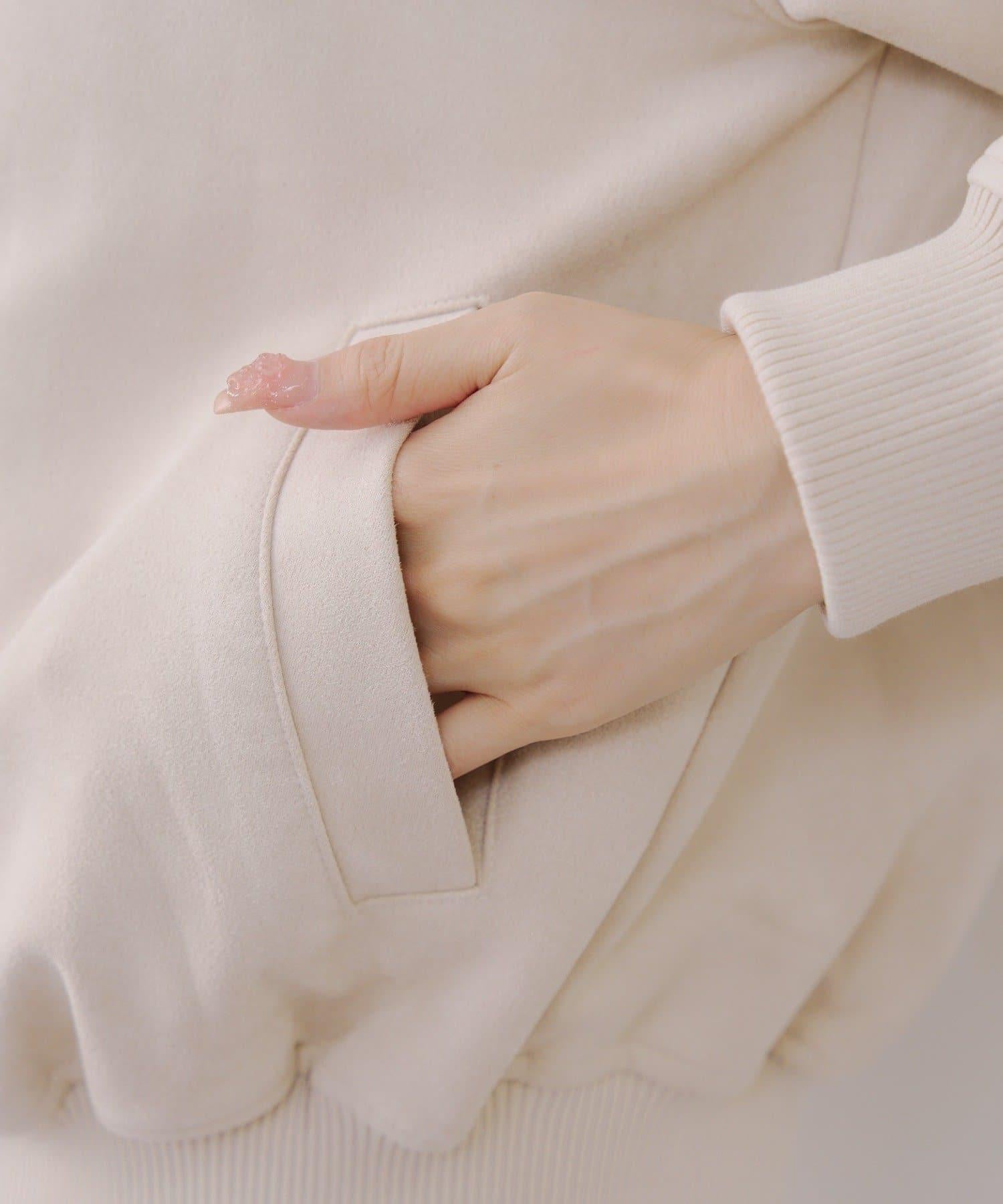 這款夾克採用光滑的麂皮絨披風面料製成。