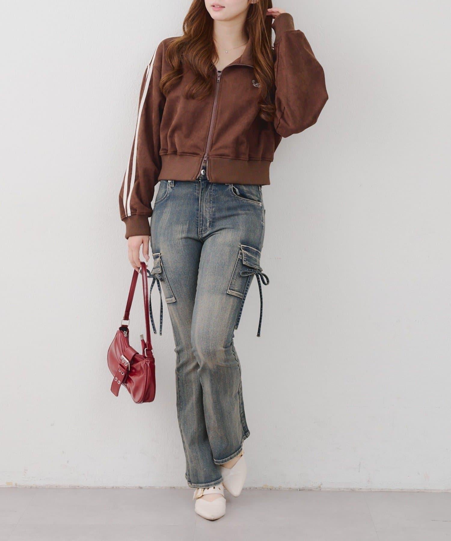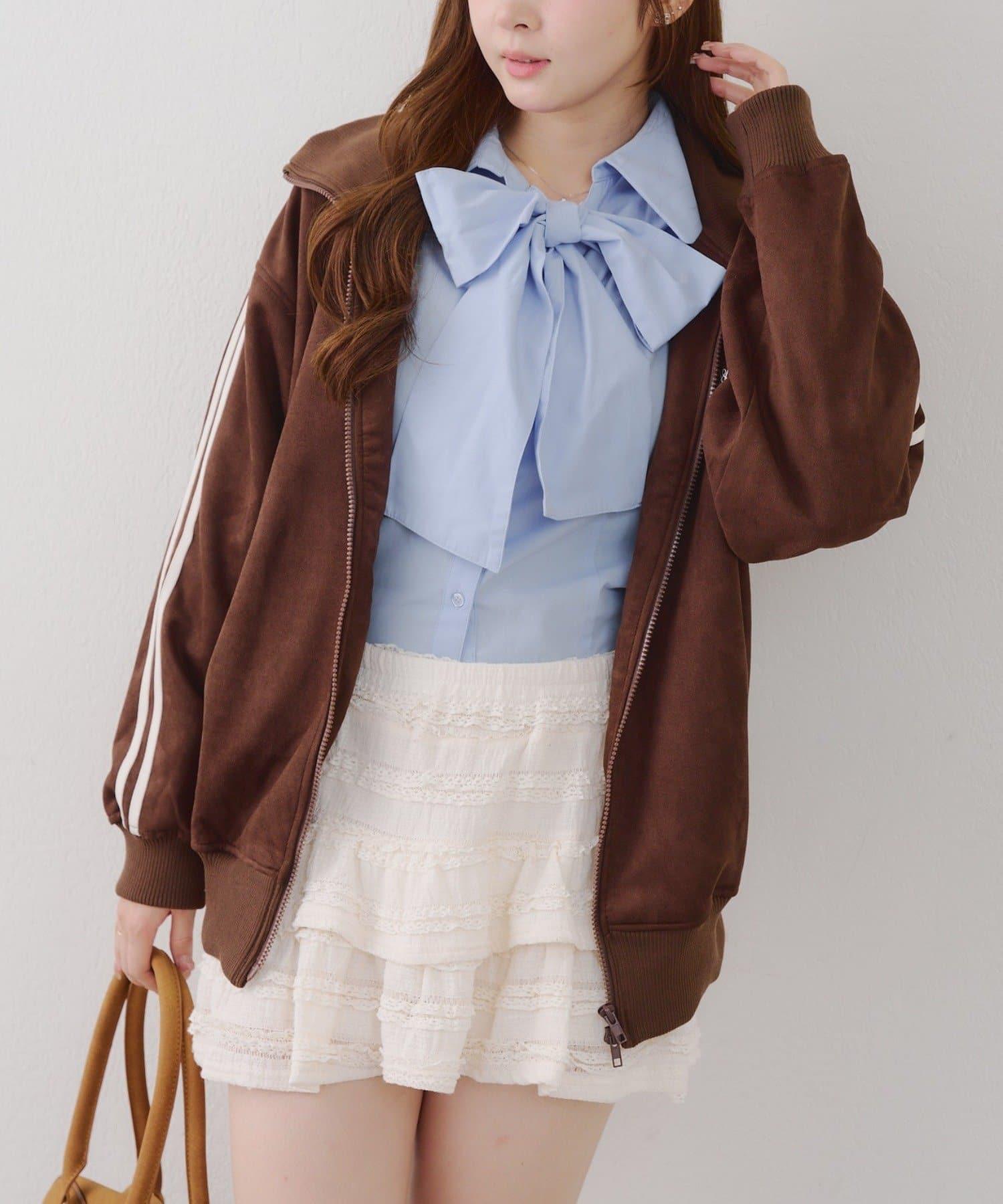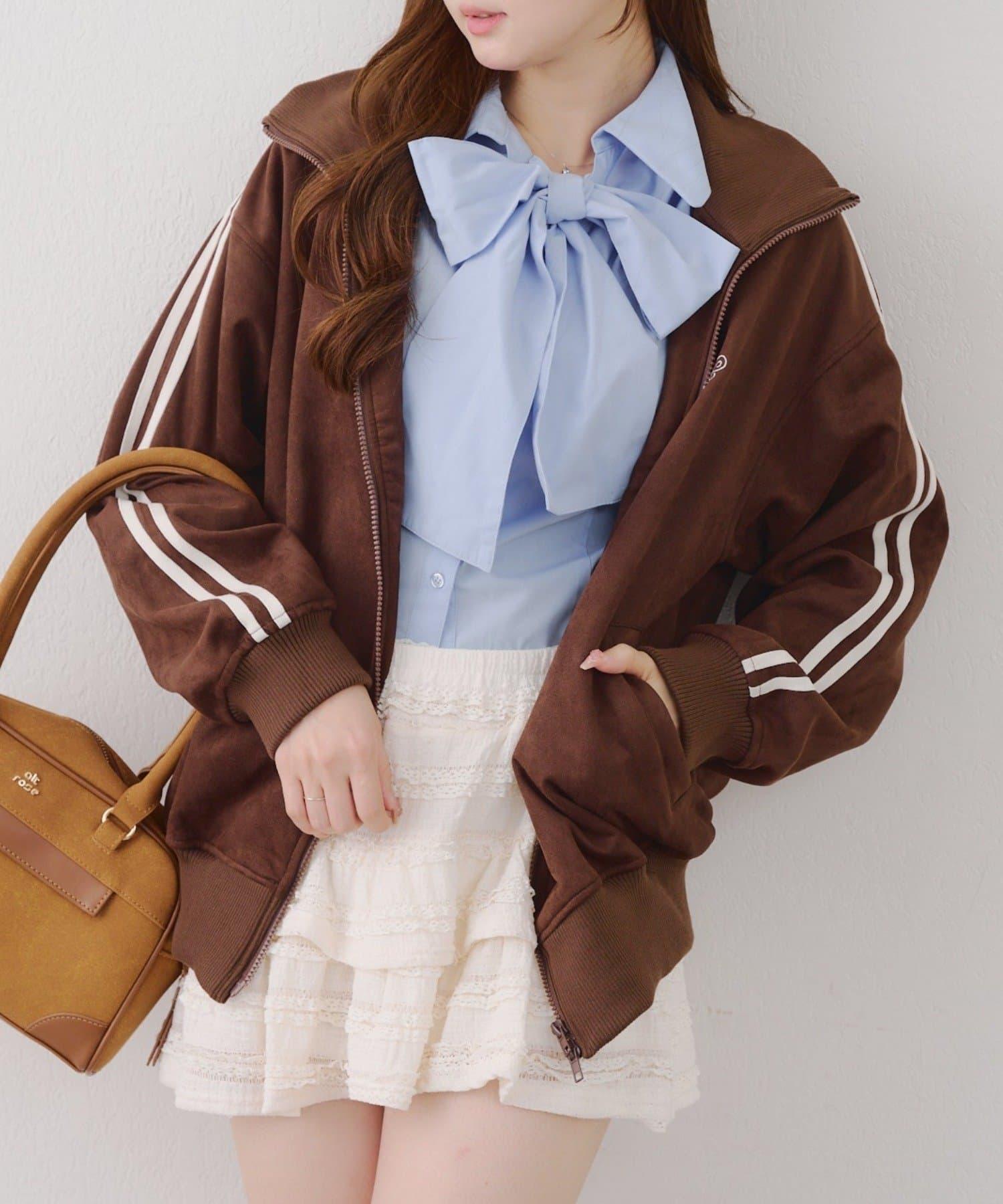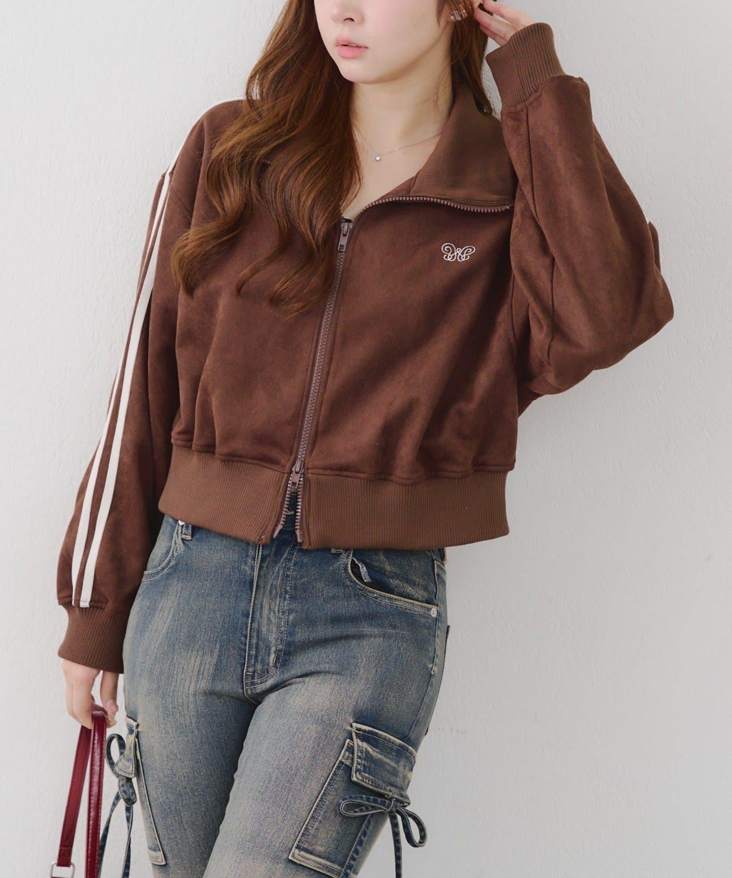 這款夾克採用光滑的麂皮絨披風面料製成。