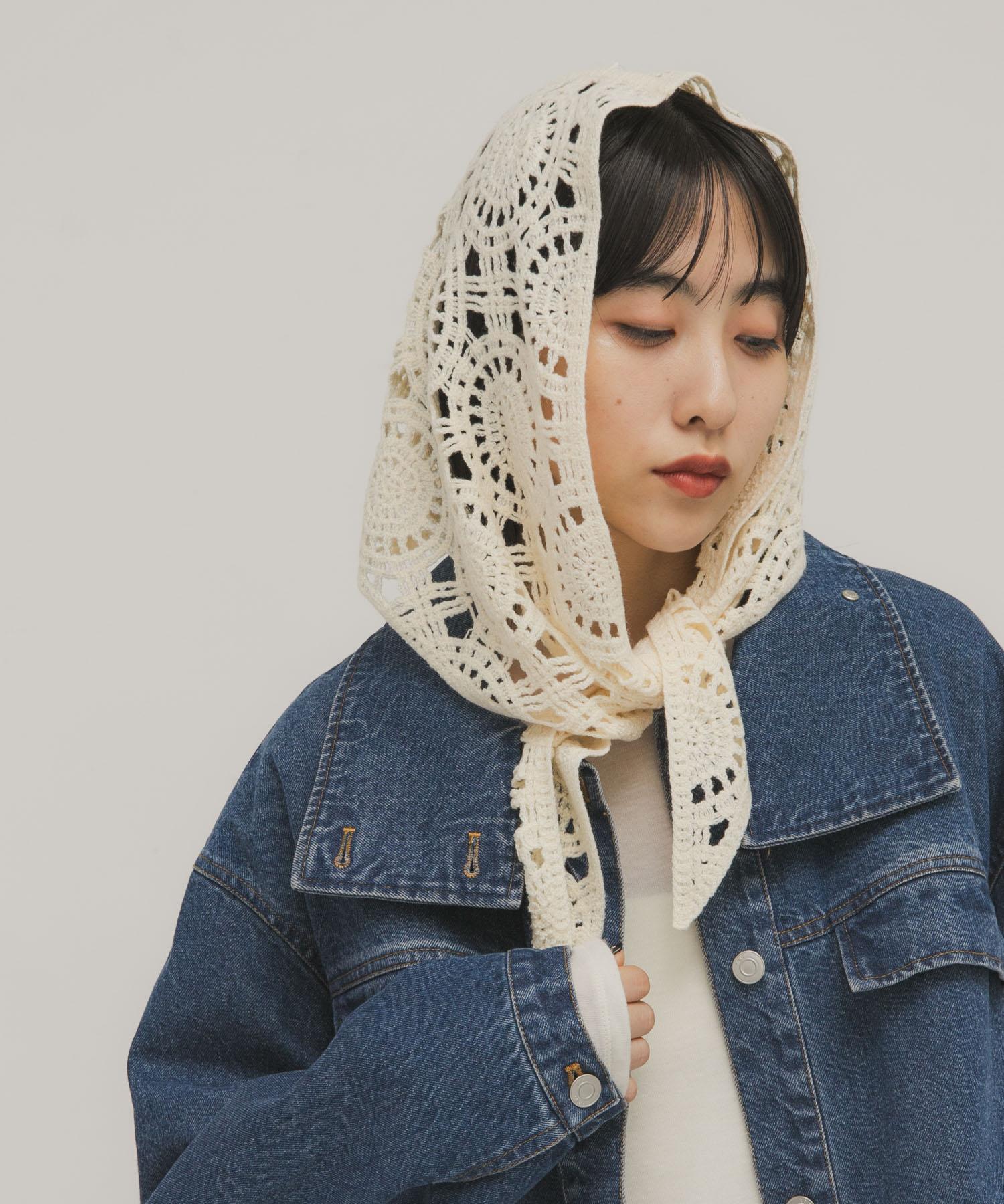 三角形鉤針編織圍巾現已上市。它既可作為頭飾,也可纏繞在腰間或作為半身裙佩戴。