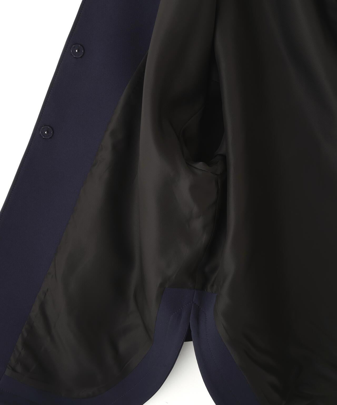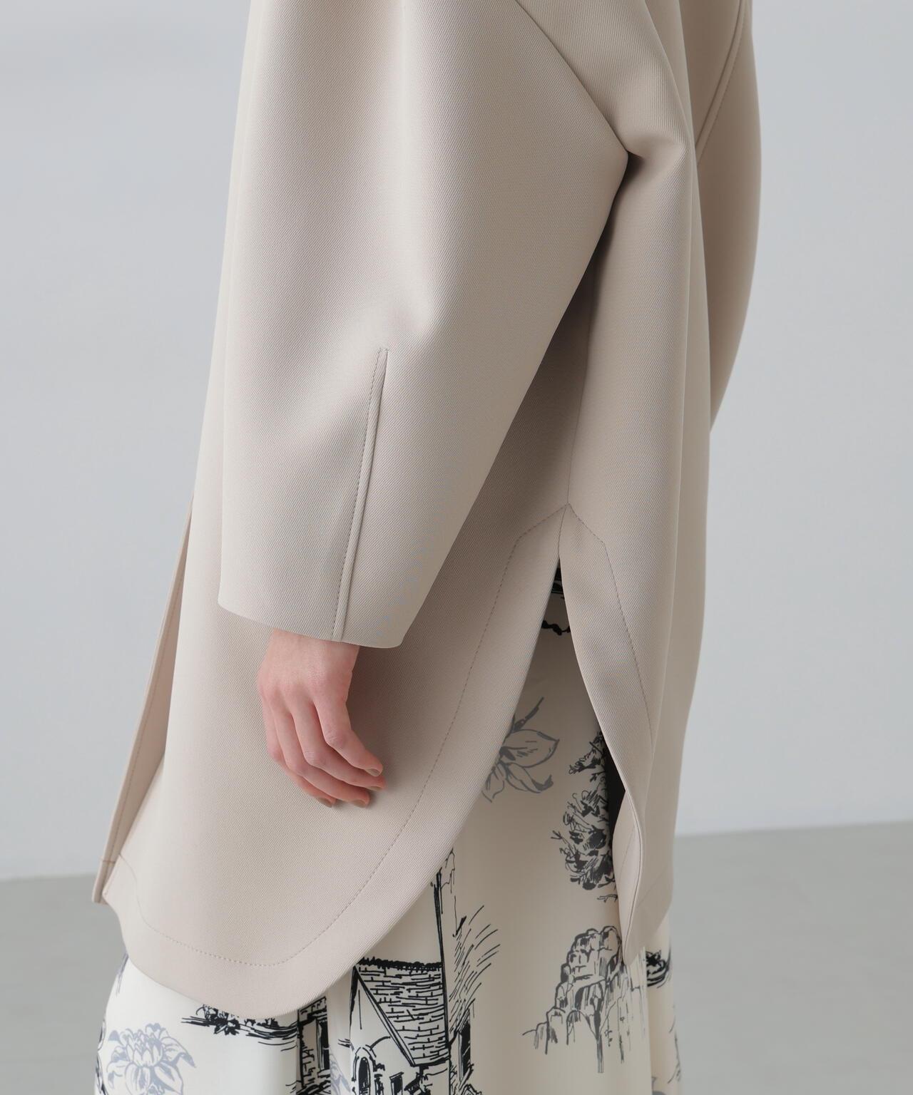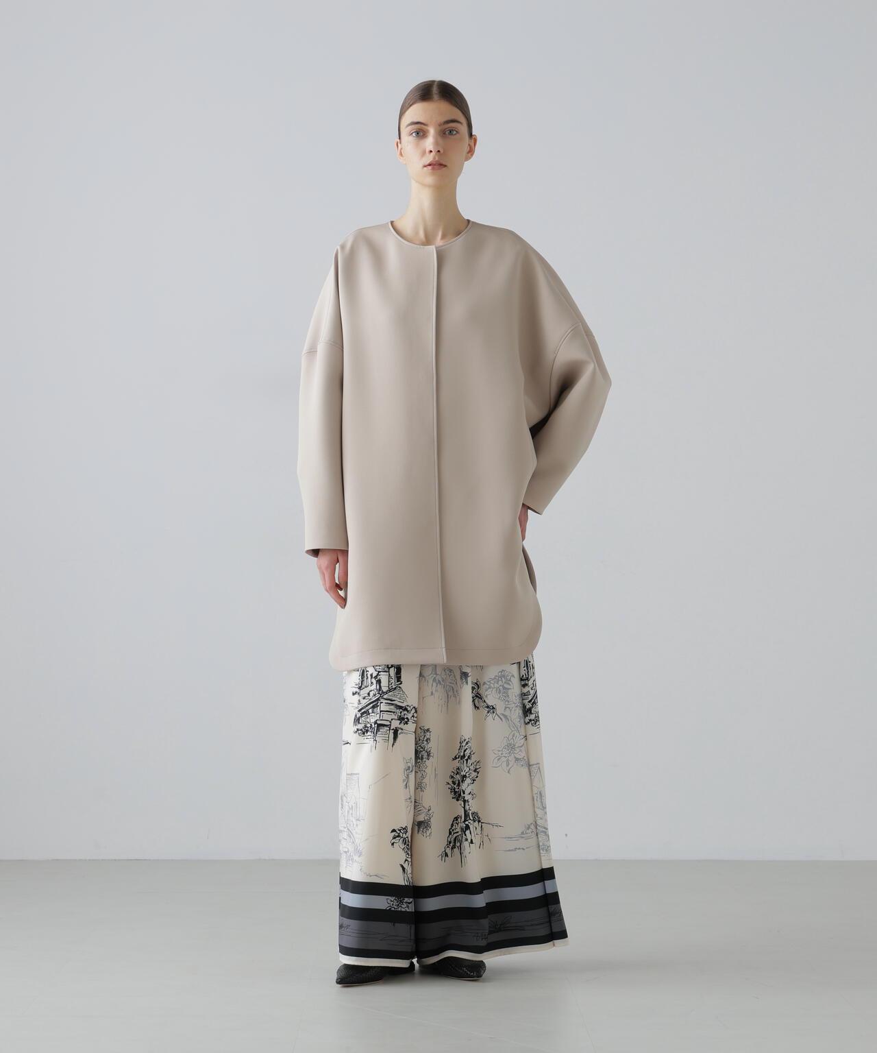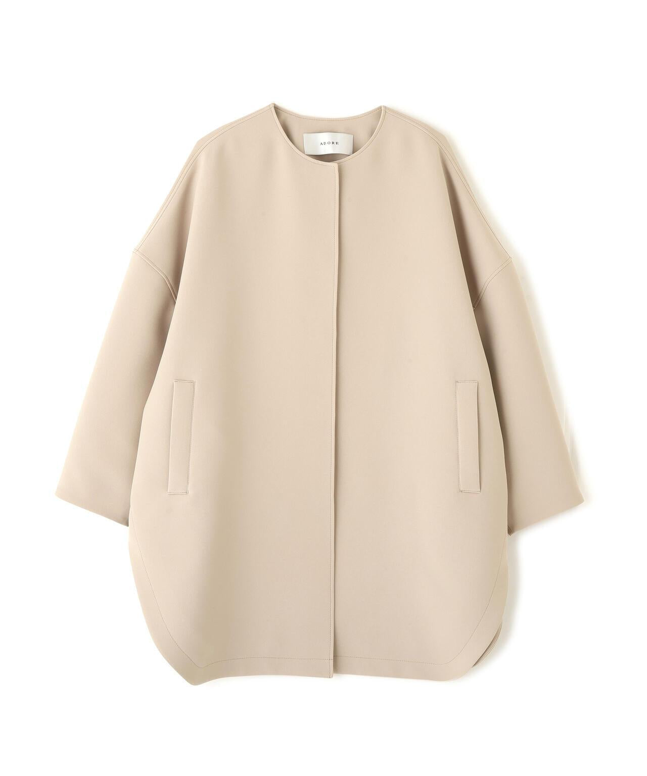 空氣雙層織物無領大衣,具有貼身感這款無領大衣採用 Spondech 輕質面料製成。這款大衣的輪廓給人以寬敞、圓潤的感覺。採用膨體滌綸加工紗線製成,具有獨特的回彈感,通過spondex和高度的三重結構表現出來。