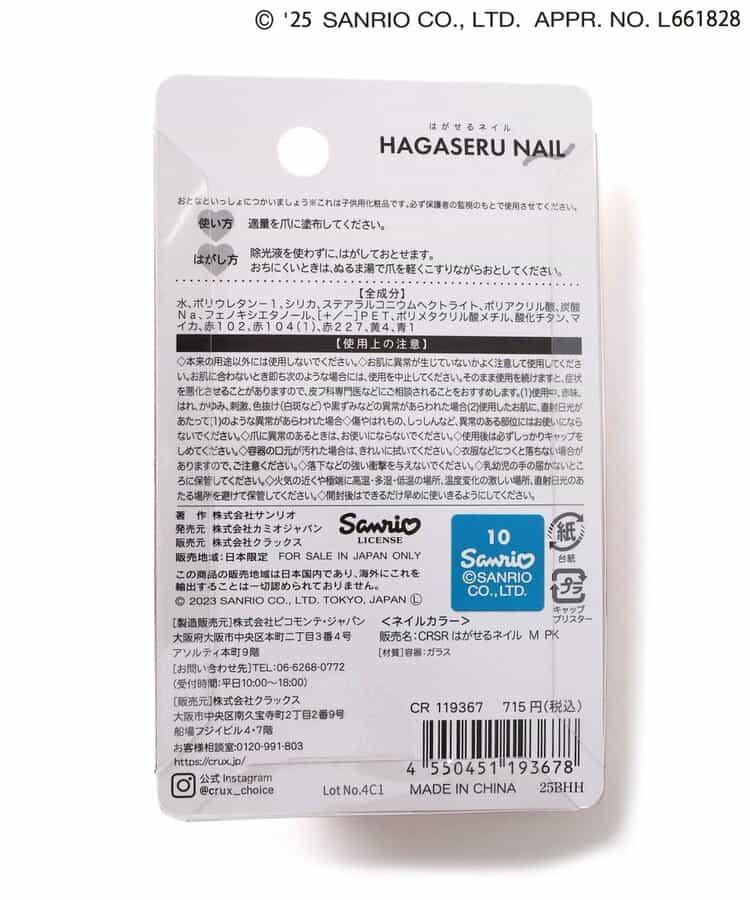【《三麗歐》】帶吉祥物可撕式指甲油