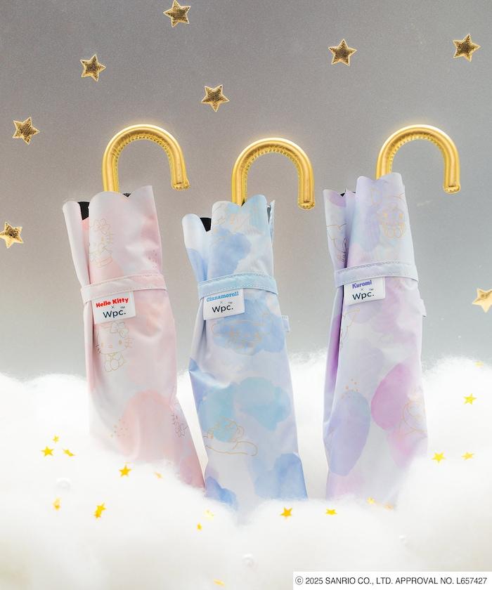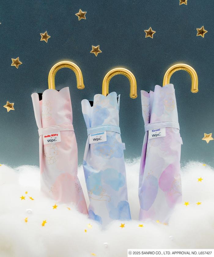 Hello Kitty、Cinnamoroll 和 Kuromi 以可愛的水彩畫圖案出現在這把摺疊陽傘上!