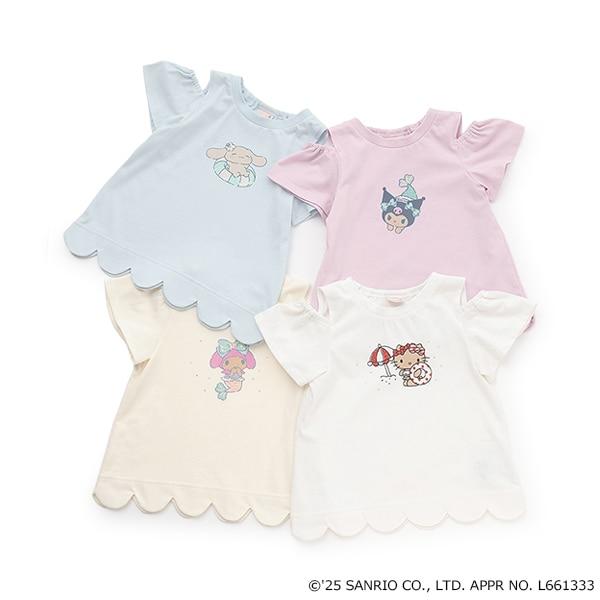 這款 T 恤印有三麗鷗卡通人物享受各自假期的可愛圖案。